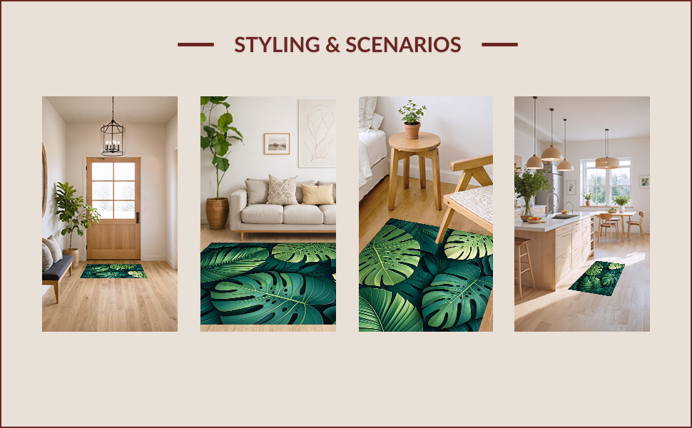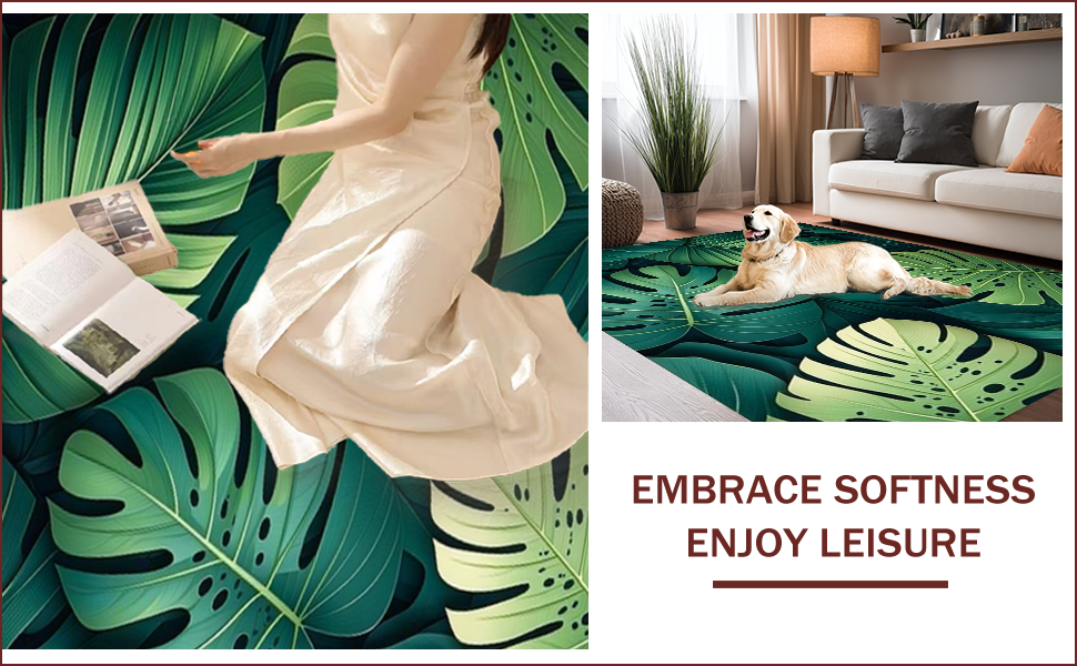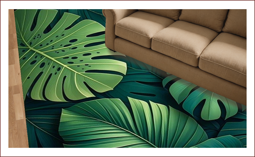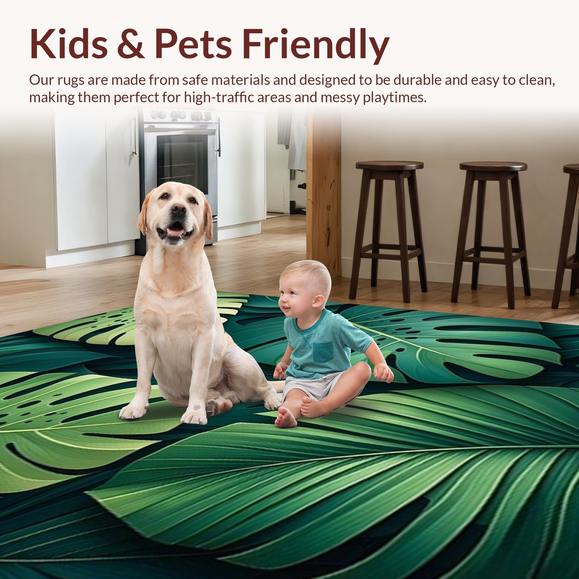 Ultra Soft Area Rug, Non Slip, Stain Resistant, Washable Area Rugs for Living Room, Bedroom, Quirky Green Plant Motif Design(Green) Overview:
