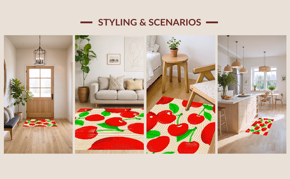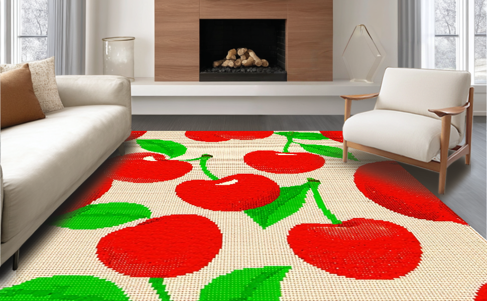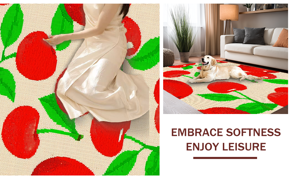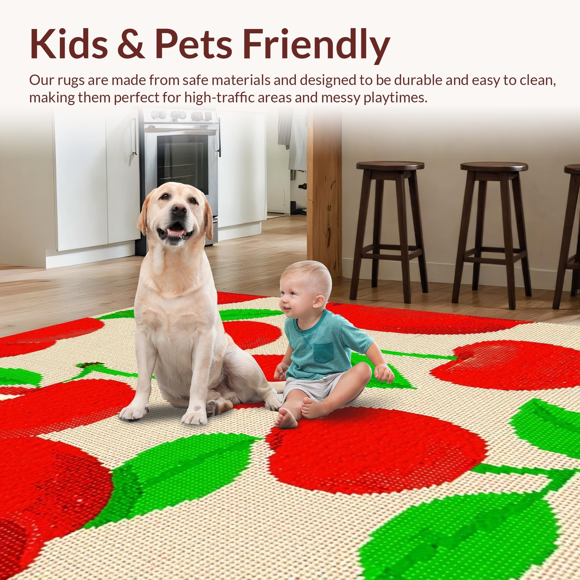 Ultra Soft Area Rug, Non Slip, Stain Resistant, Washable Area Rugs for Living Room, Bedroom, Quirky Retro Pattern Design(Red) Overview: