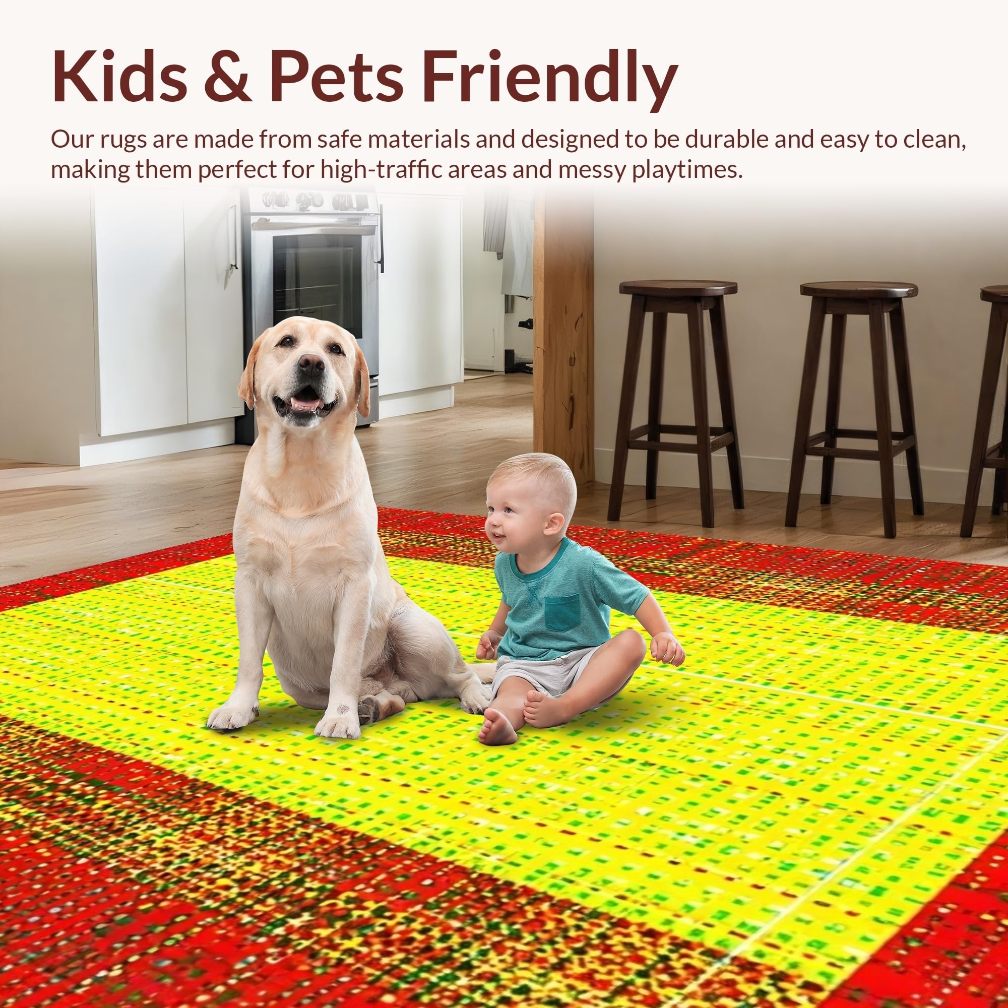 Ultra Soft Area Rug, Non Slip, Stain Resistant, Washable Area Rugs for Living Room, Bedroom, Radiant Artistic Handprint Theme(Red) Overview: