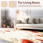 Ultra Soft Area Rug, Non Slip, Stain Resistant, Washable Area Rugs for Living Room, Bedroom, Radiant Bloom Area Beige & Crimson Abstract Floral Design(Red) Overview: