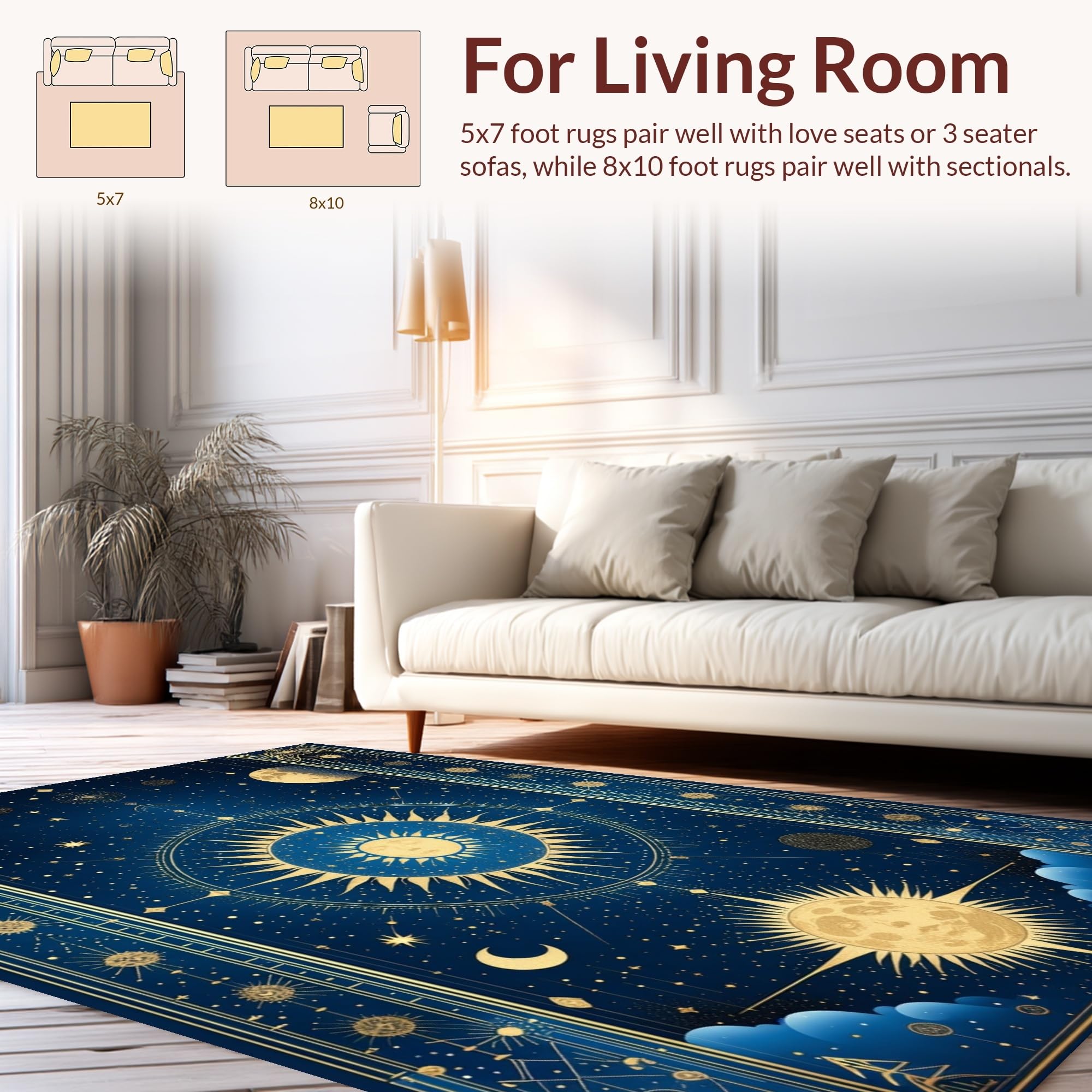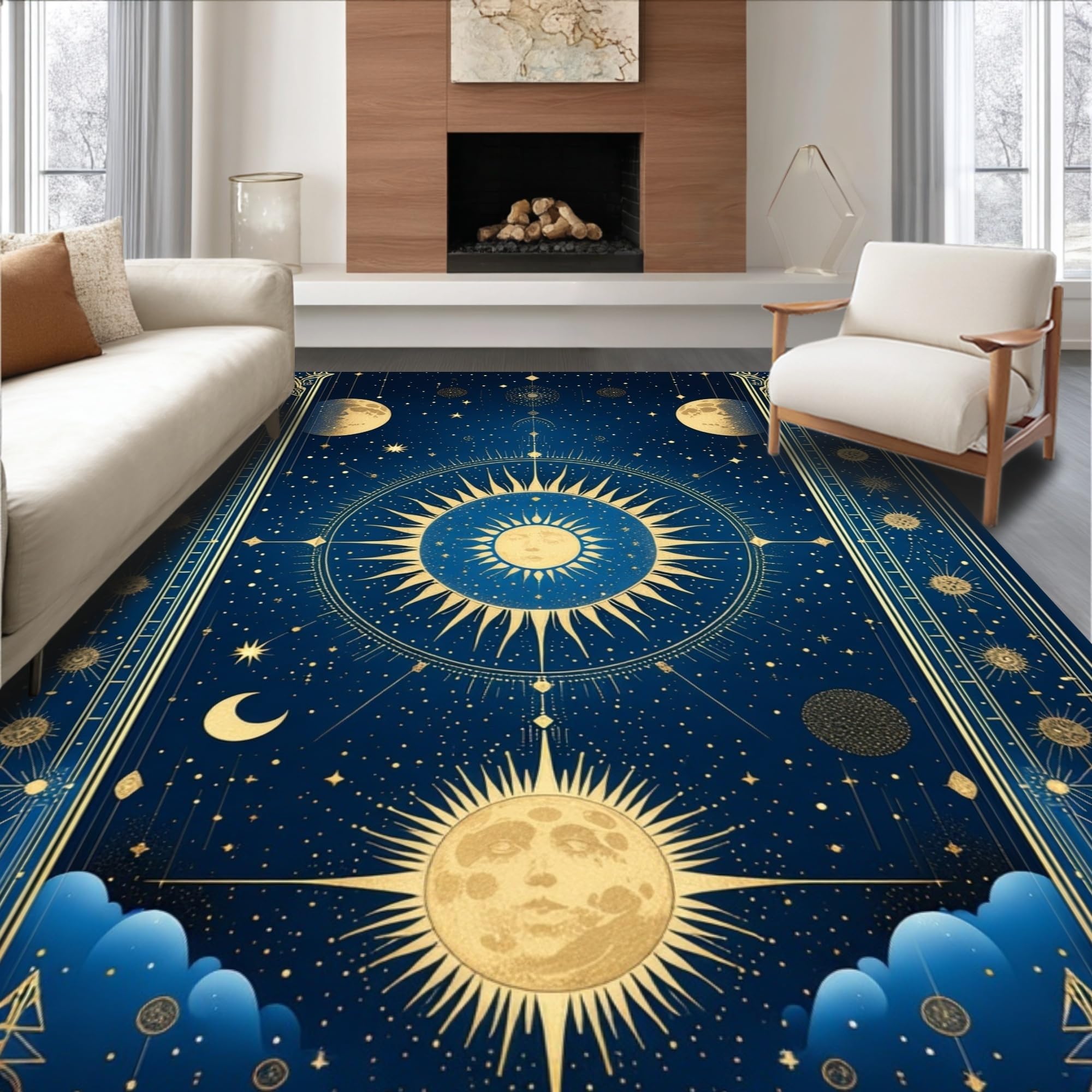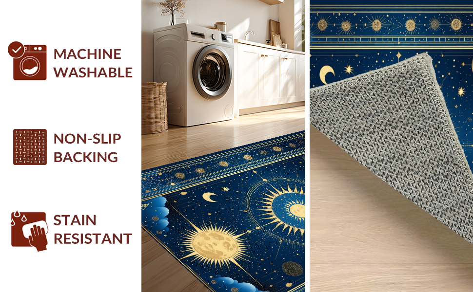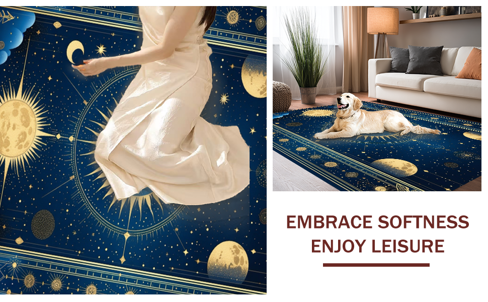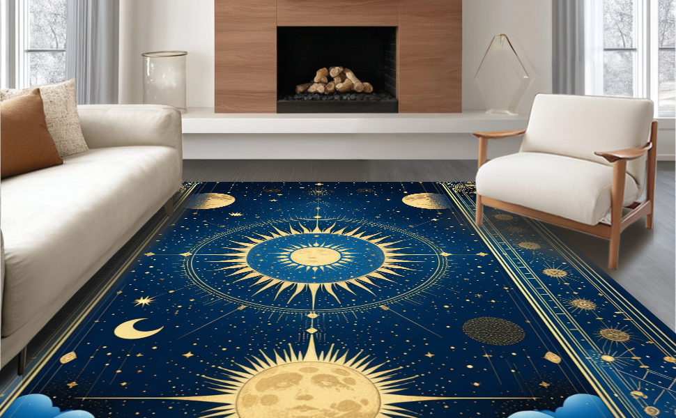 Ultra Soft Area Rug, Non Slip, Stain Resistant, Washable Area Rugs for Living Room, Bedroom, Radiant Celestial Inspired Artwork(Blue) Overview: