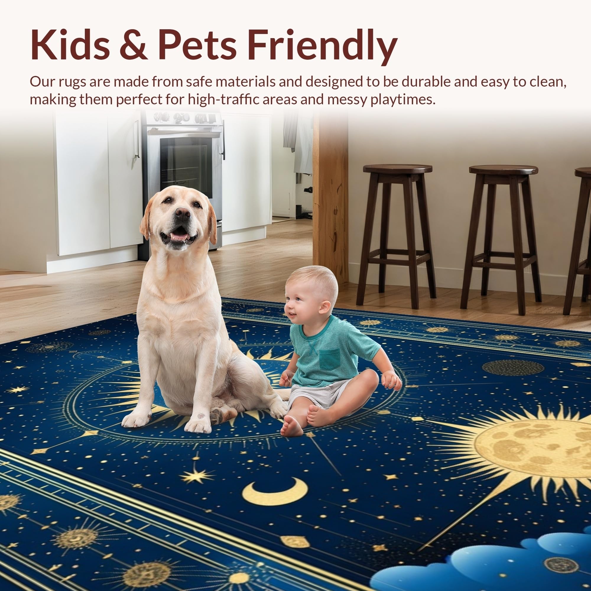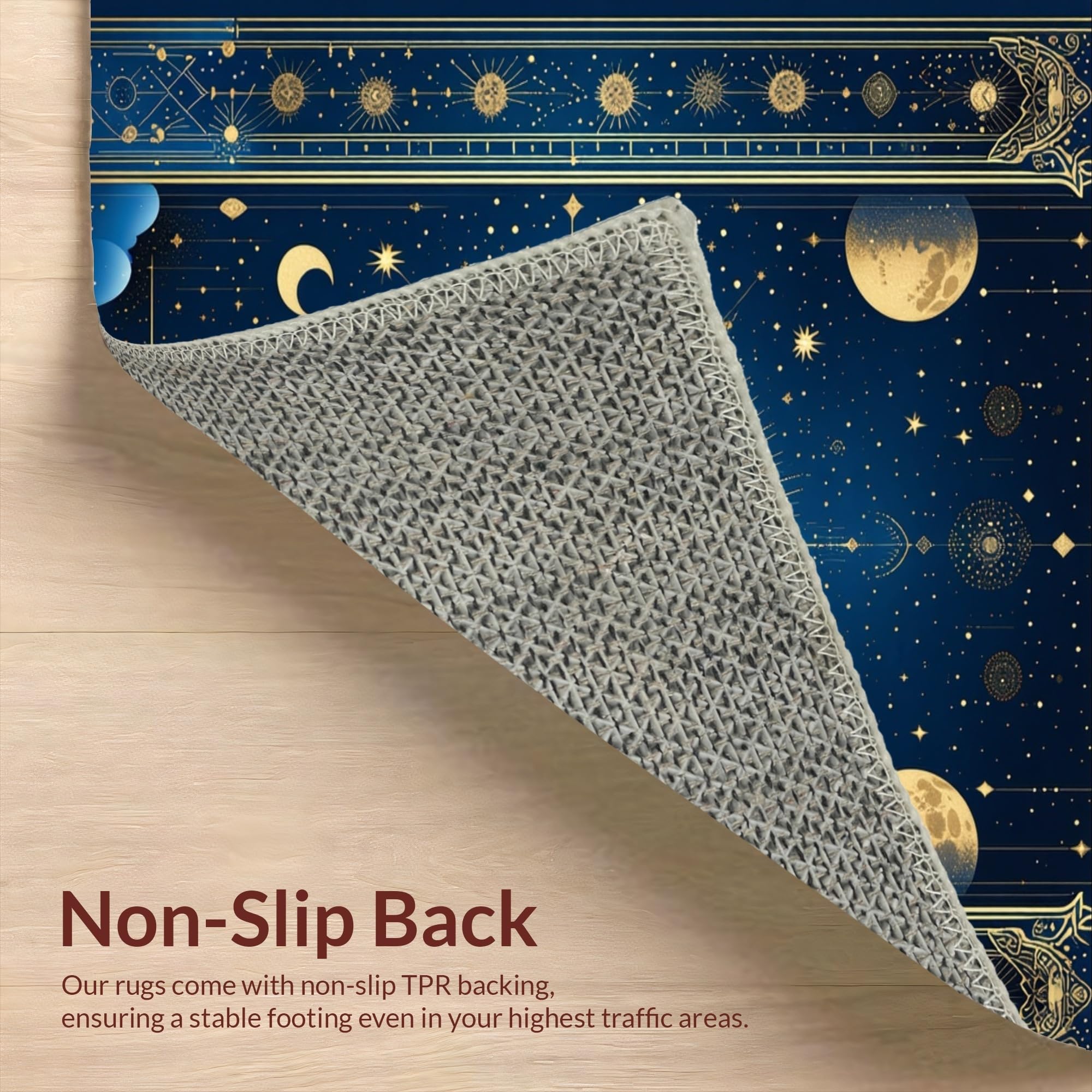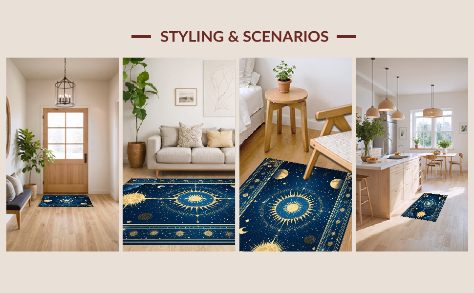 Ultra Soft Area Rug, Non Slip, Stain Resistant, Washable Area Rugs for Living Room, Bedroom, Radiant Celestial Inspired Artwork(Blue) Overview: