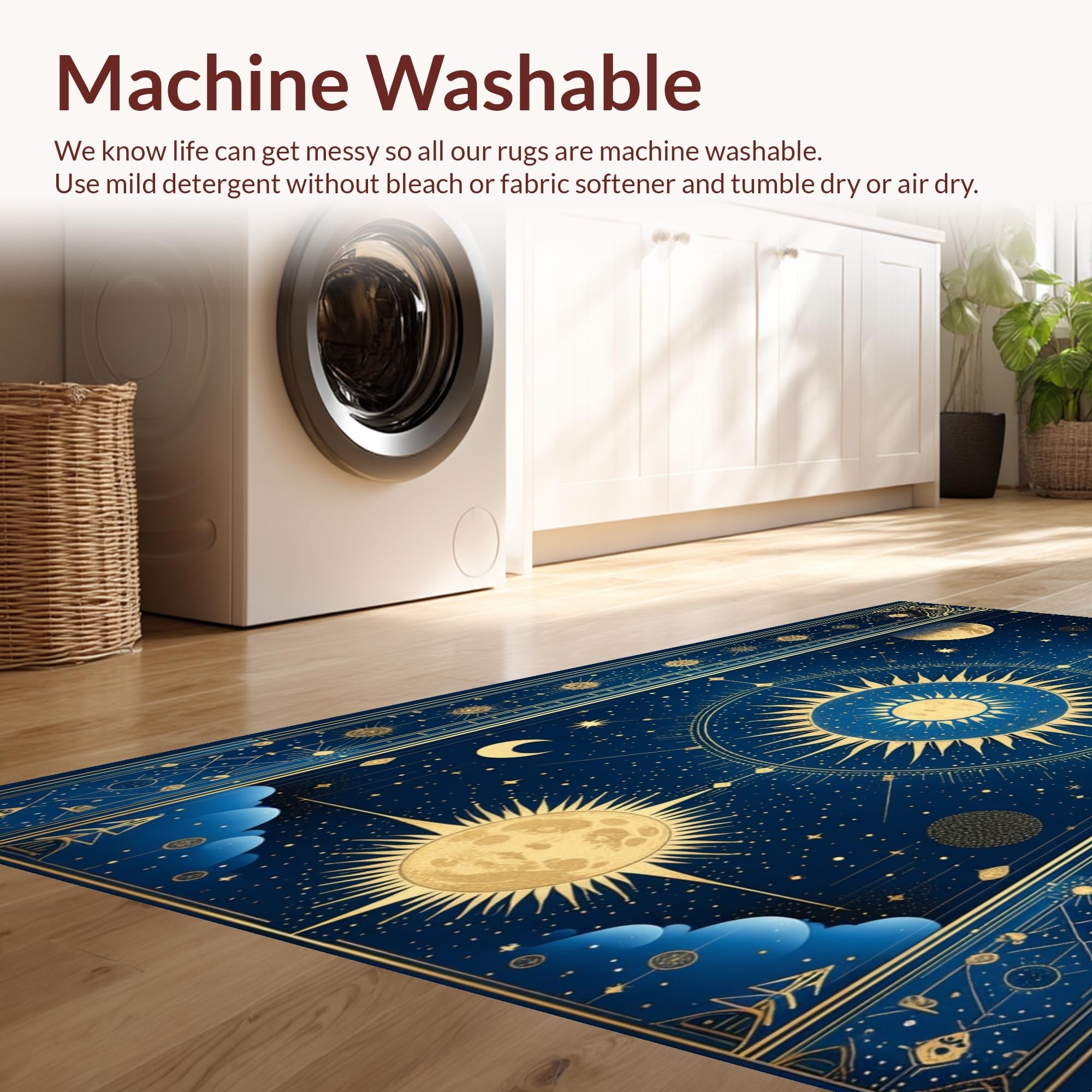- Machine Washable: Our rugs can be easily thrown in the wash machine.