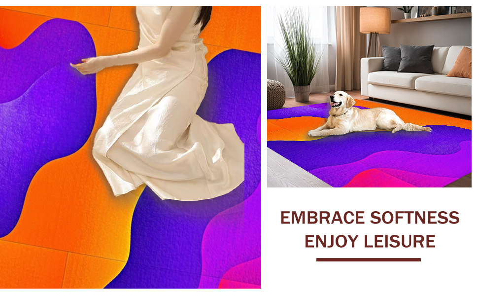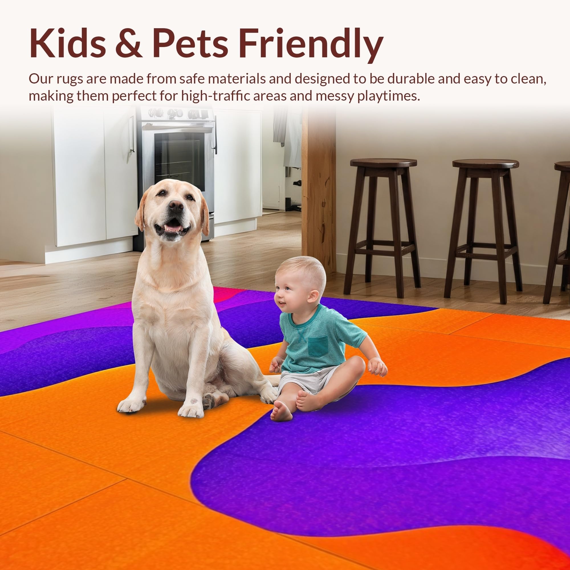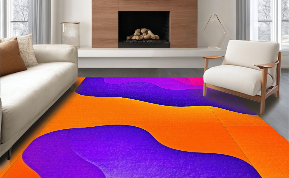 Ultra Soft Area Rug, Non Slip, Stain Resistant, Washable Area Rugs for Living Room, Bedroom, Radiant Color Burst Fluidity Concept(Orange) Overview: