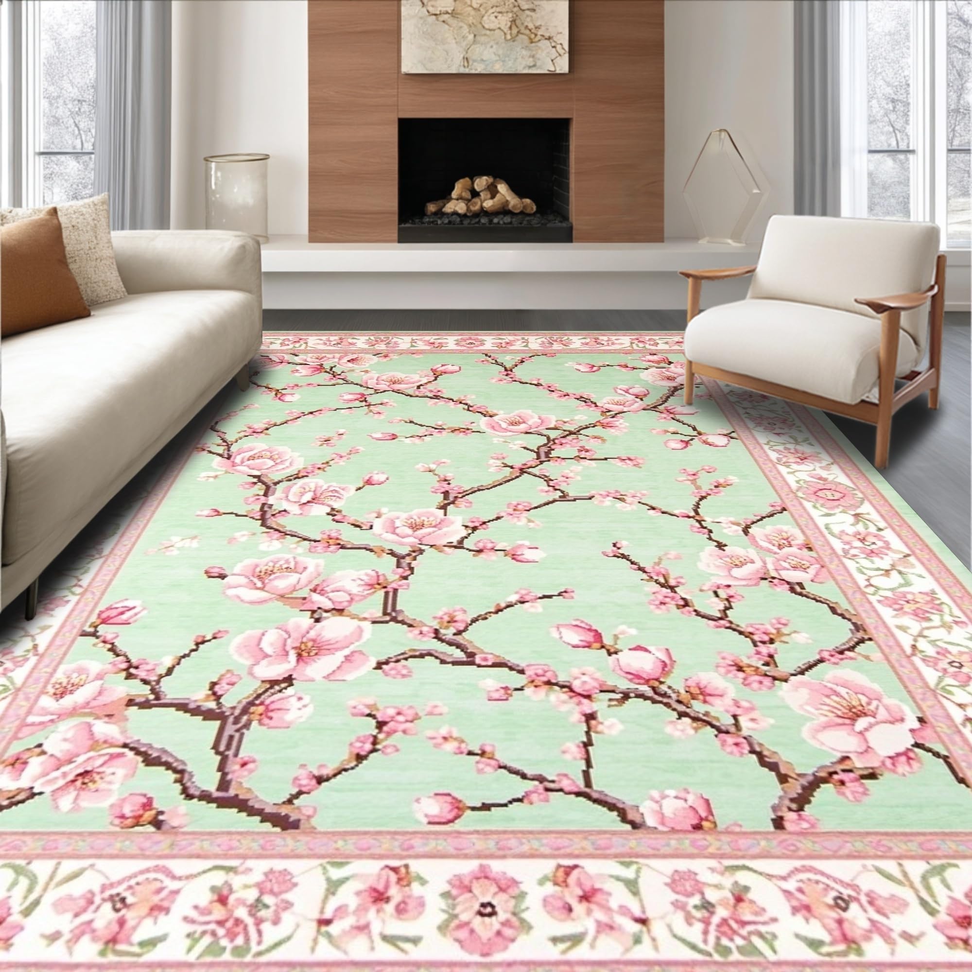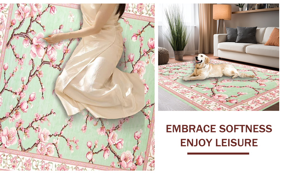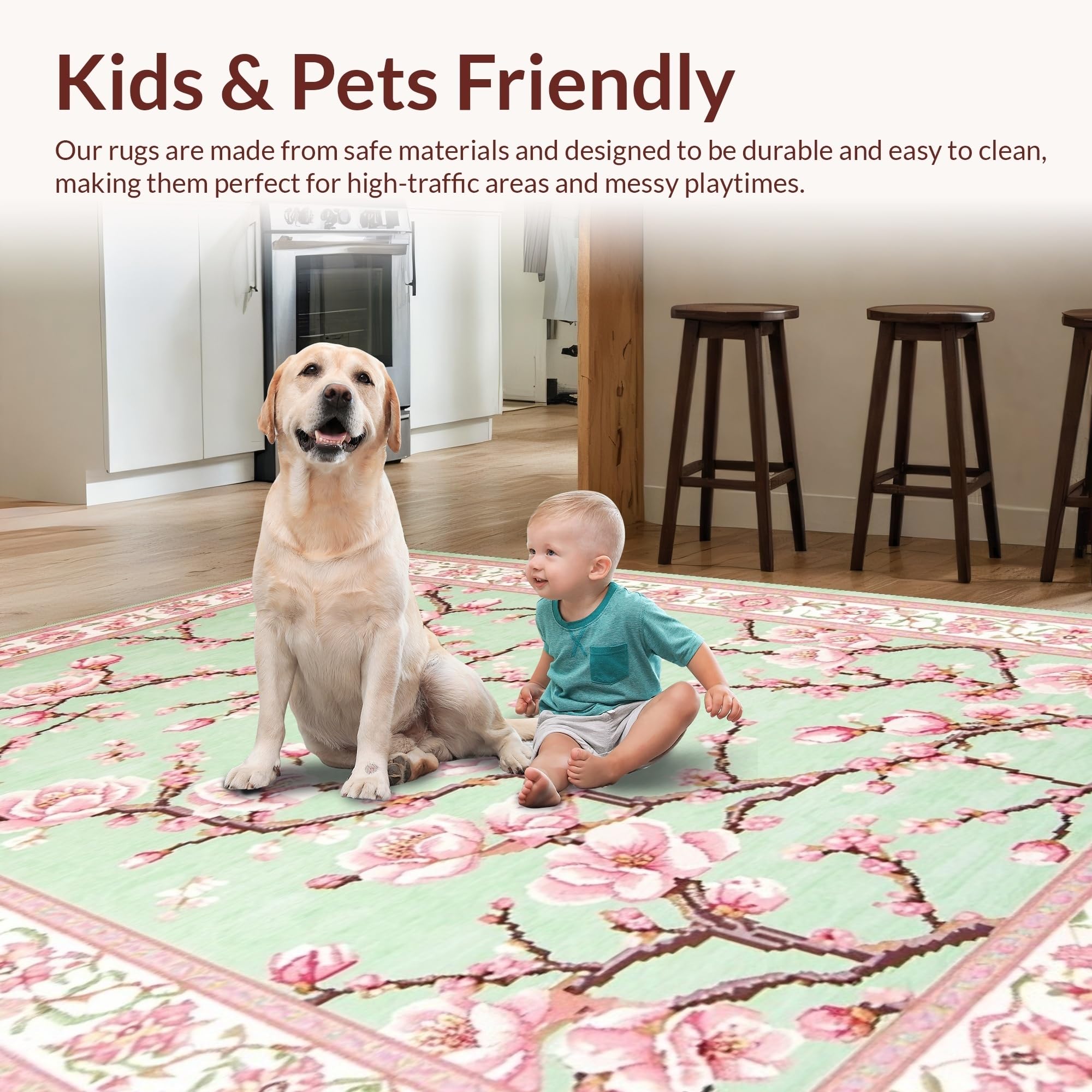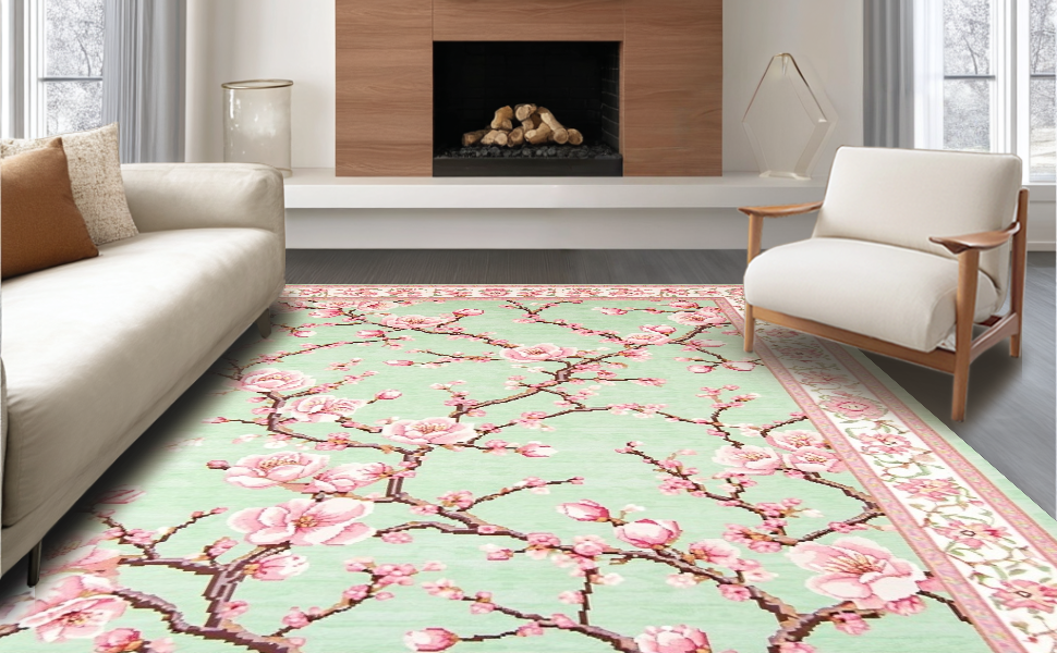 Ultra Soft Area Rug, Non Slip, Stain Resistant, Washable Area Rugs for Living Room, Bedroom, Radiant Contemporary Blossom Style(Ivory) Overview: