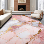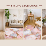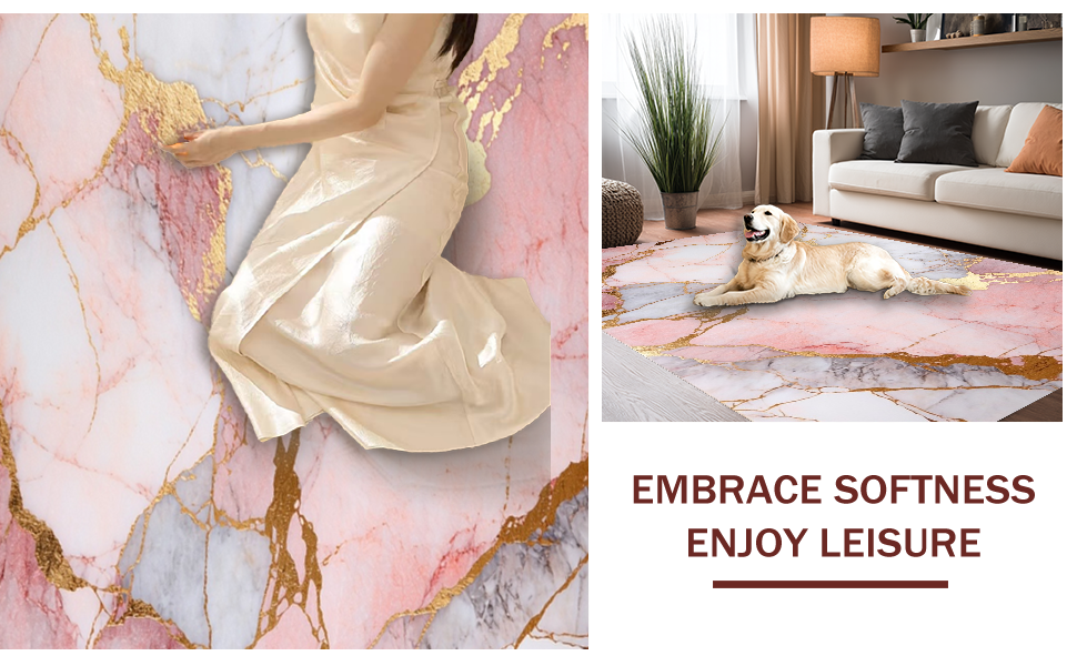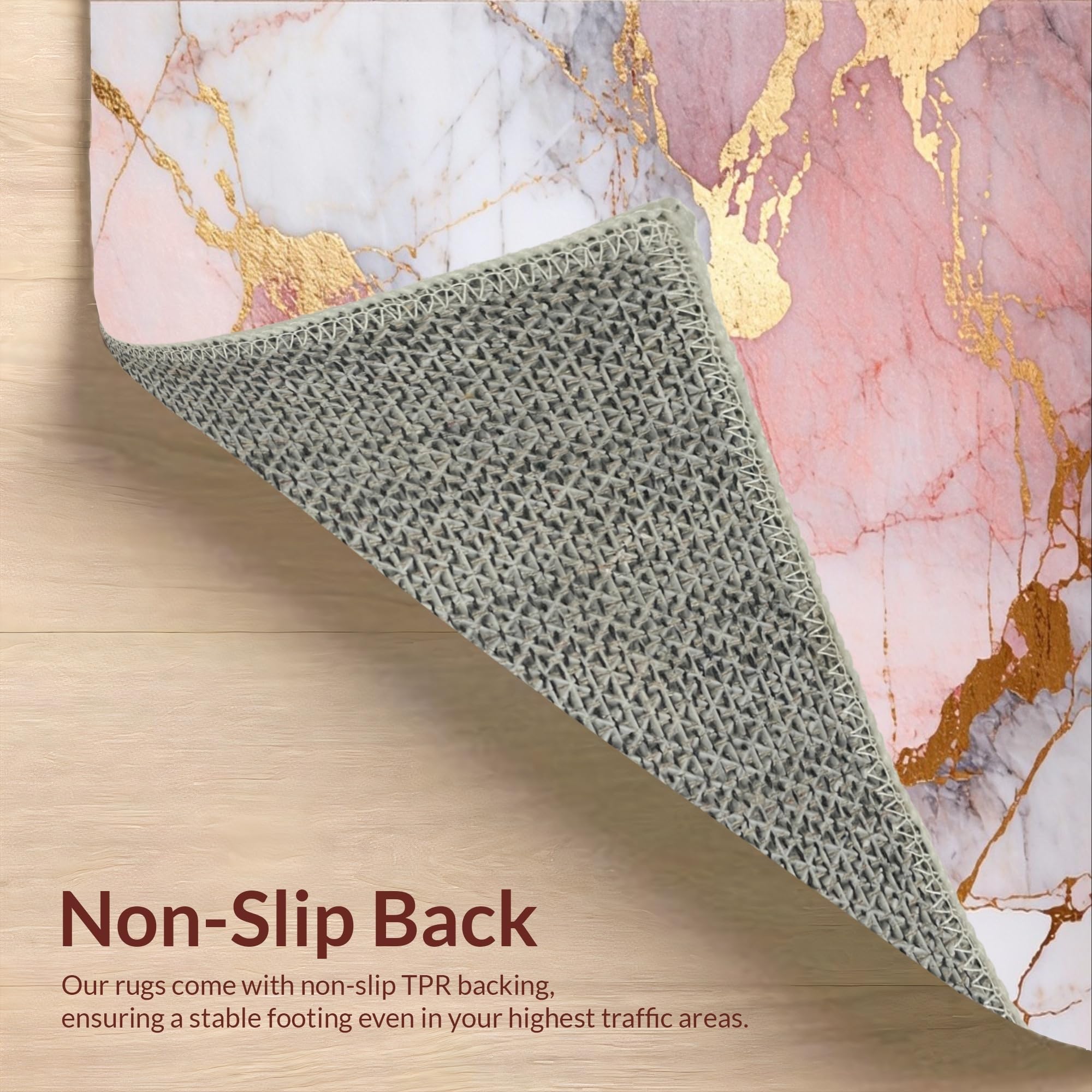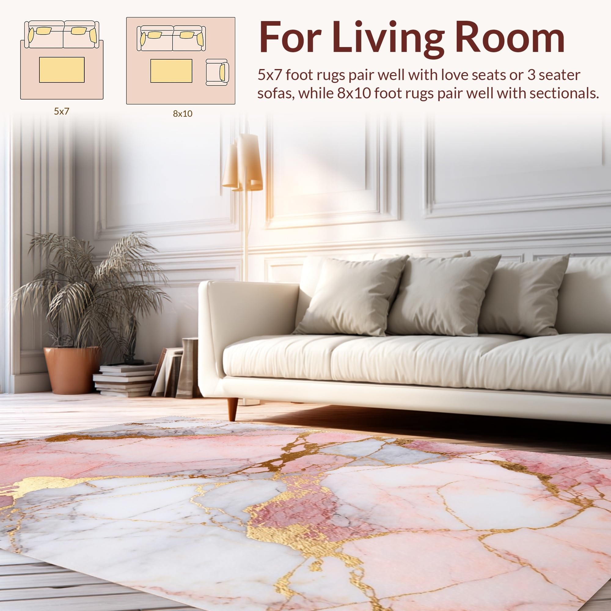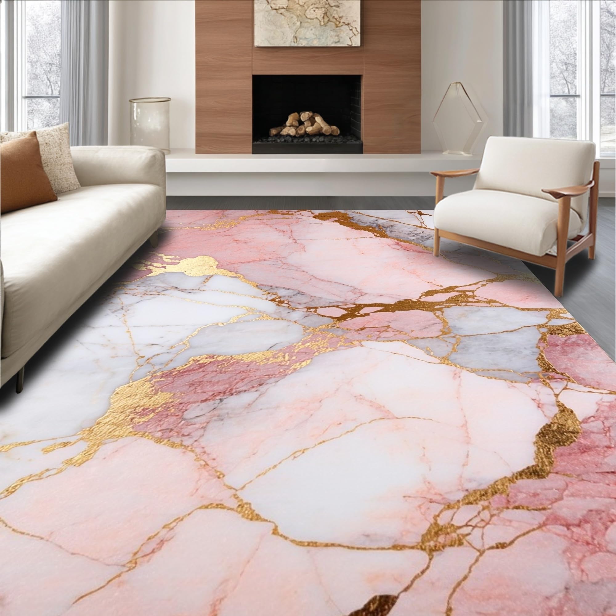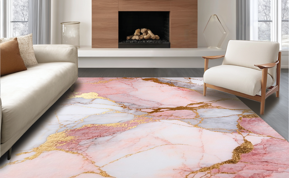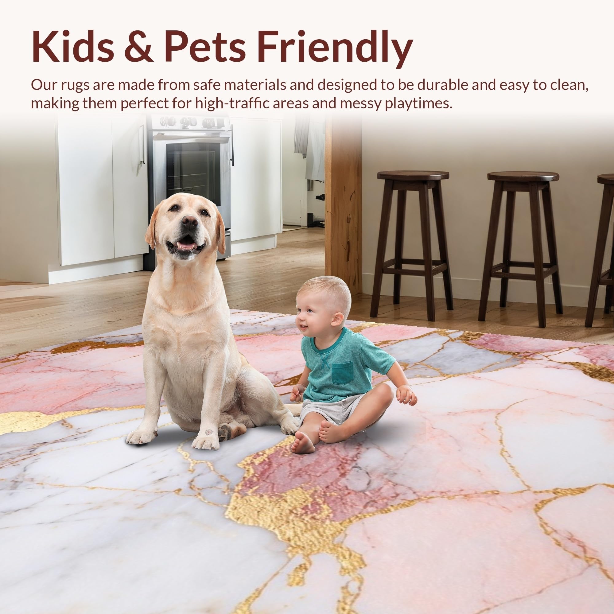 Ultra Soft Area Rug, Non Slip, Stain Resistant, Washable Area Rugs for Living Room, Bedroom, Radiant Gold Accented Design(Pink) Overview: