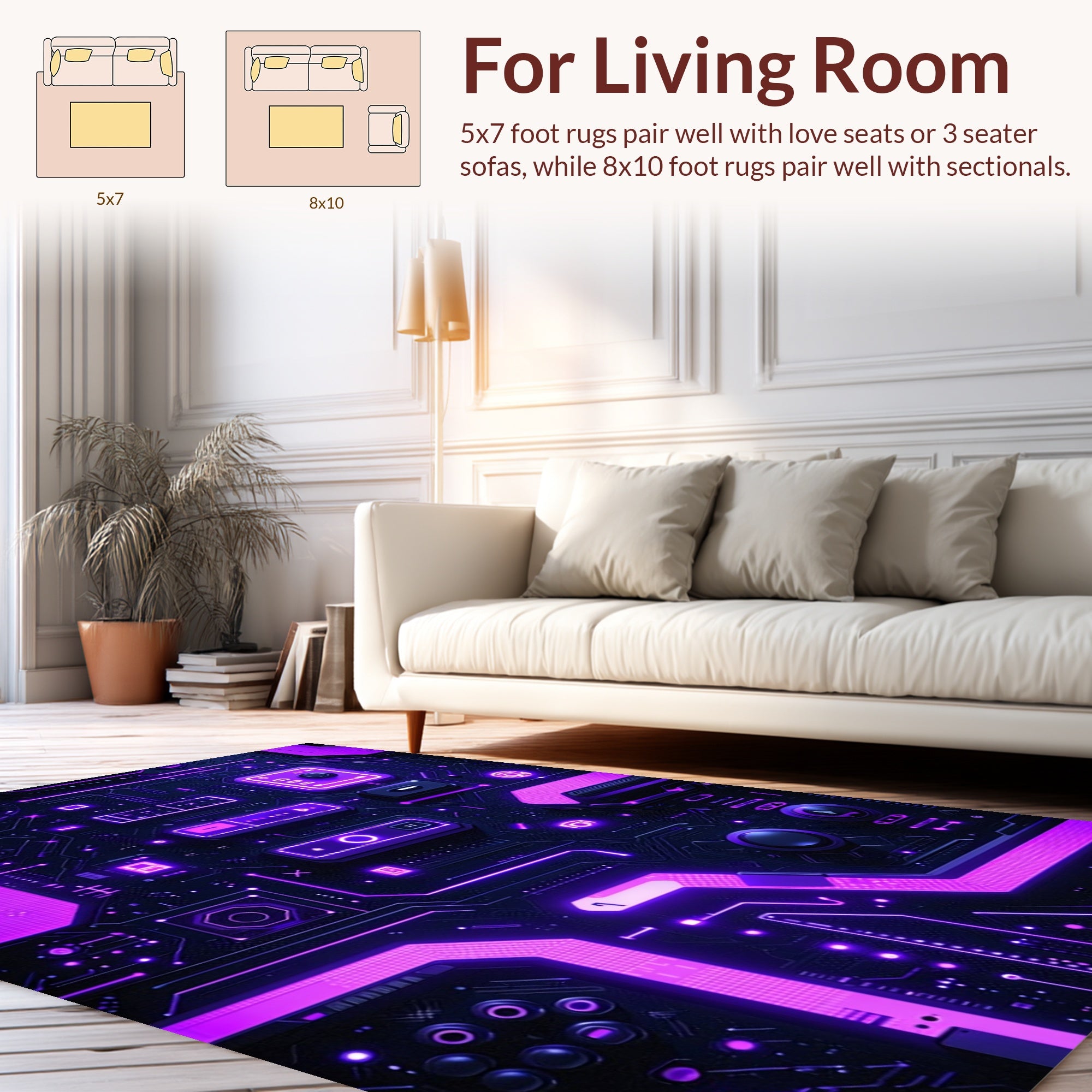 Flatwoven High Traffic Area Rug, Radiant Modern Artistic Vibe, Non Slip, Stain Resistant, Washable Area Rugs for Living Room, Bedroom (Purple) Overview: