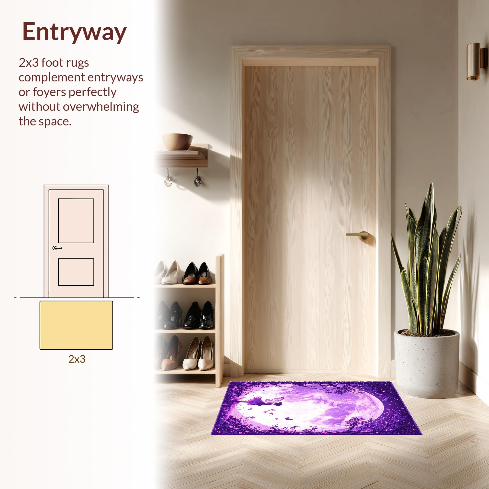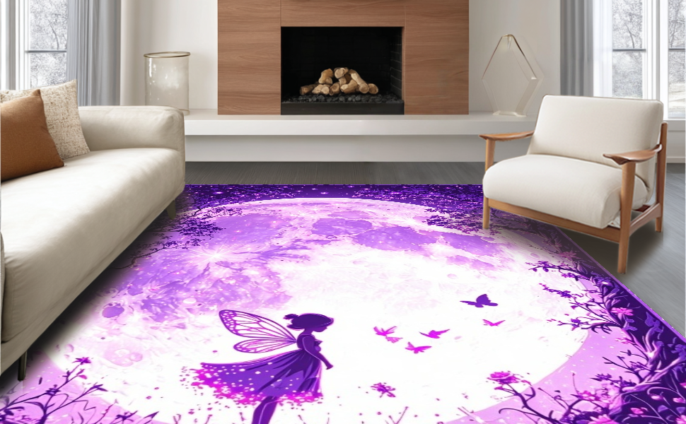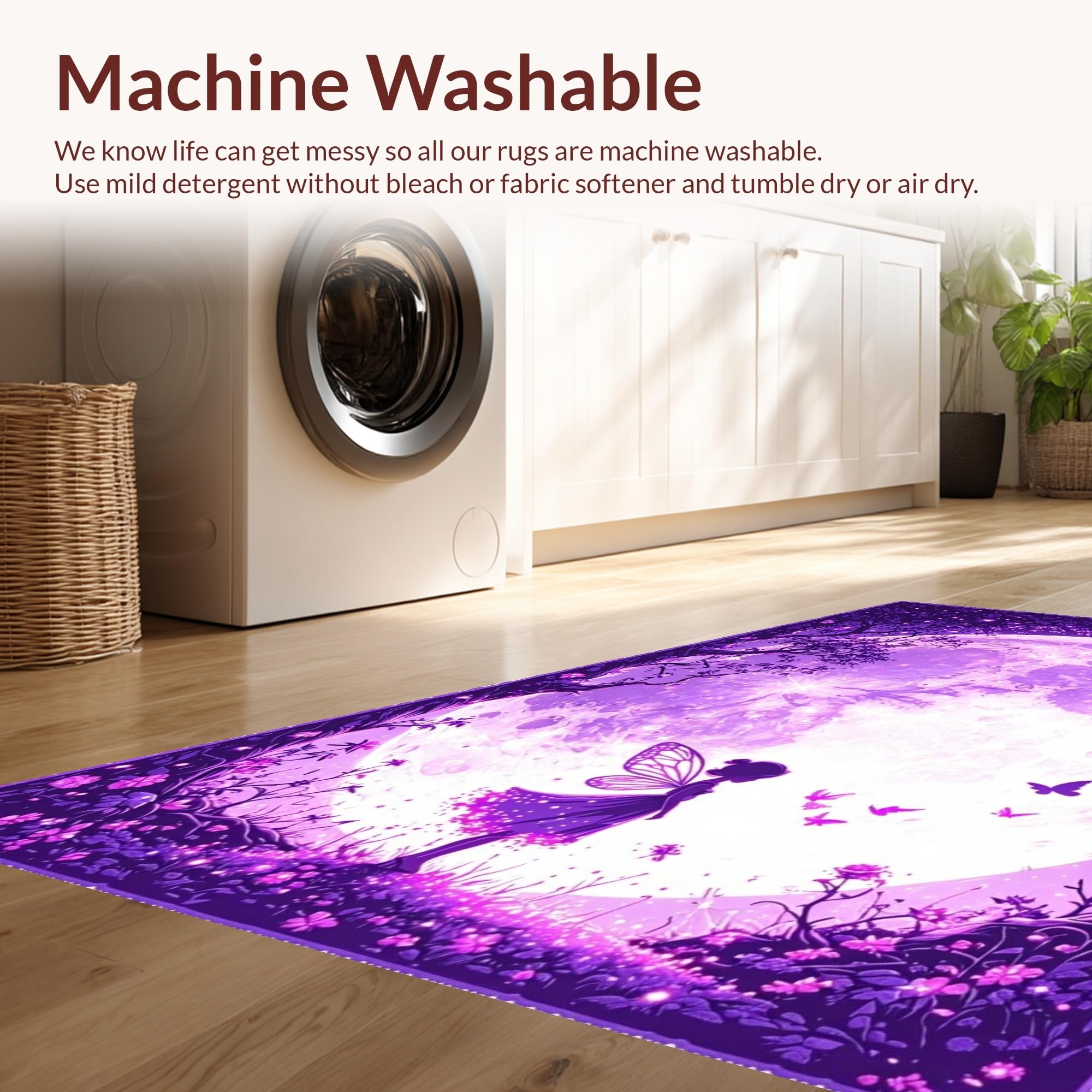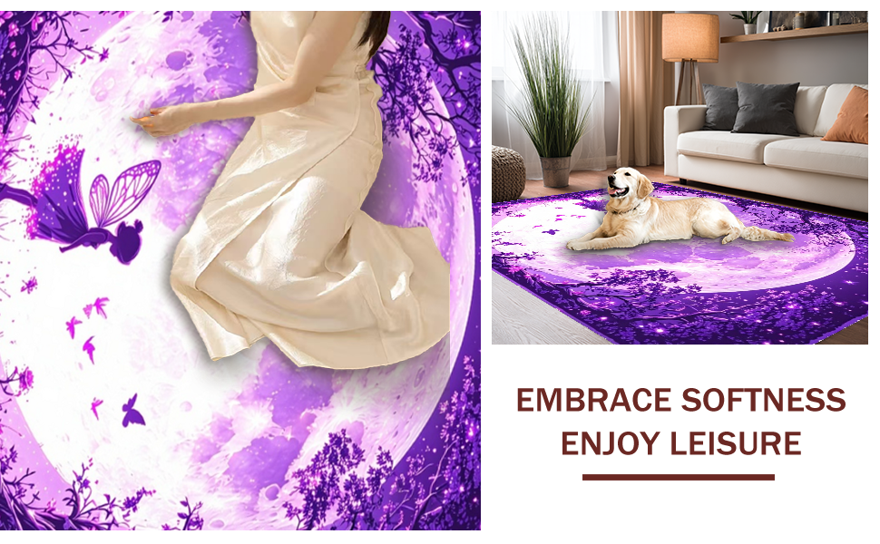 Ultra Soft Area Rug, Non Slip, Stain Resistant, Washable Area Rugs for Living Room, Bedroom, Radiant Moonbeam Floral Theme(Purple) Overview: