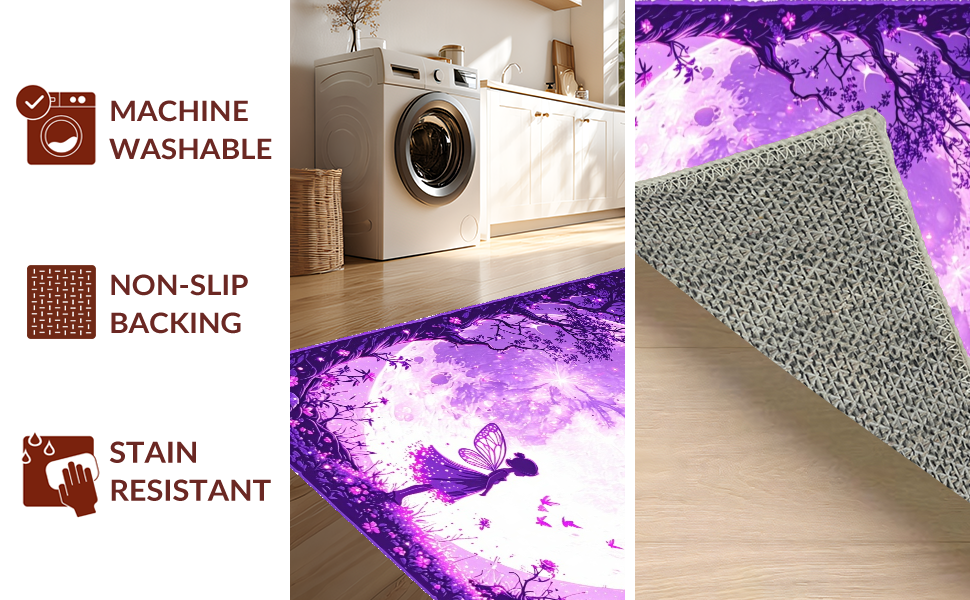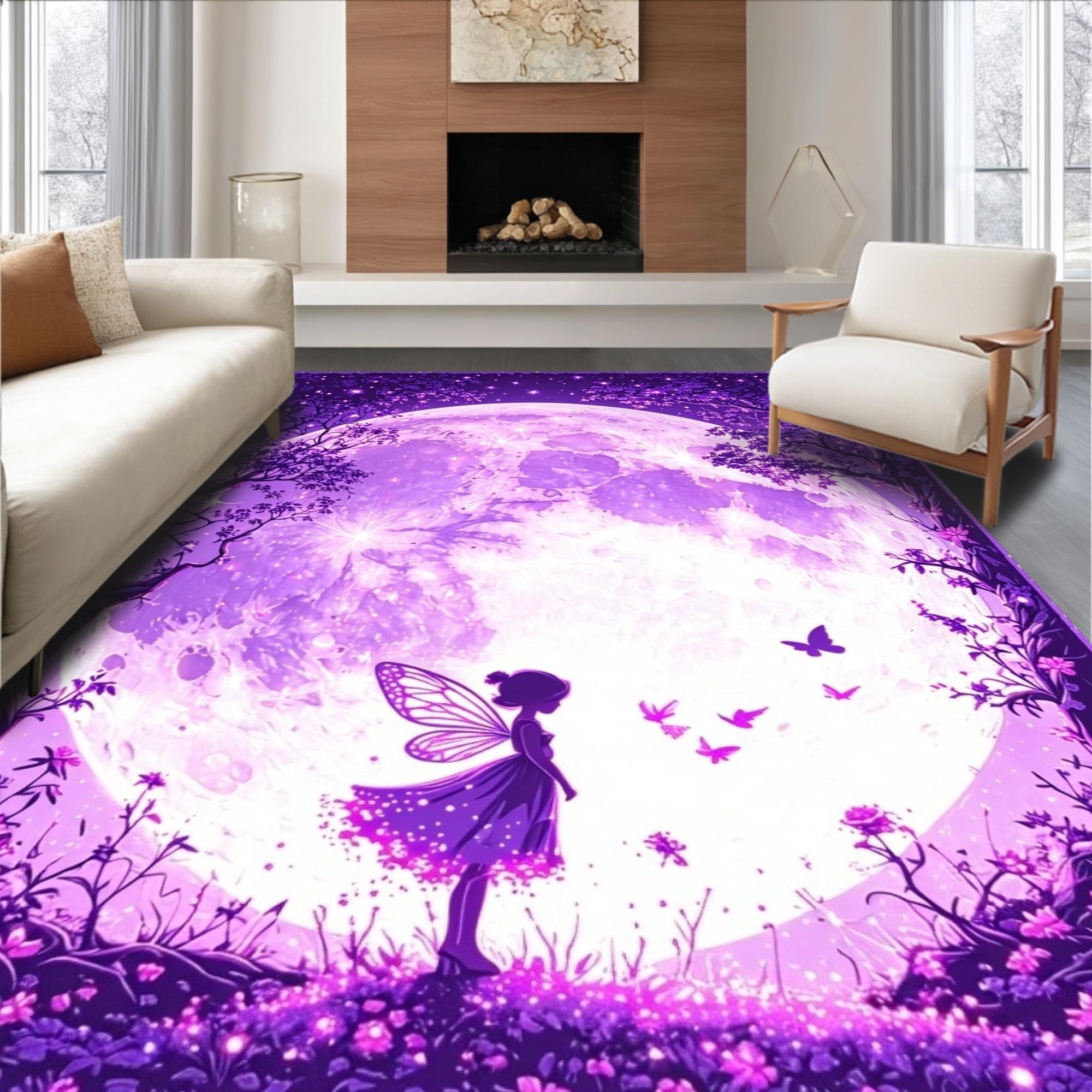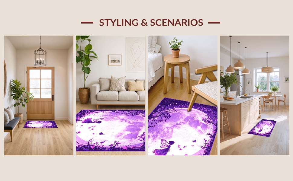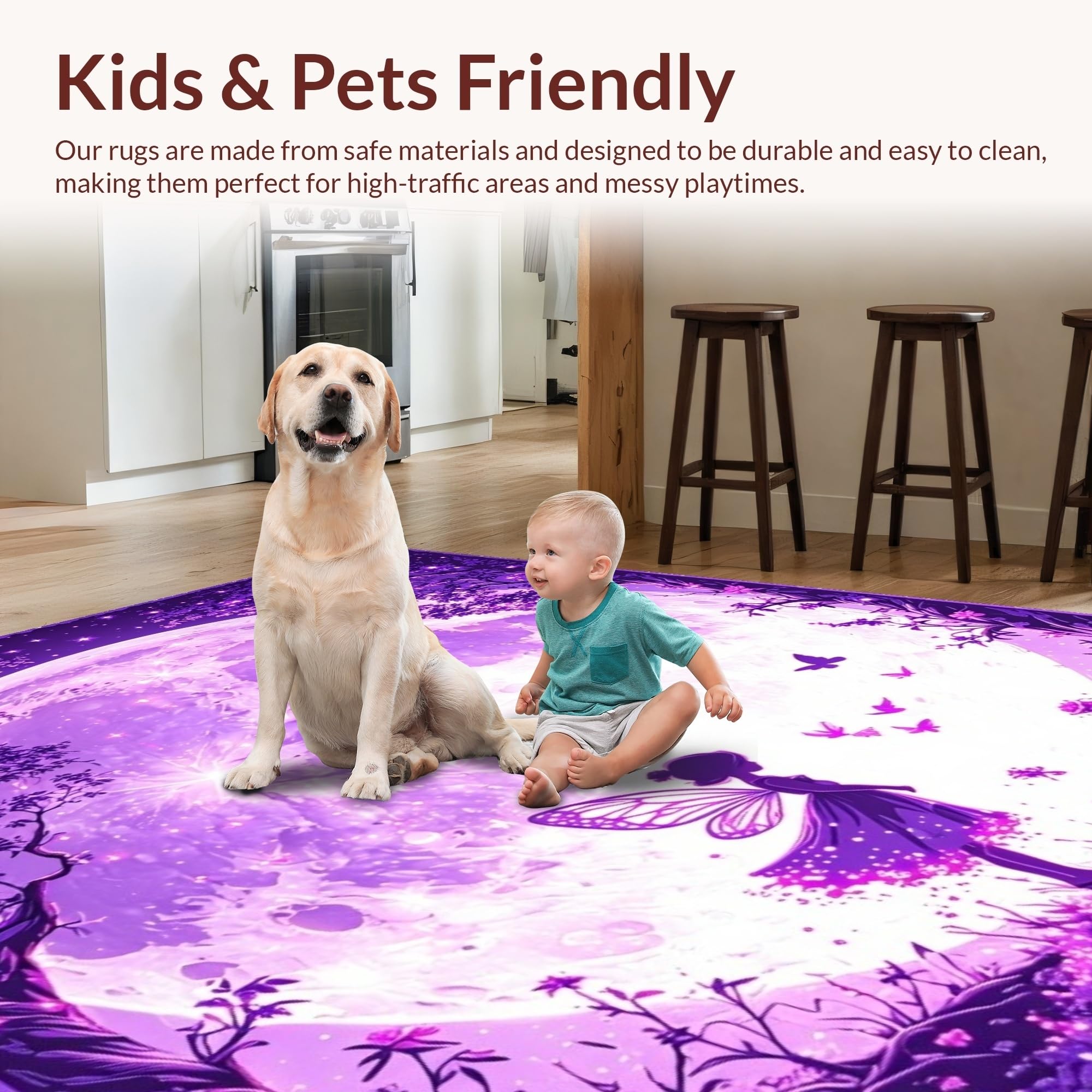 Ultra Soft Area Rug, Non Slip, Stain Resistant, Washable Area Rugs for Living Room, Bedroom, Radiant Moonbeam Floral Theme(Purple) Overview: