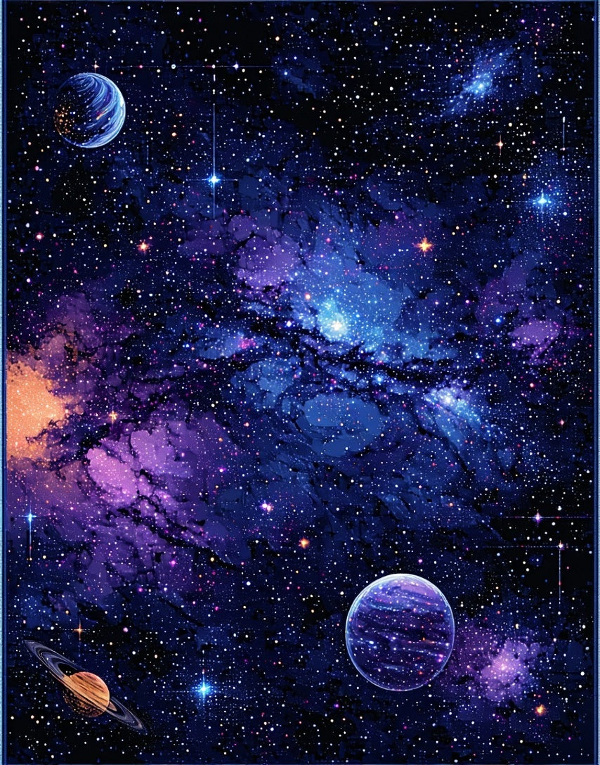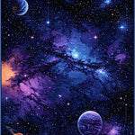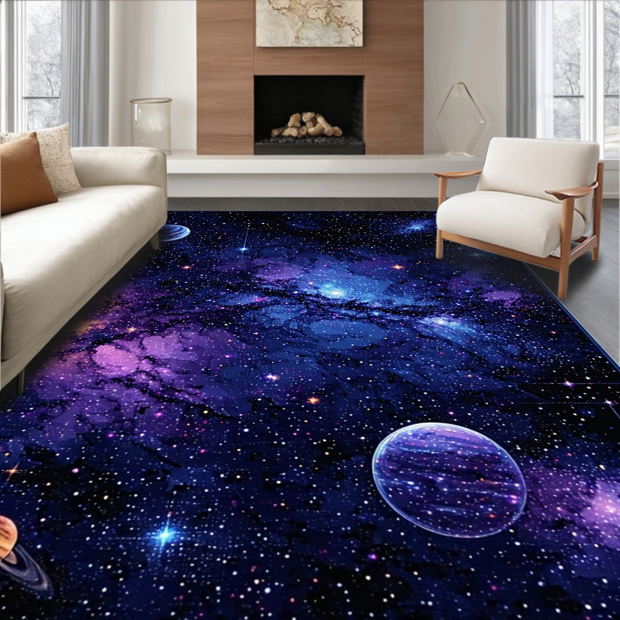 Flatwoven High Traffic Area Rug, Radiant Planetary Color Splash, Non Slip, Stain Resistant, Washable Area Rugs for Living Room, Bedroom (Blue) Overview: