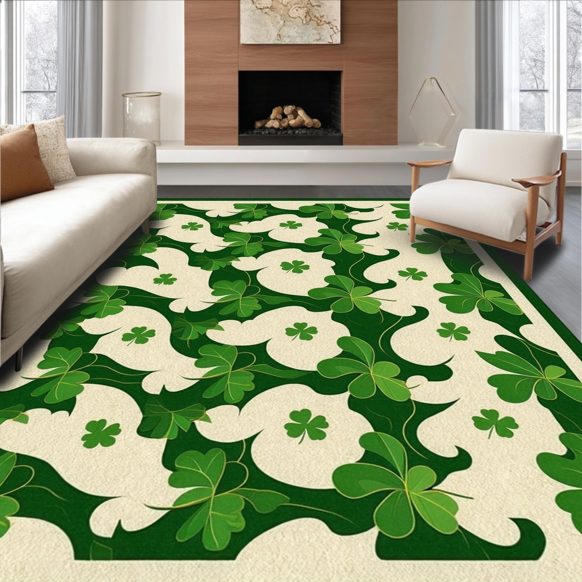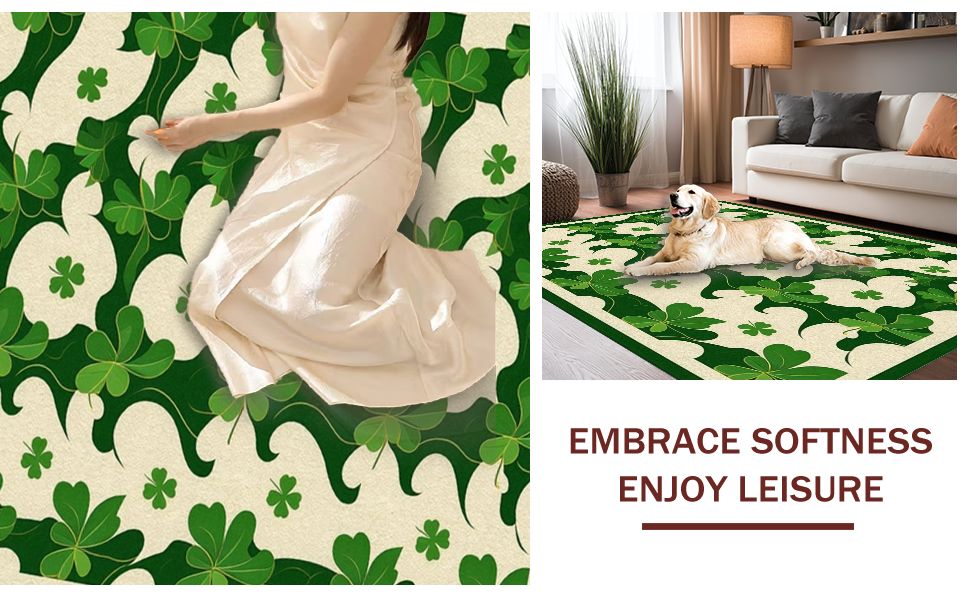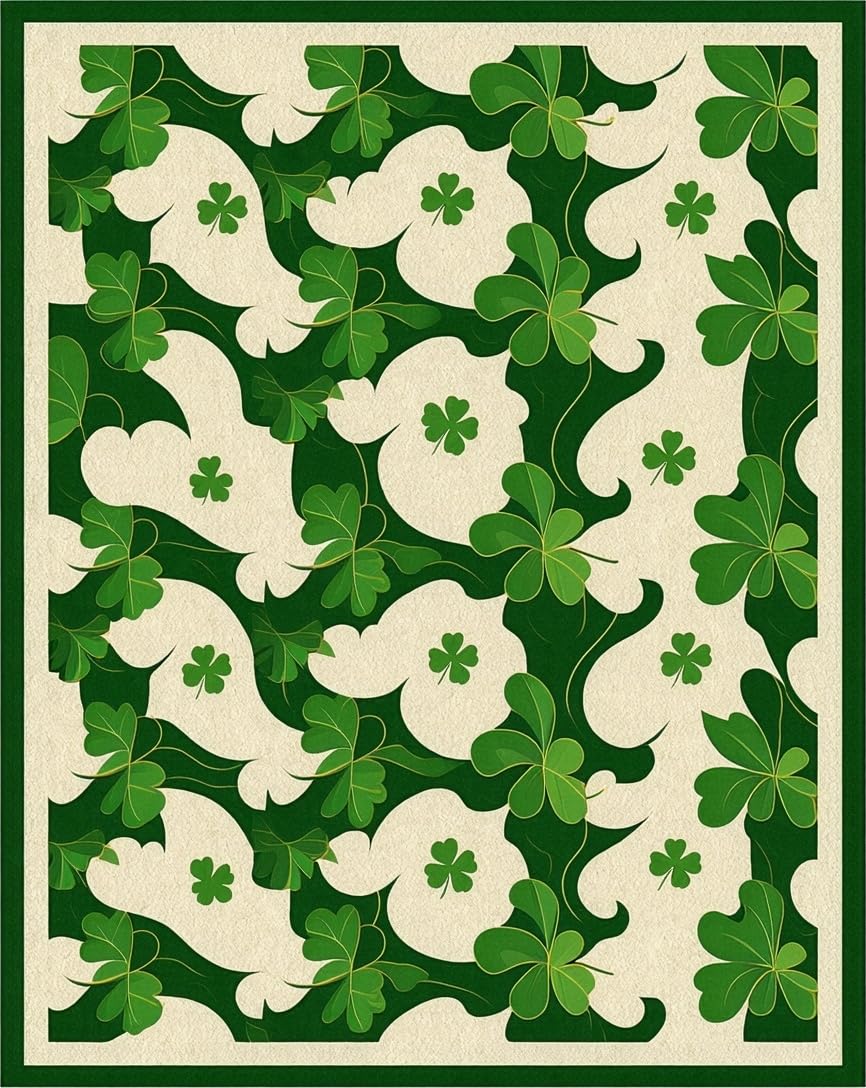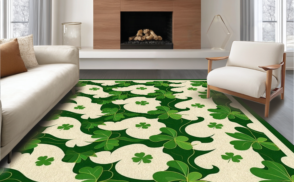 Ultra Soft Area Rug, Non Slip, Stain Resistant, Washable Area Rugs for Living Room, Bedroom, Radiant Rustic Shamrock Artistry(Green) Overview: