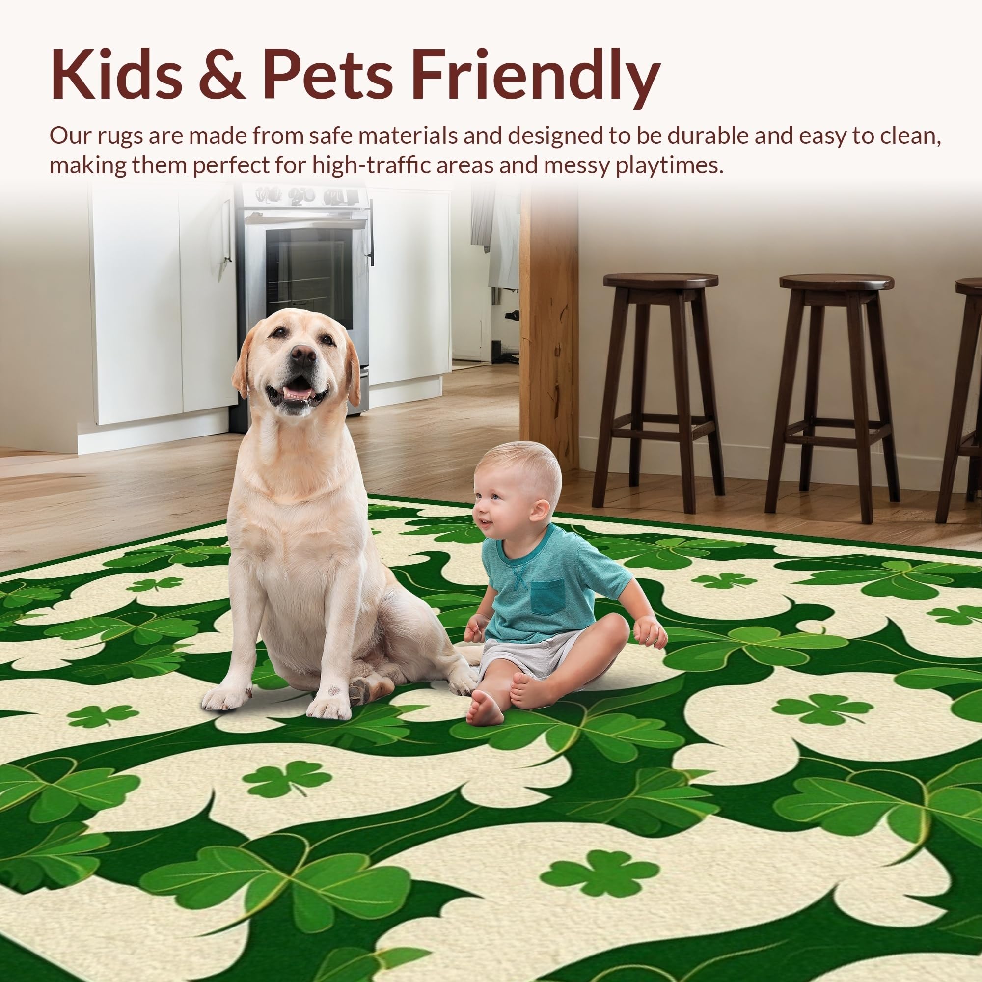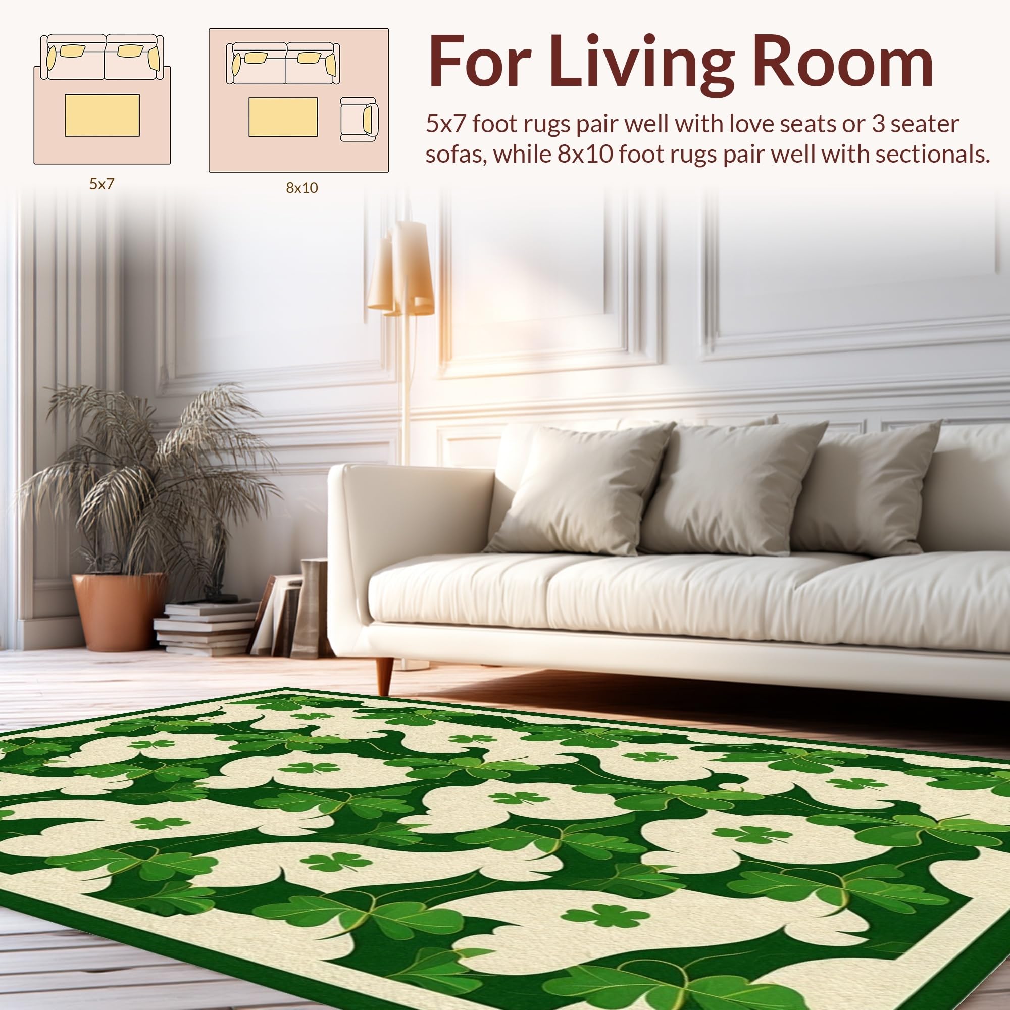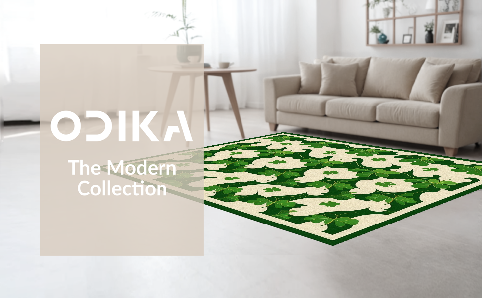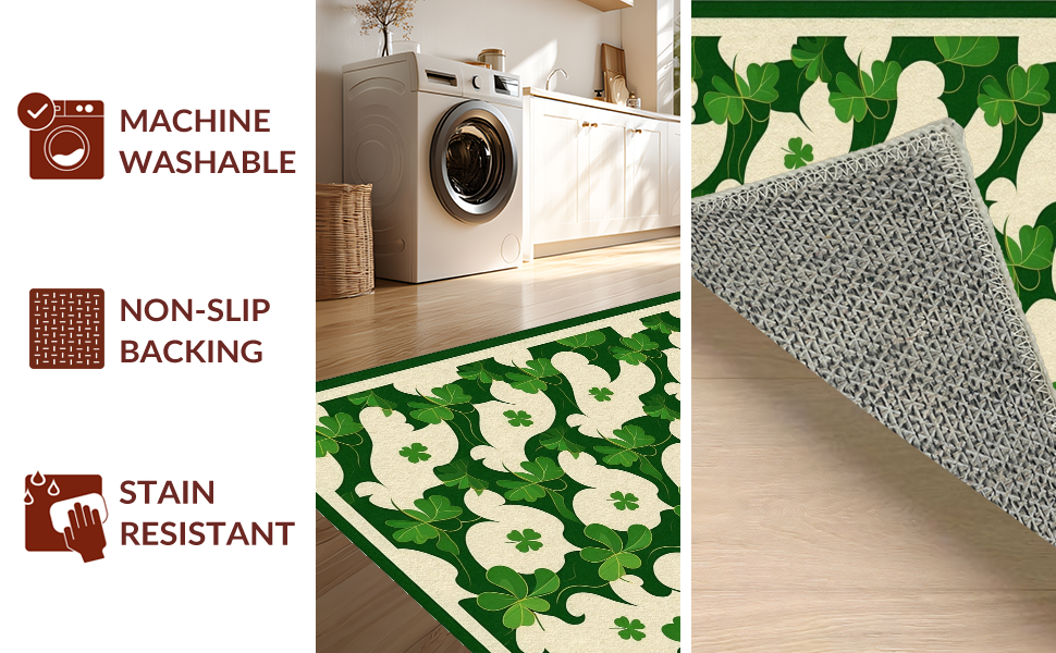 Ultra Soft Area Rug, Non Slip, Stain Resistant, Washable Area Rugs for Living Room, Bedroom, Radiant Rustic Shamrock Artistry(Green) Overview: