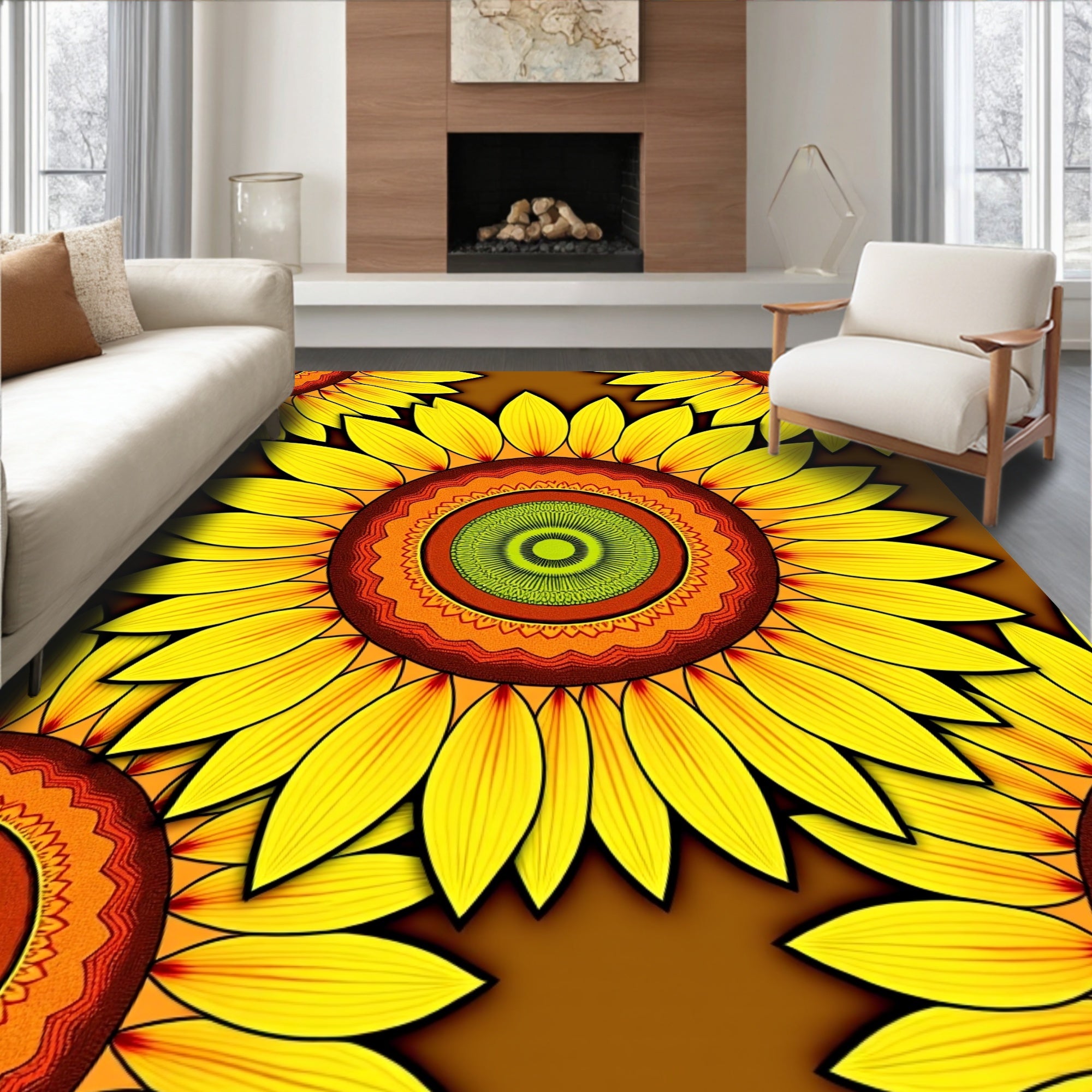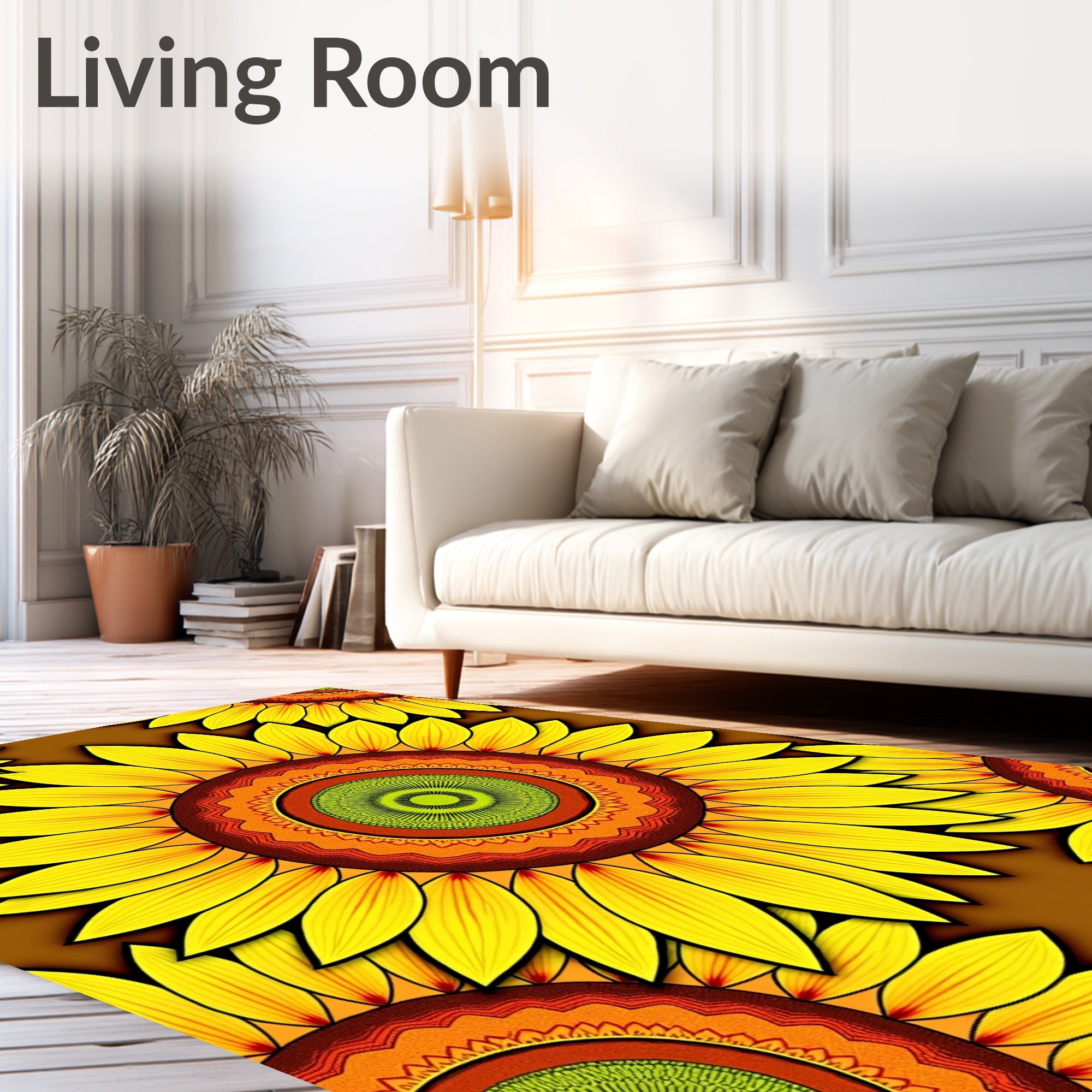 Ultra Soft Area Rug, Non Slip, Stain Resistant, Washable Area Rugs for Living Room, Bedroom, Radiant Sunburst Petals Decorative Handwoven Accent Bloom(Yellow) Overview: