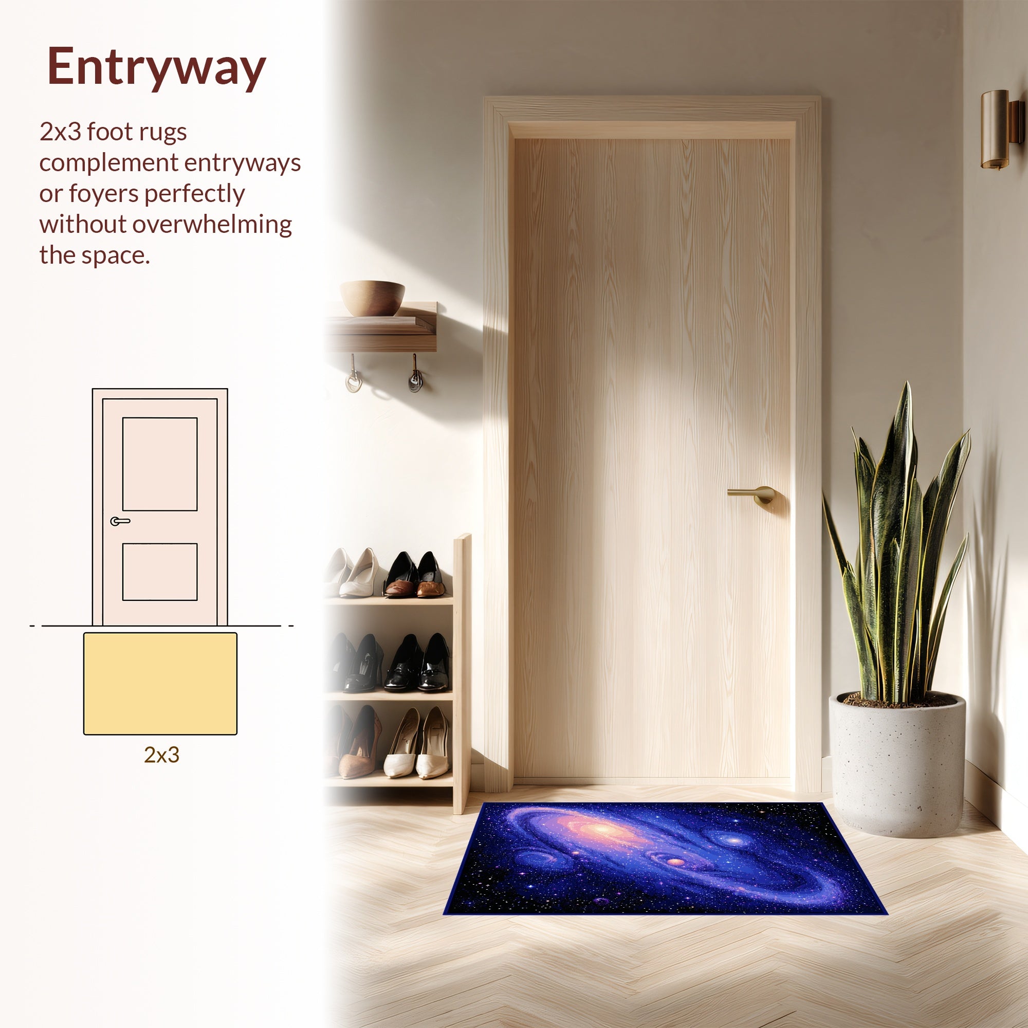 Flatwoven High Traffic Area Rug, Radiant Universe Themed Design, Non Slip, Stain Resistant, Washable Area Rugs for Living Room, Bedroom (Blue) Overview: