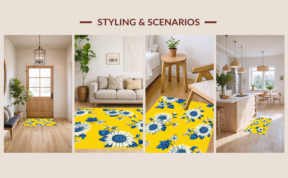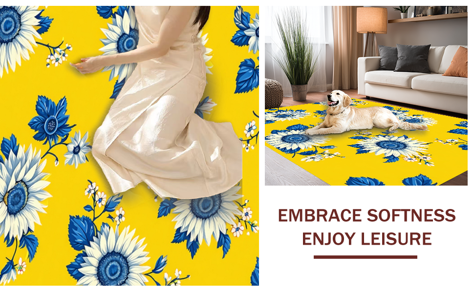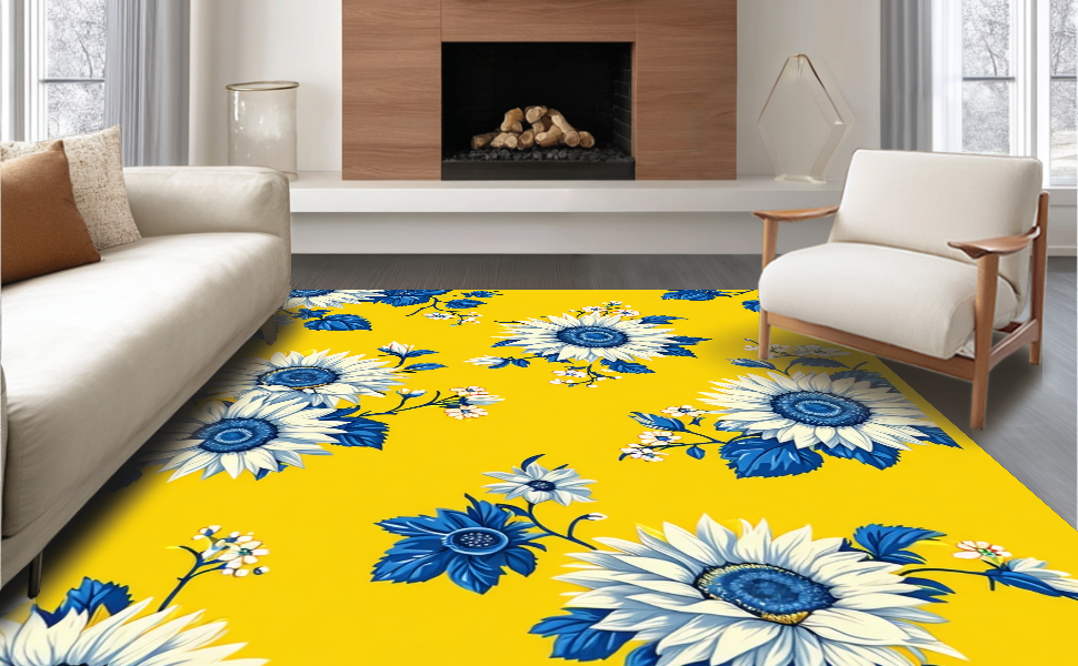 Ultra Soft Area Rug, Non Slip, Stain Resistant, Washable Area Rugs for Living Room, Bedroom, Radiant Yellow and Blue Harmony(Yellow) Overview: