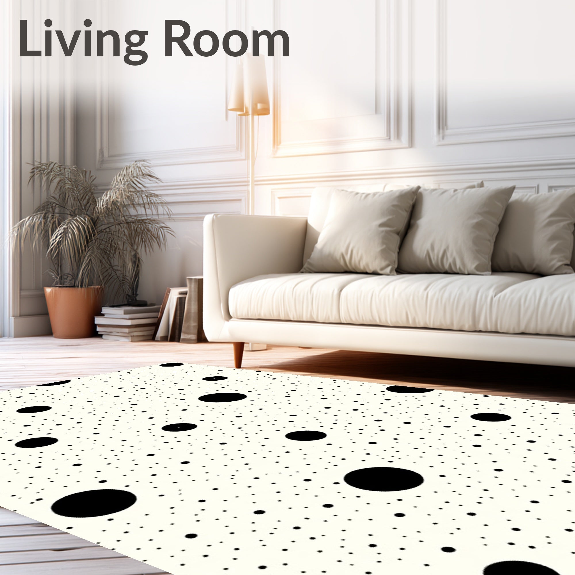 Ultra Soft Area Rug, Non Slip, Stain Resistant, Washable Area Rugs for Living Room, Bedroom, Raindrop Symphony Sophisticated Scattered Spot Motif(Black) Overview: