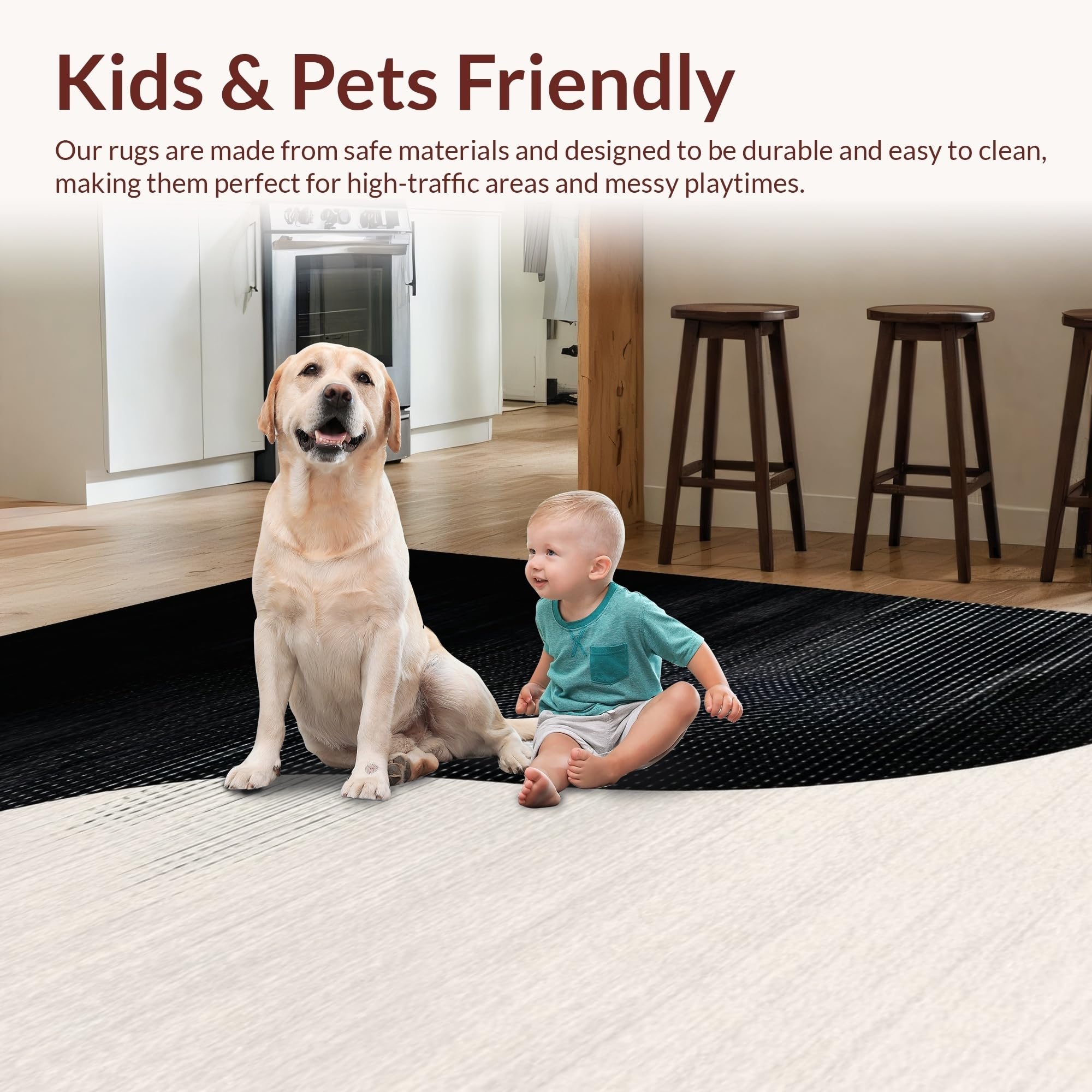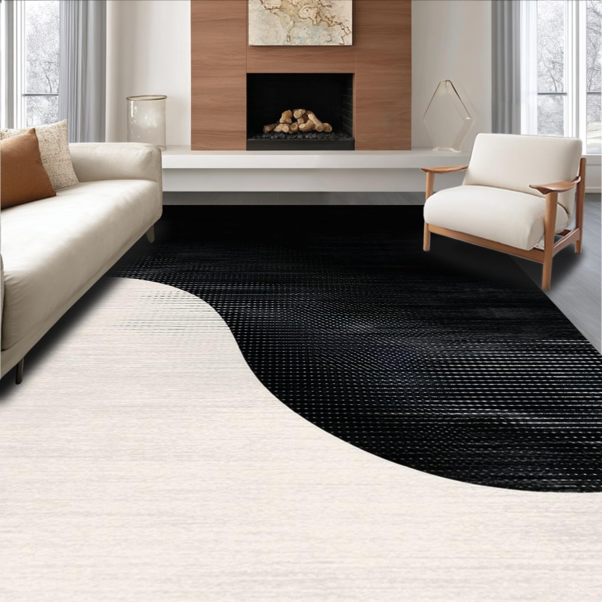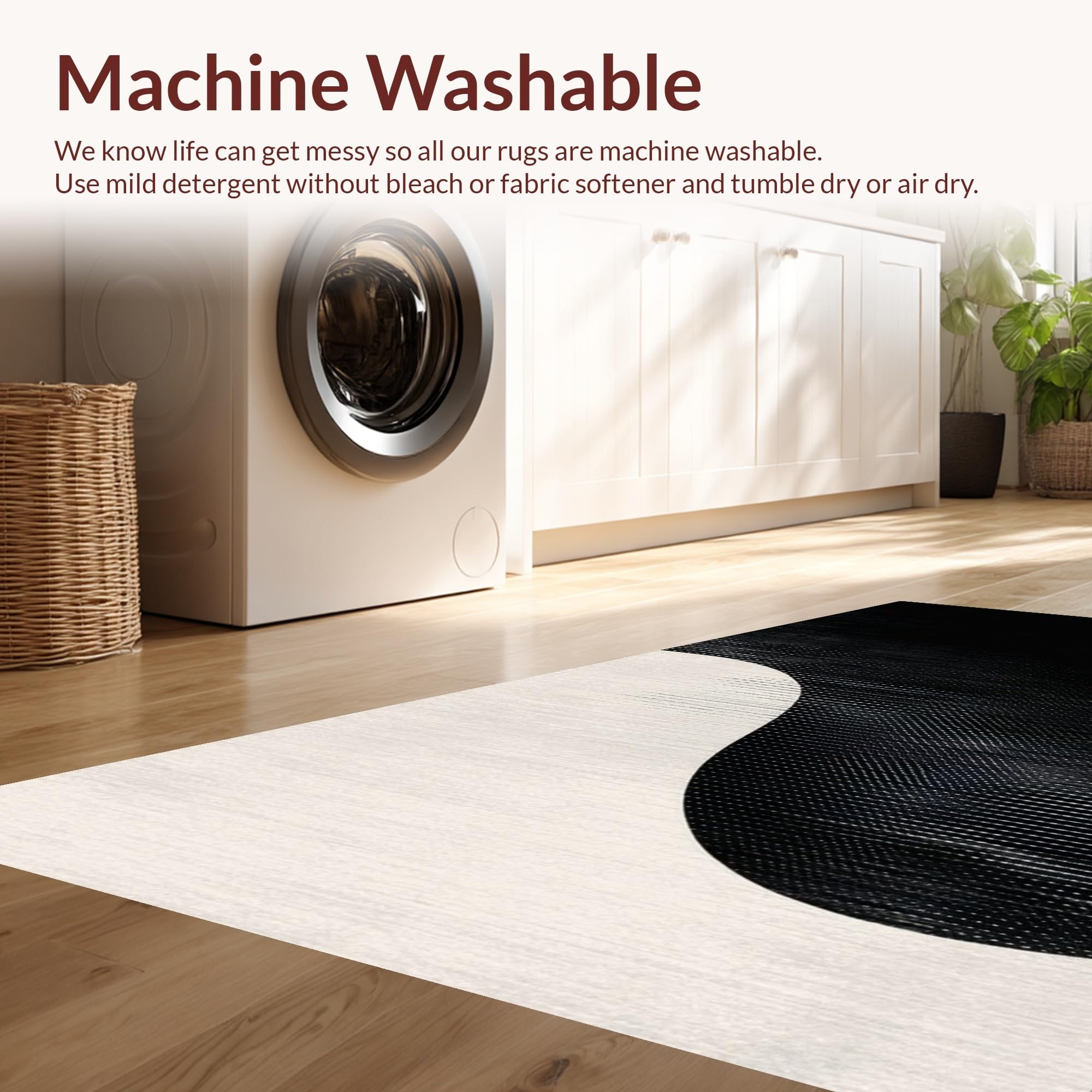 Ultra Soft Area Rug, Non Slip, Stain Resistant, Washable Area Rugs for Living Room, Bedroom, Refined Minimalist Curvilinear Artwork(Black) Overview: