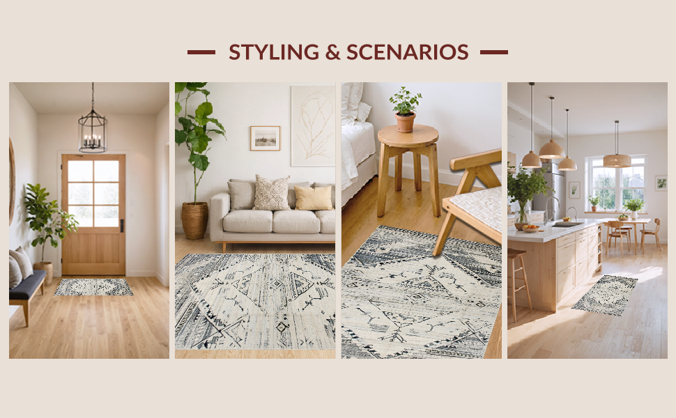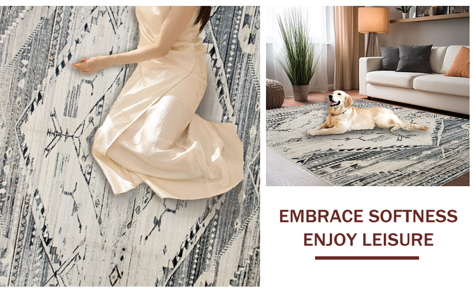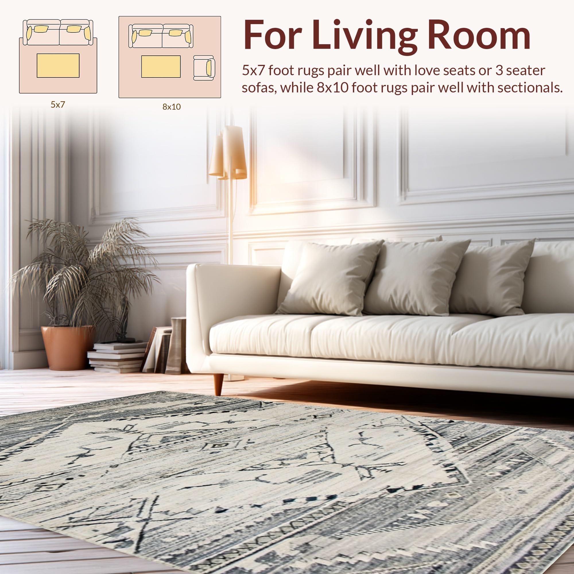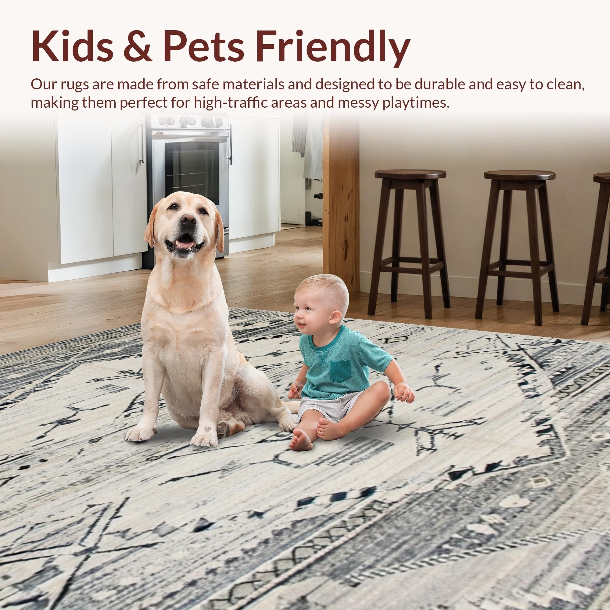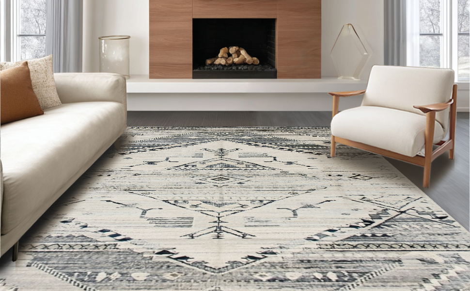 Ultra Soft Area Rug, Non Slip, Stain Resistant, Washable Area Rugs for Living Room, Bedroom, Refined Modern Symmetrical Patterns(Gray) Overview: