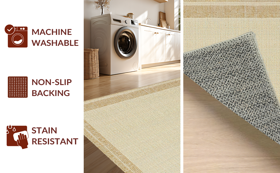 Ultra Soft Area Rug, Non Slip, Stain Resistant, Washable Area Rugs for Living Room, Bedroom, Refined Organic Monochrome Style(Beige) Overview: