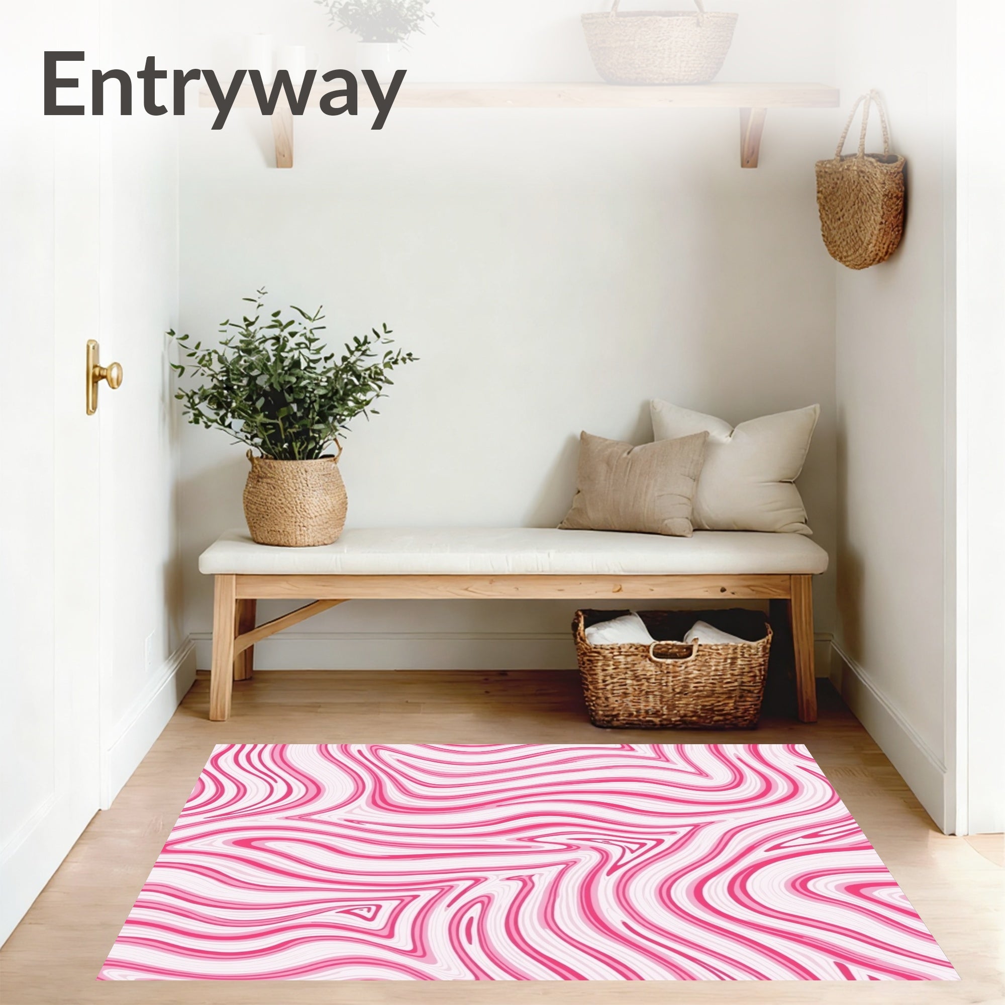 Ultra Soft Area Rug, Non Slip, Stain Resistant, Washable Area Rugs for Living Room, Bedroom, Refined Shearling Inspired Ripple Design with Subtle Feathered Edges and Flow(Pink) Overview: