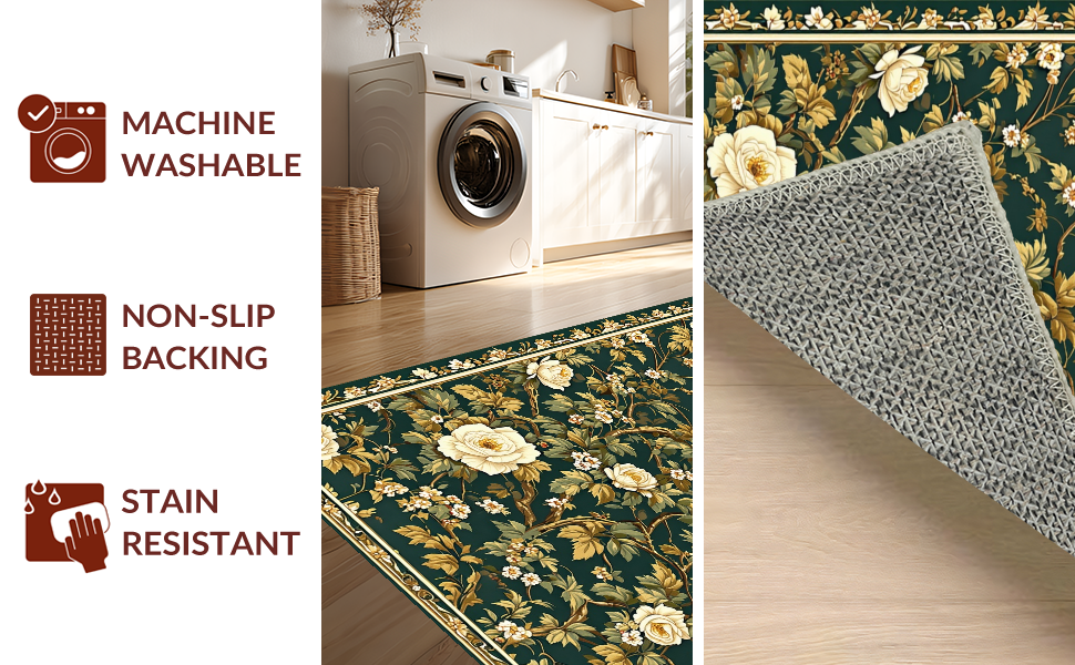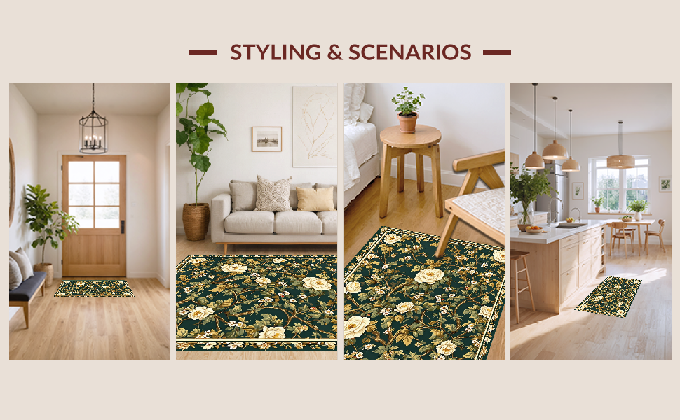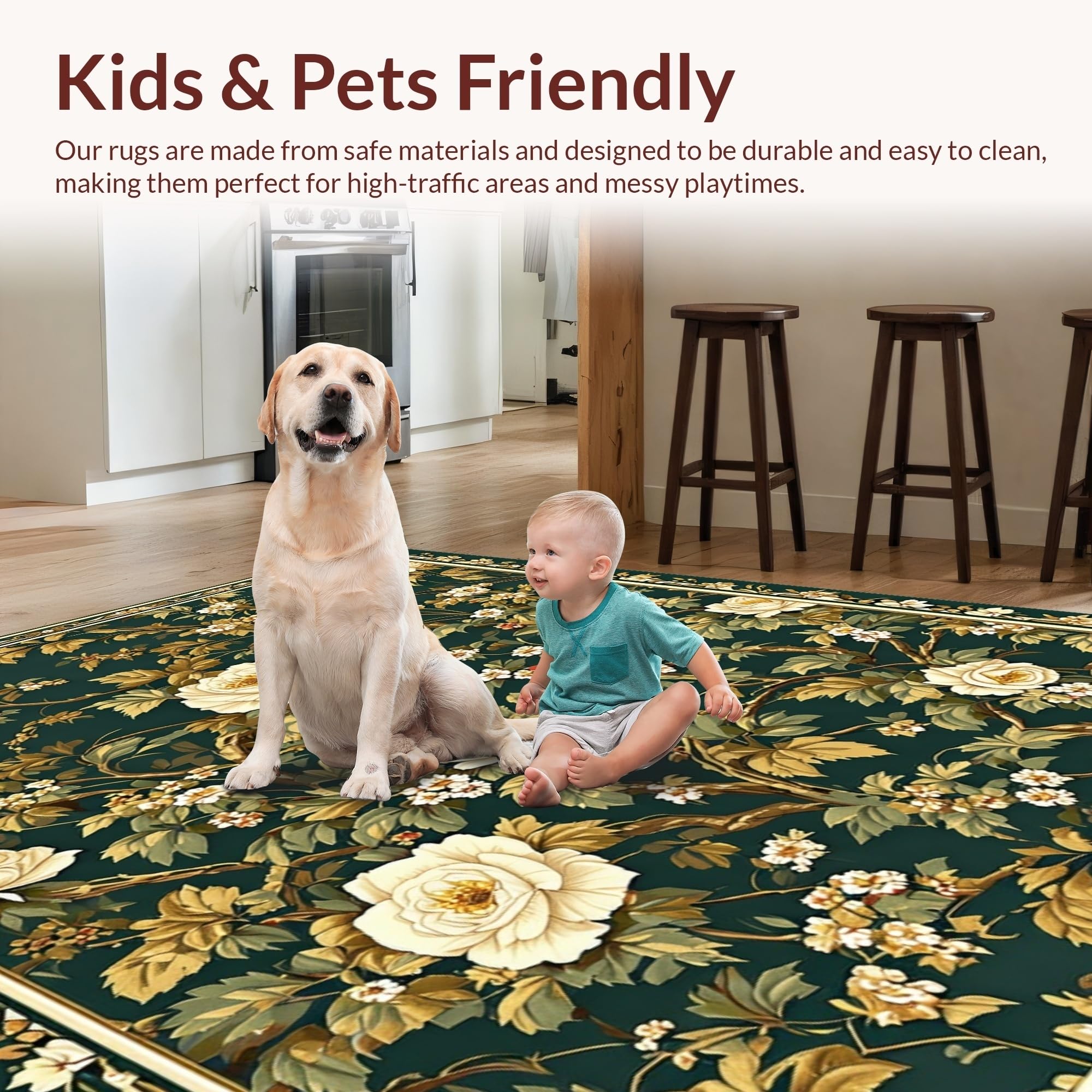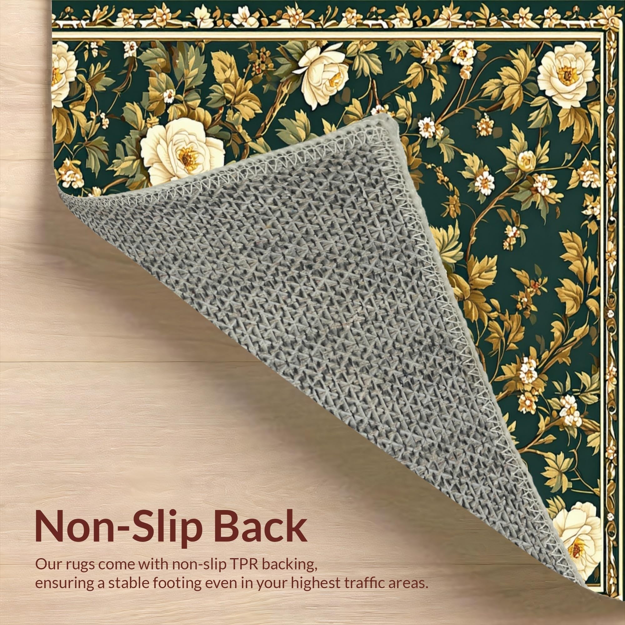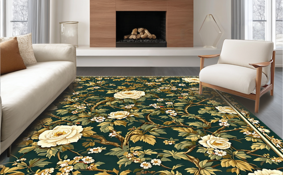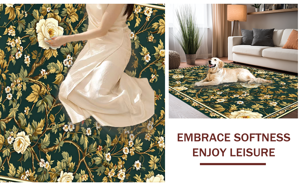 Ultra Soft Area Rug, Non Slip, Stain Resistant, Washable Area Rugs for Living Room, Bedroom, Refined Soft Green Nature Motif(Green) Overview: