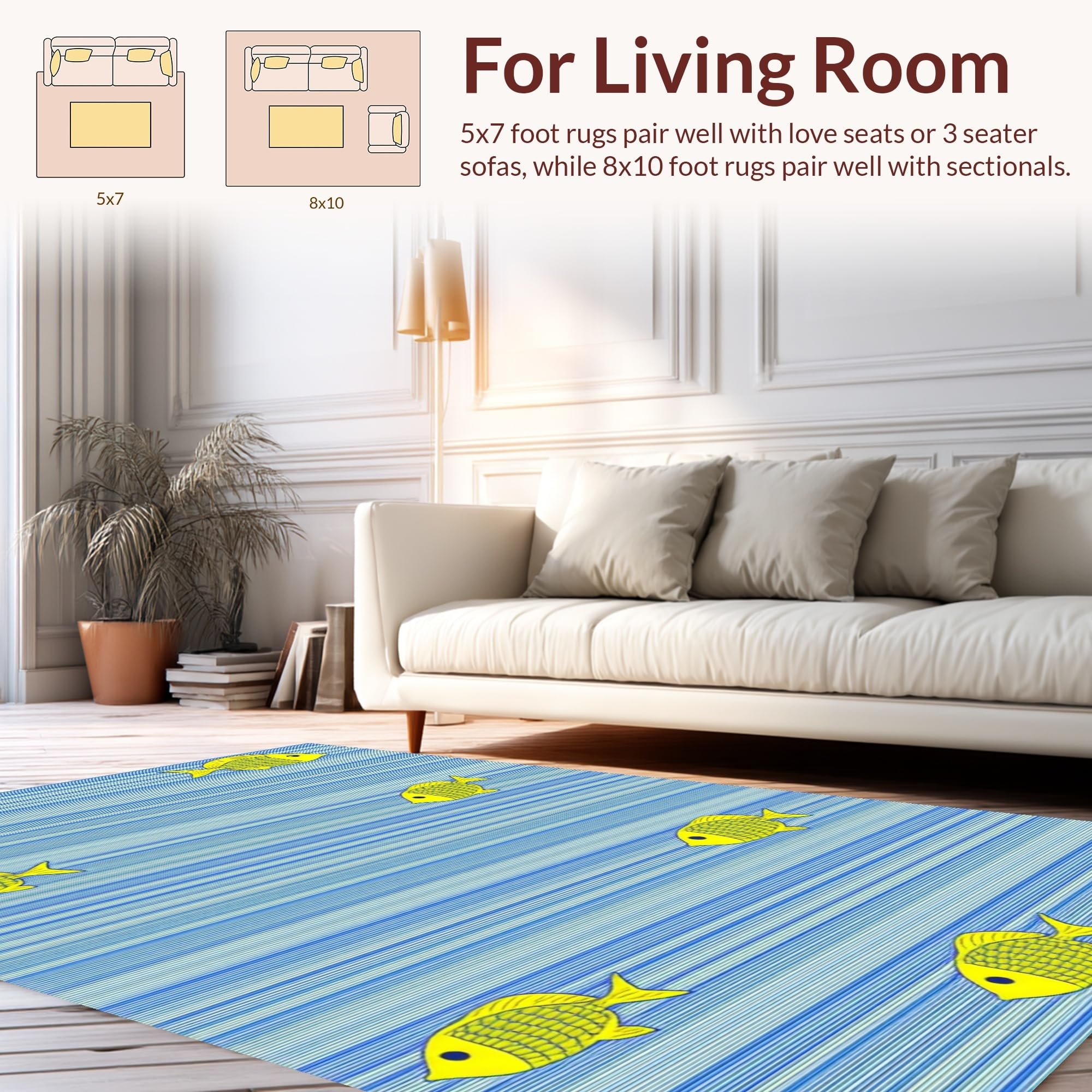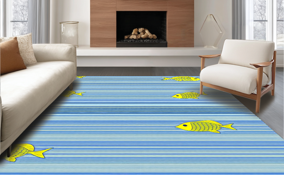 Ultra Soft Area Rug, Non Slip, Stain Resistant, Washable Area Rugs for Living Room, Bedroom, Refreshing Oceanic Inspired Plush Mat(Blue) Overview: