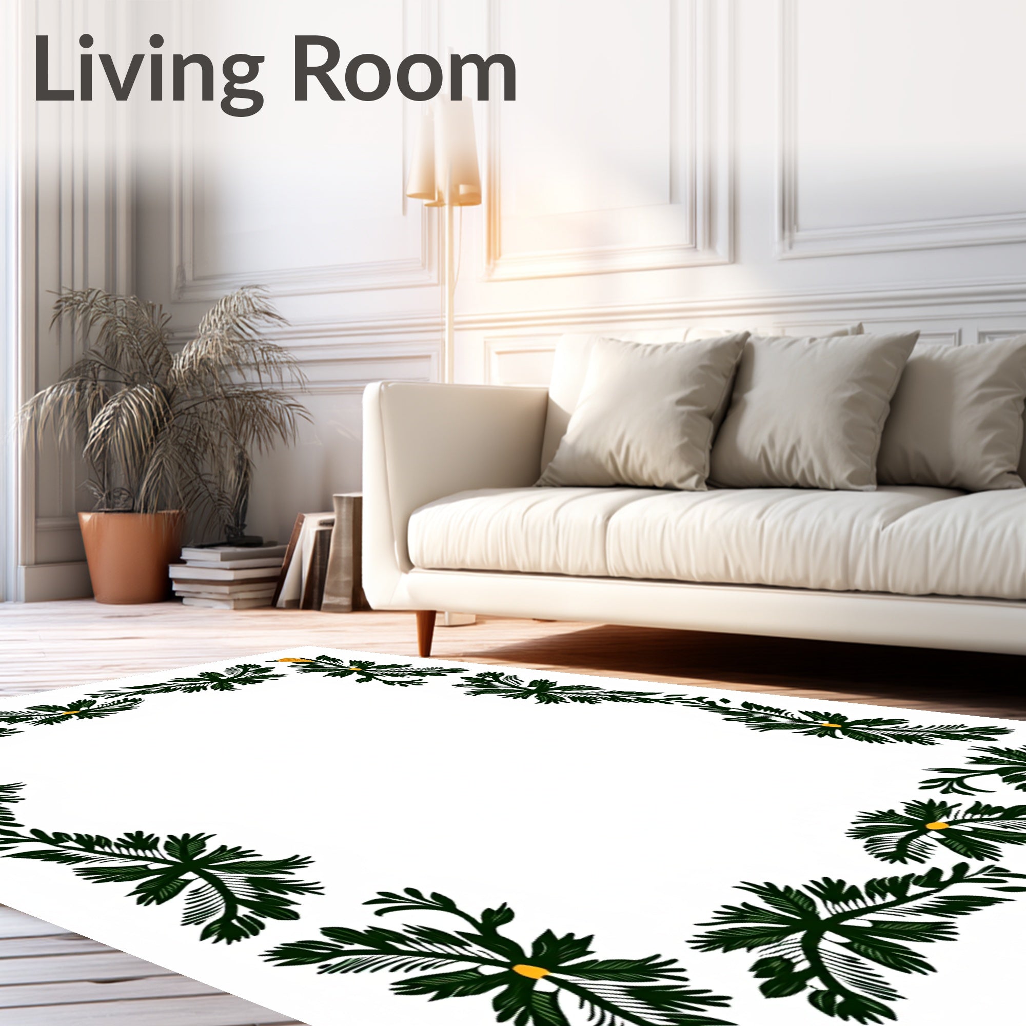 Ultra Soft Area Rug, Non Slip, Stain Resistant, Washable Area Rugs for Living Room, Bedroom, Reindeer Antler Motif Holiday Winter Celebration(Green) Overview: