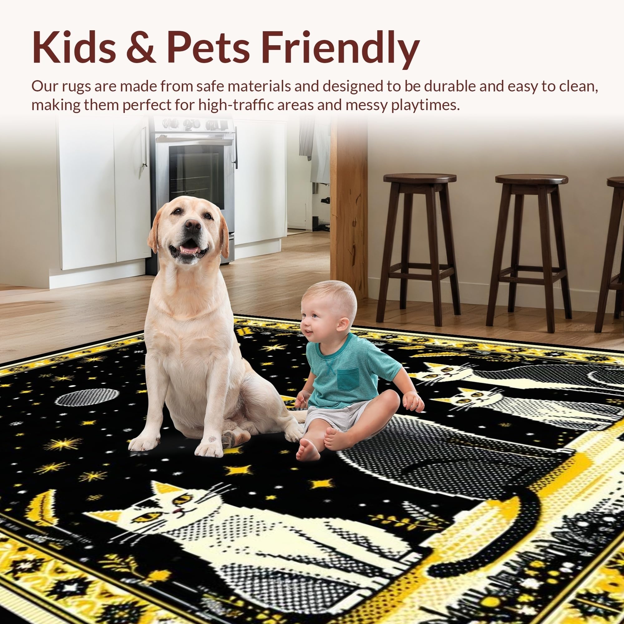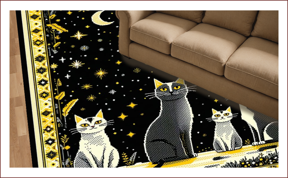 Ultra Soft Area Rug, Non Slip, Stain Resistant, Washable Area Rugs for Living Room, Bedroom, Retro Abstract Zodiac Illustration(Black) Overview: