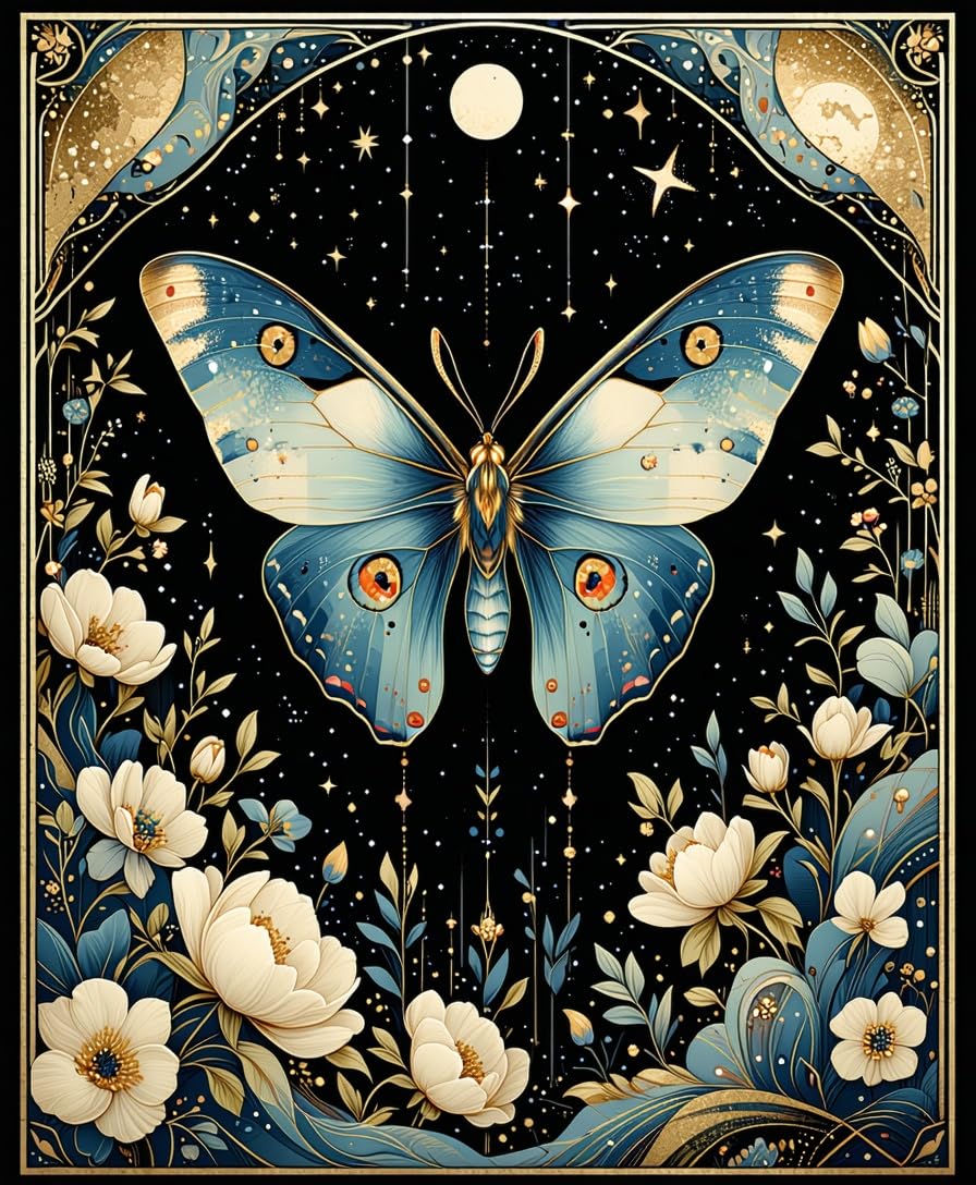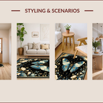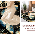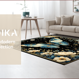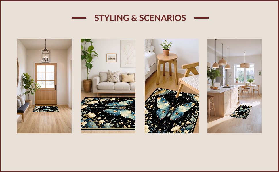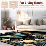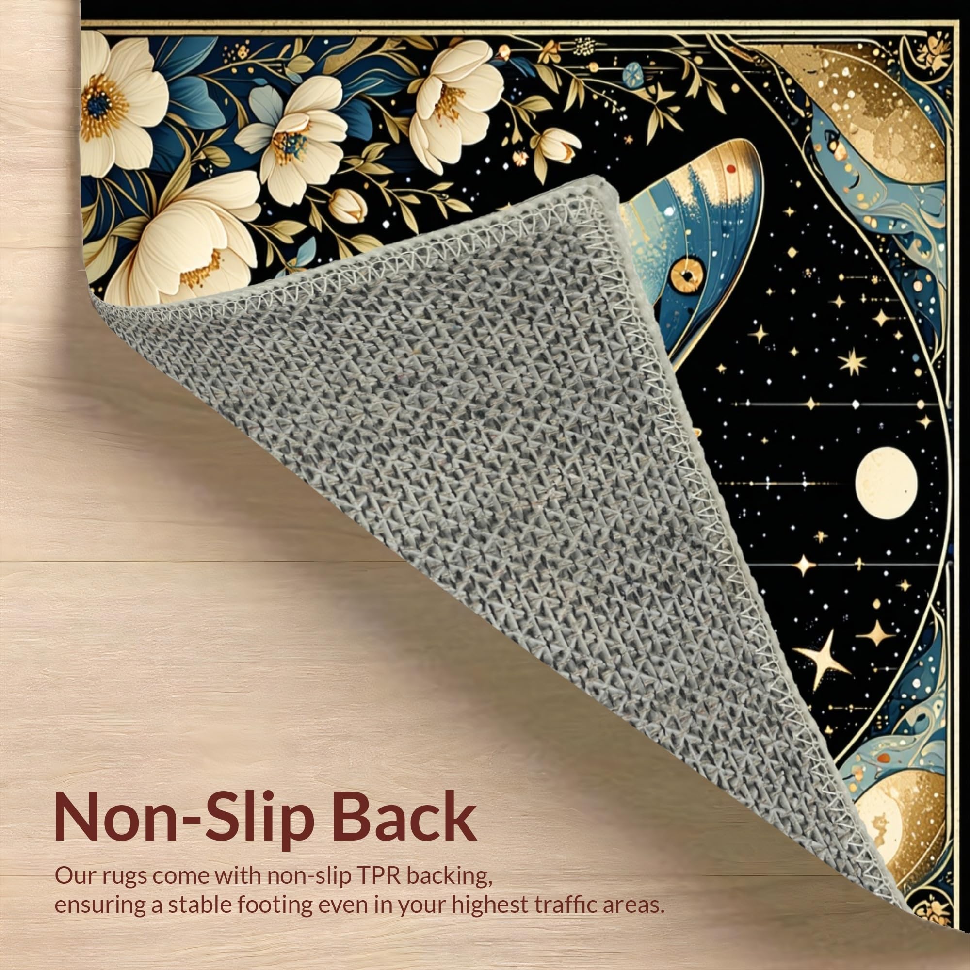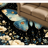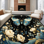 Ultra Soft Area Rug, Non Slip, Stain Resistant, Washable Area Rugs for Living Room, Bedroom, Retro Black Luna Moth Design(Blue) Overview:
