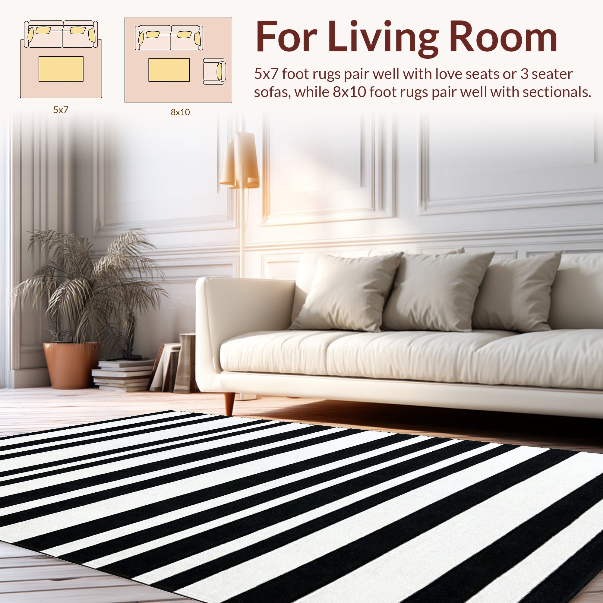 Ultra Soft Area Rug, Non Slip, Stain Resistant, Washable Area Rugs for Living Room, Bedroom, Retro Black & White Striped Rug: Modern Geometric Area Rug(Black) Overview: