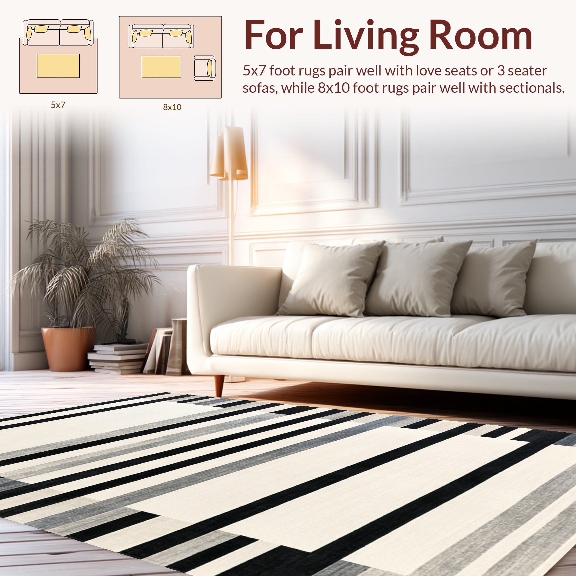 Ultra Soft Area Rug, Non Slip, Stain Resistant, Washable Area Rugs for Living Room, Bedroom, Retro Contrast Woven Floor Covering with Minimalist Linear Pattern(Beige) Overview:
