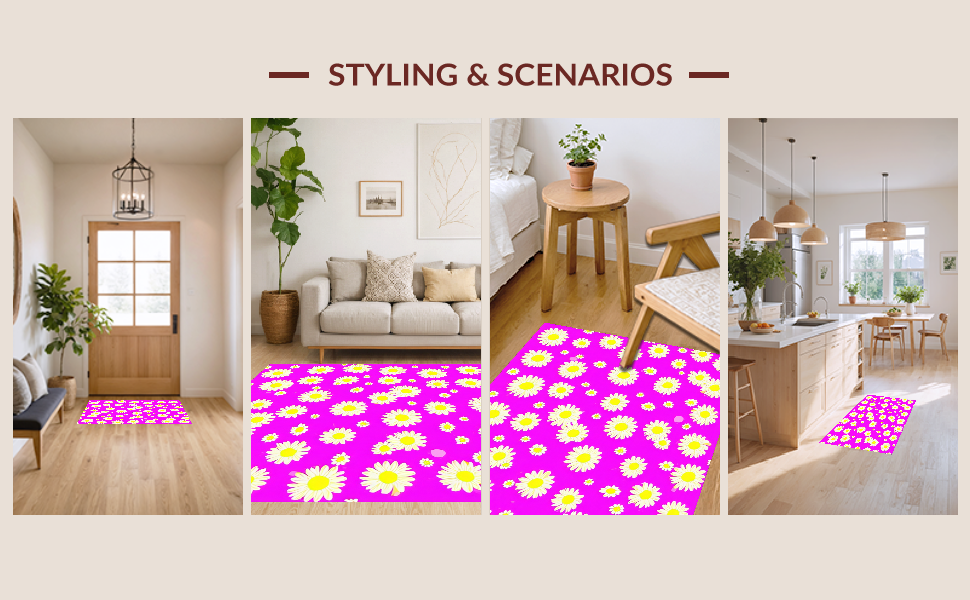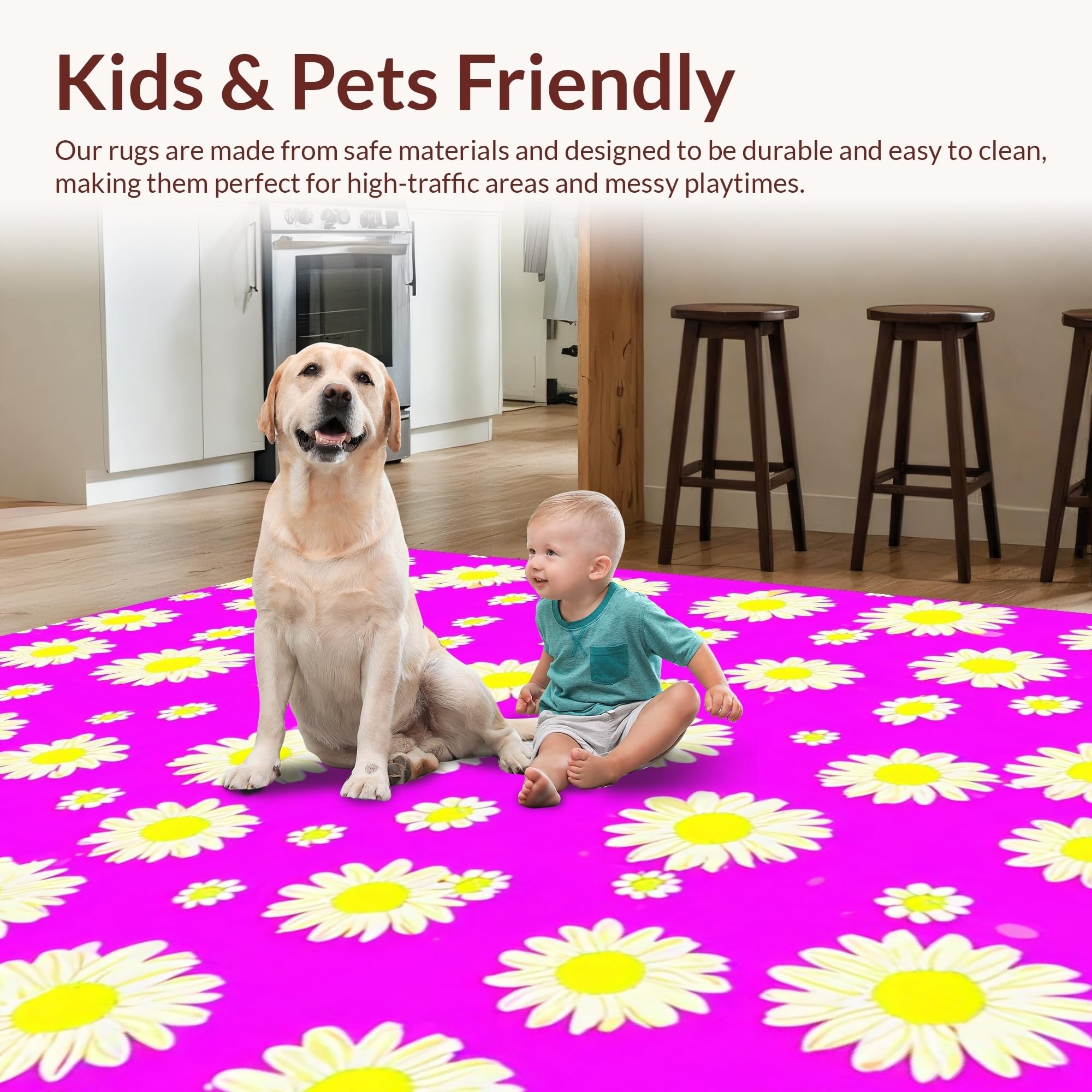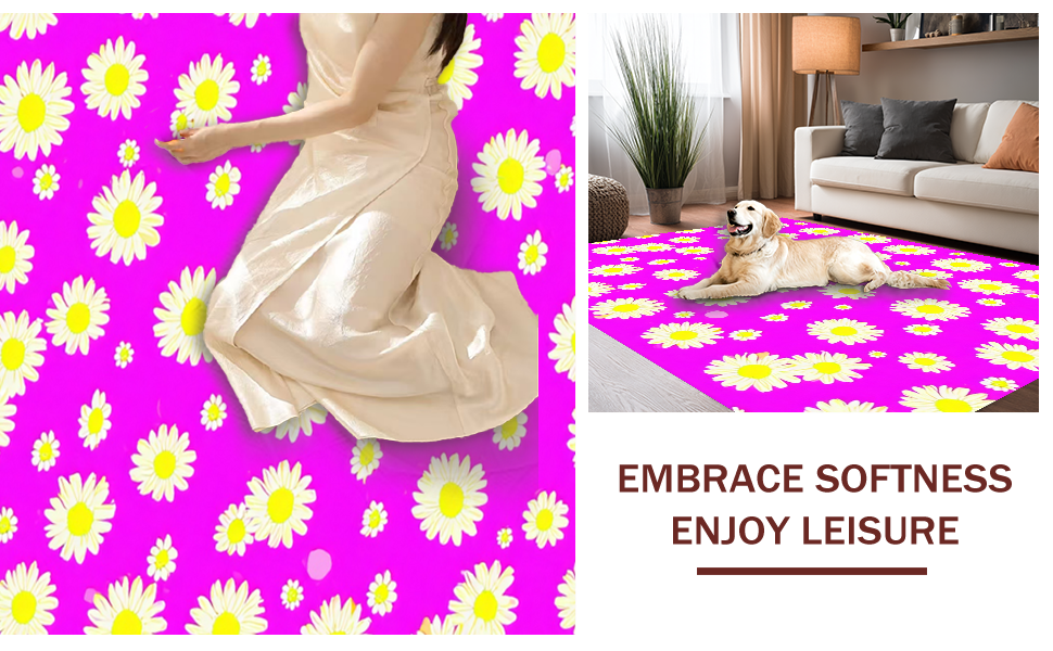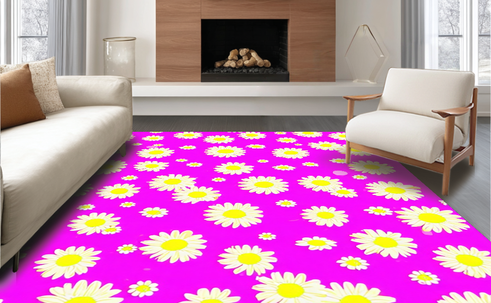 Ultra Soft Area Rug, Non Slip, Stain Resistant, Washable Area Rugs for Living Room, Bedroom, Retro Floral Dreamy Aesthetic(Pink) Overview: