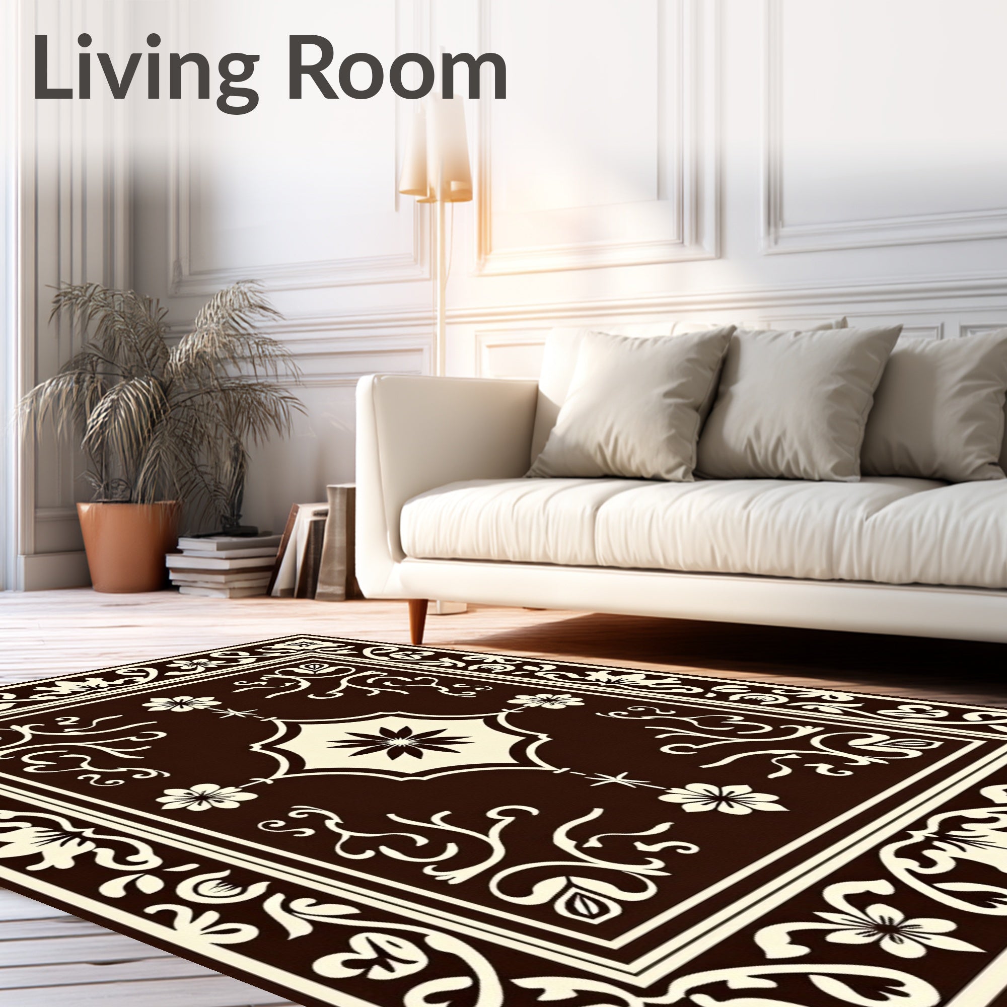 Flatwoven High Traffic Area Rug, Retro Floral Lattice with Faded Motif Highlights, Non Slip, Stain Resistant, Washable Area Rugs for Living Room, Bedroom (Brown) Overview:
