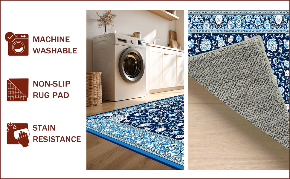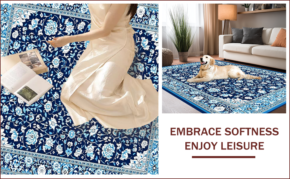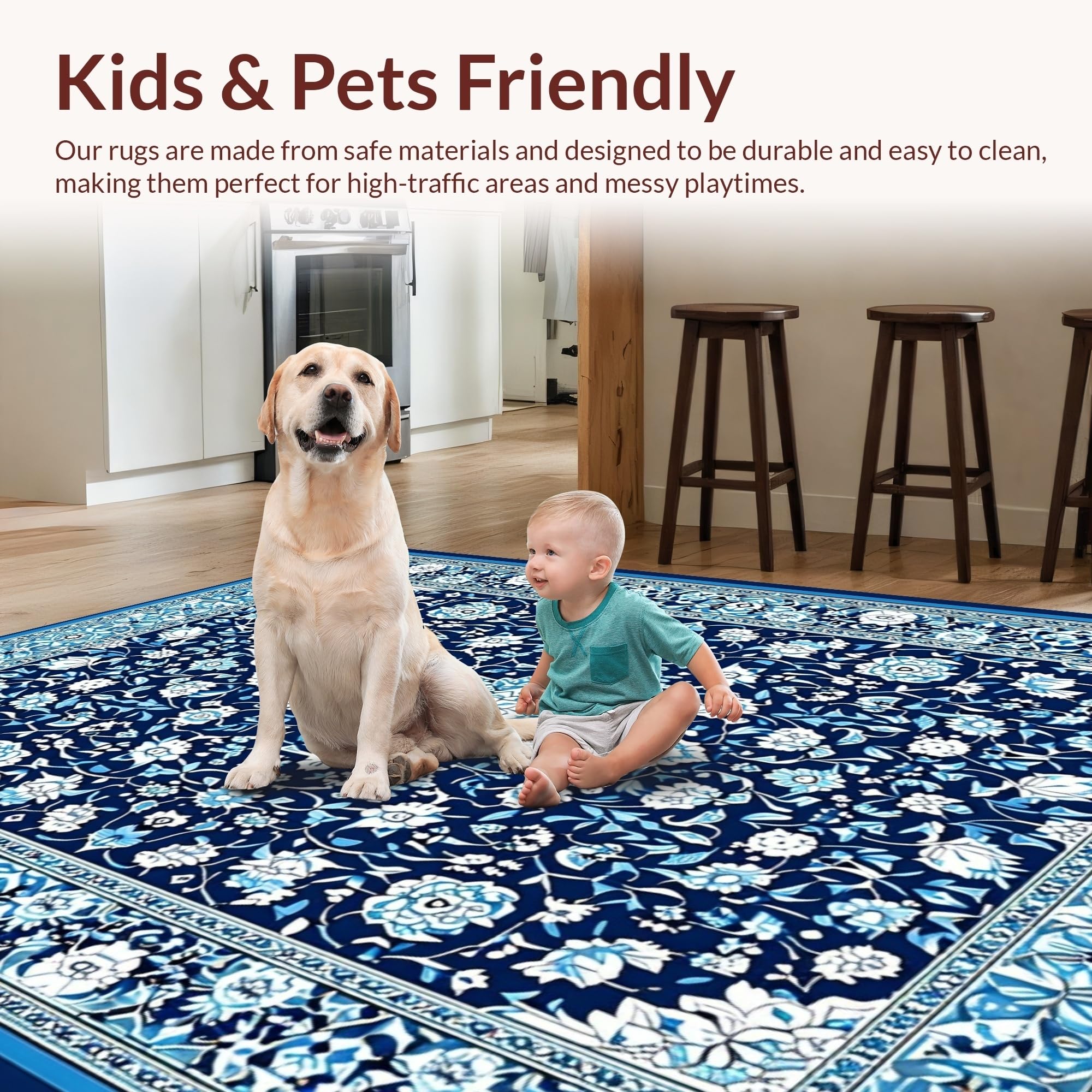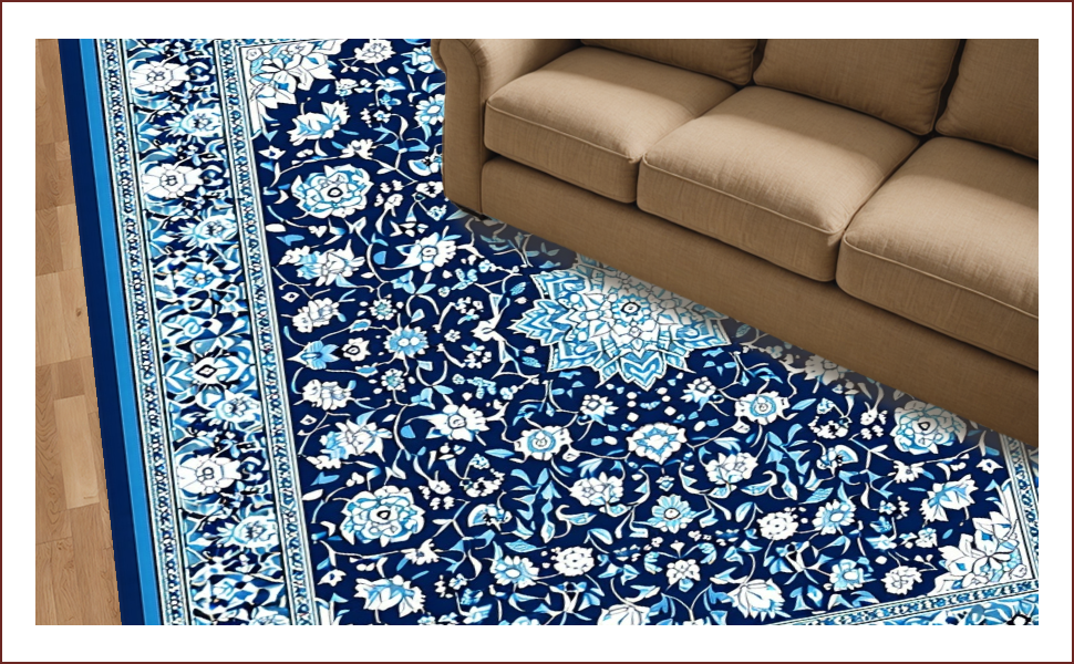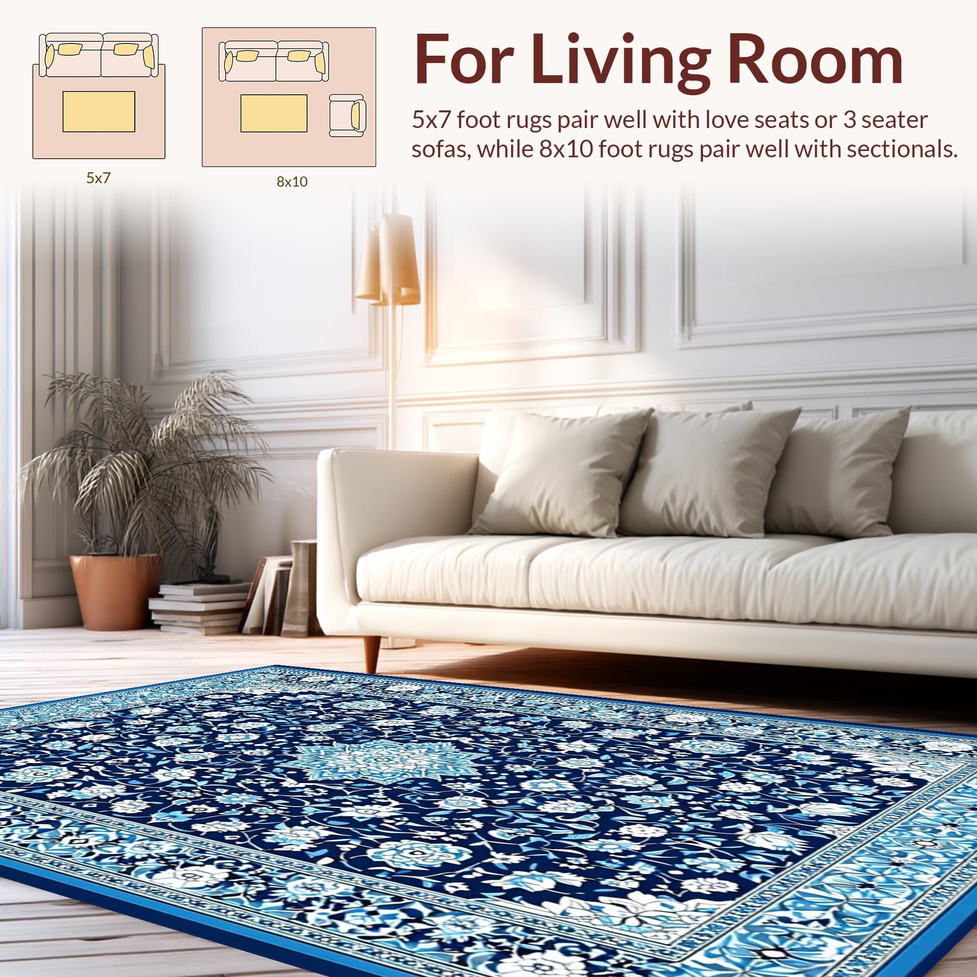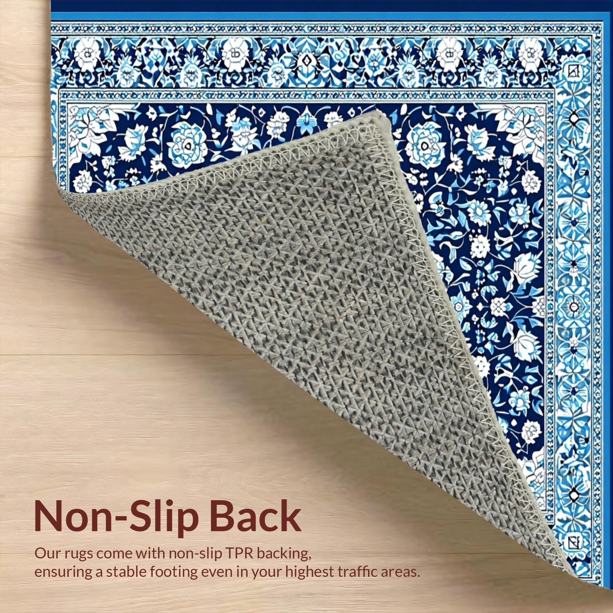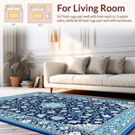 Ultra Soft Area Rug, Non Slip, Stain Resistant, Washable Area Rugs for Living Room, Bedroom, Retro Floral Print Elegance(Blue) Overview: