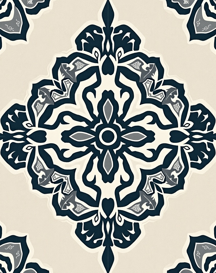 Retro Lattice Medallion with Stylized Interlocking Lines(Beige)