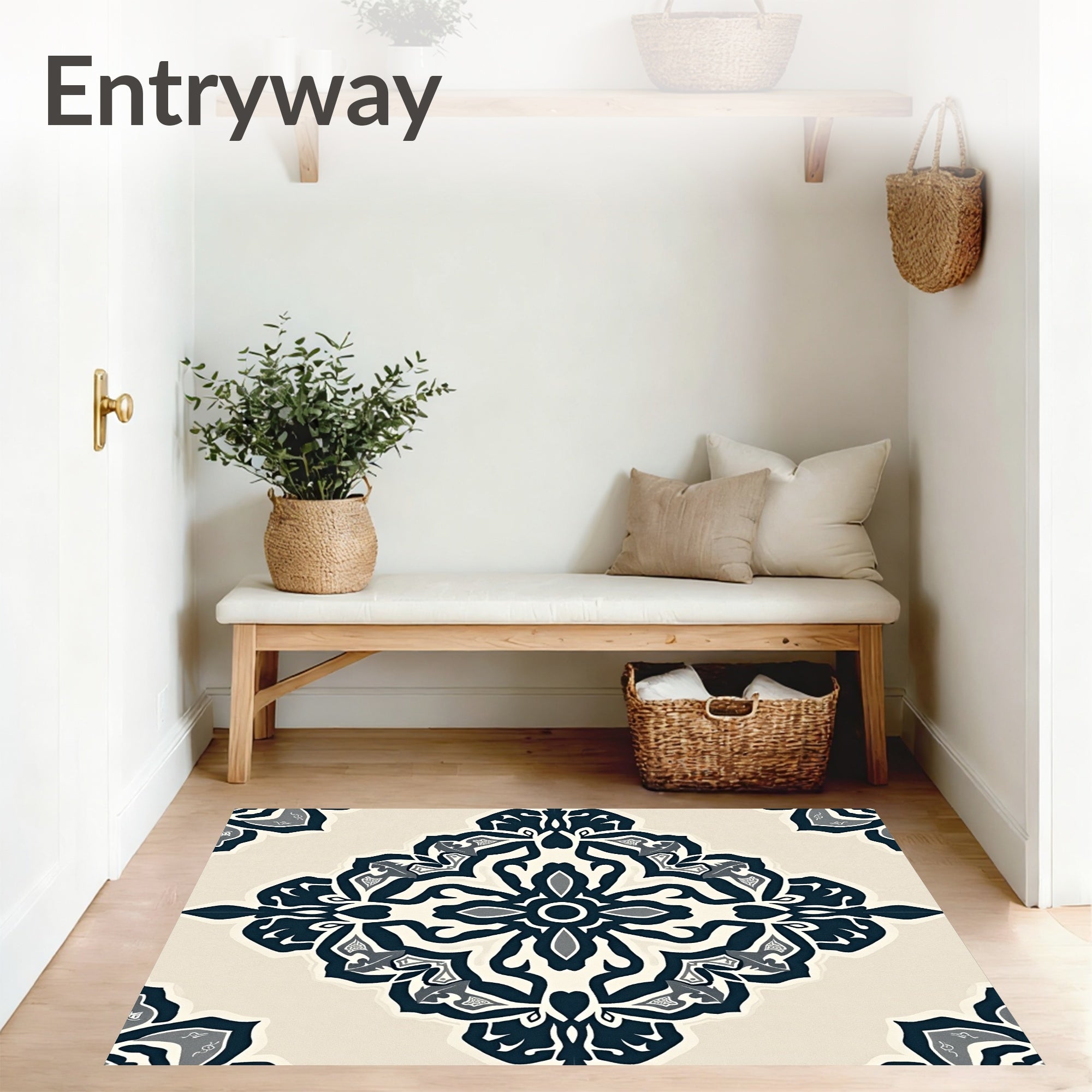 Ultra Soft Area Rug, Non Slip, Stain Resistant, Washable Area Rugs for Living Room, Bedroom, Retro Lattice Medallion with Stylized Interlocking Lines(Beige) Overview: