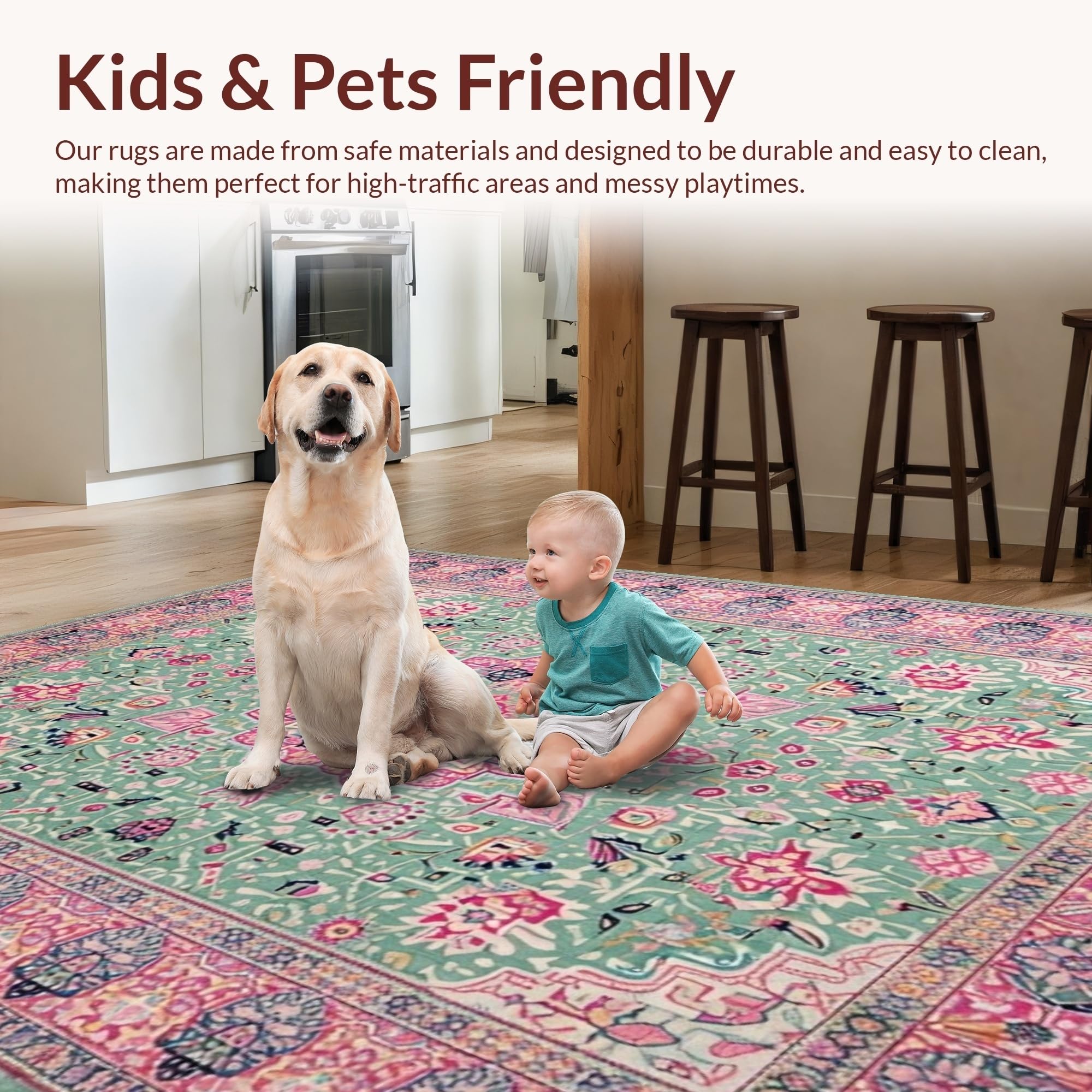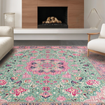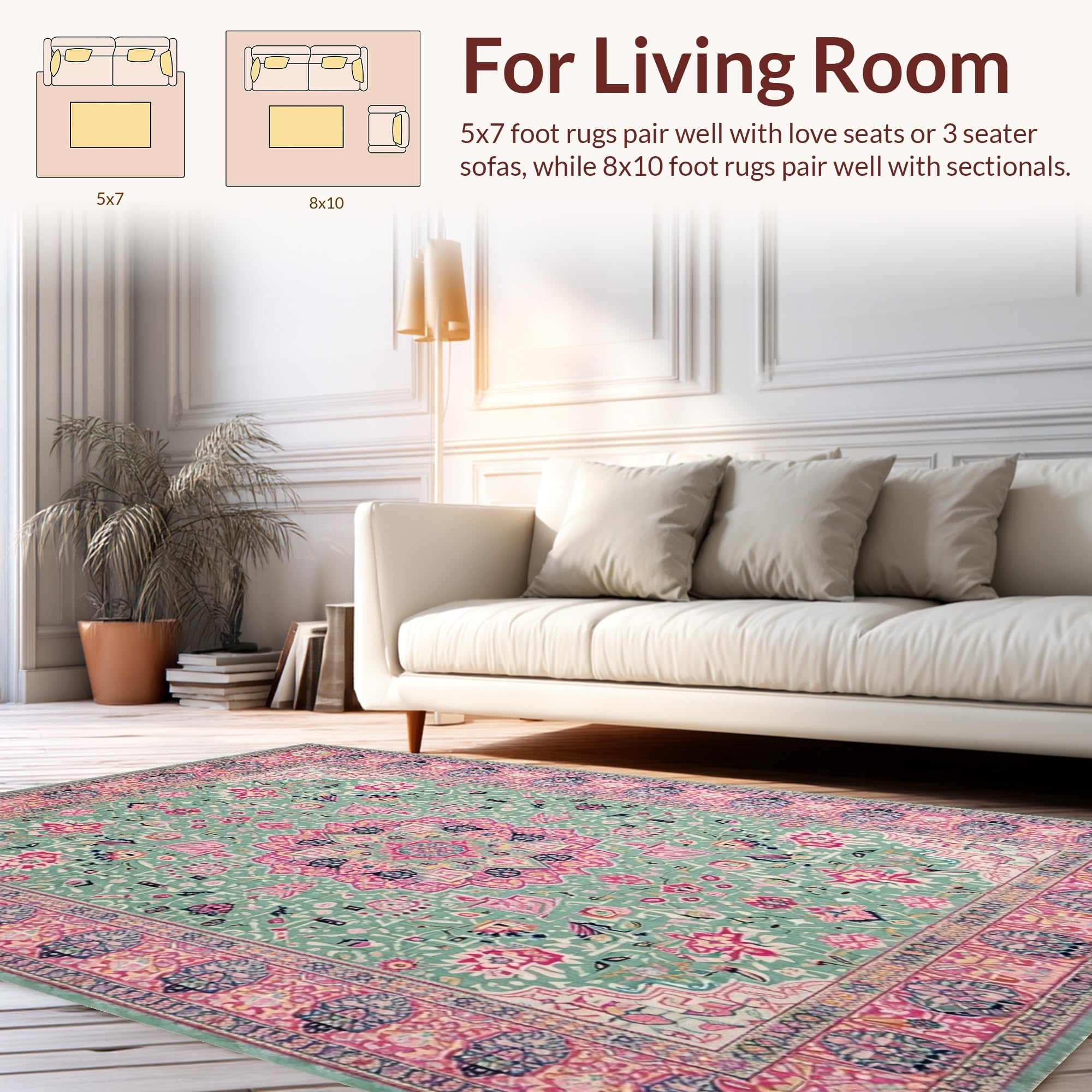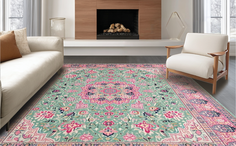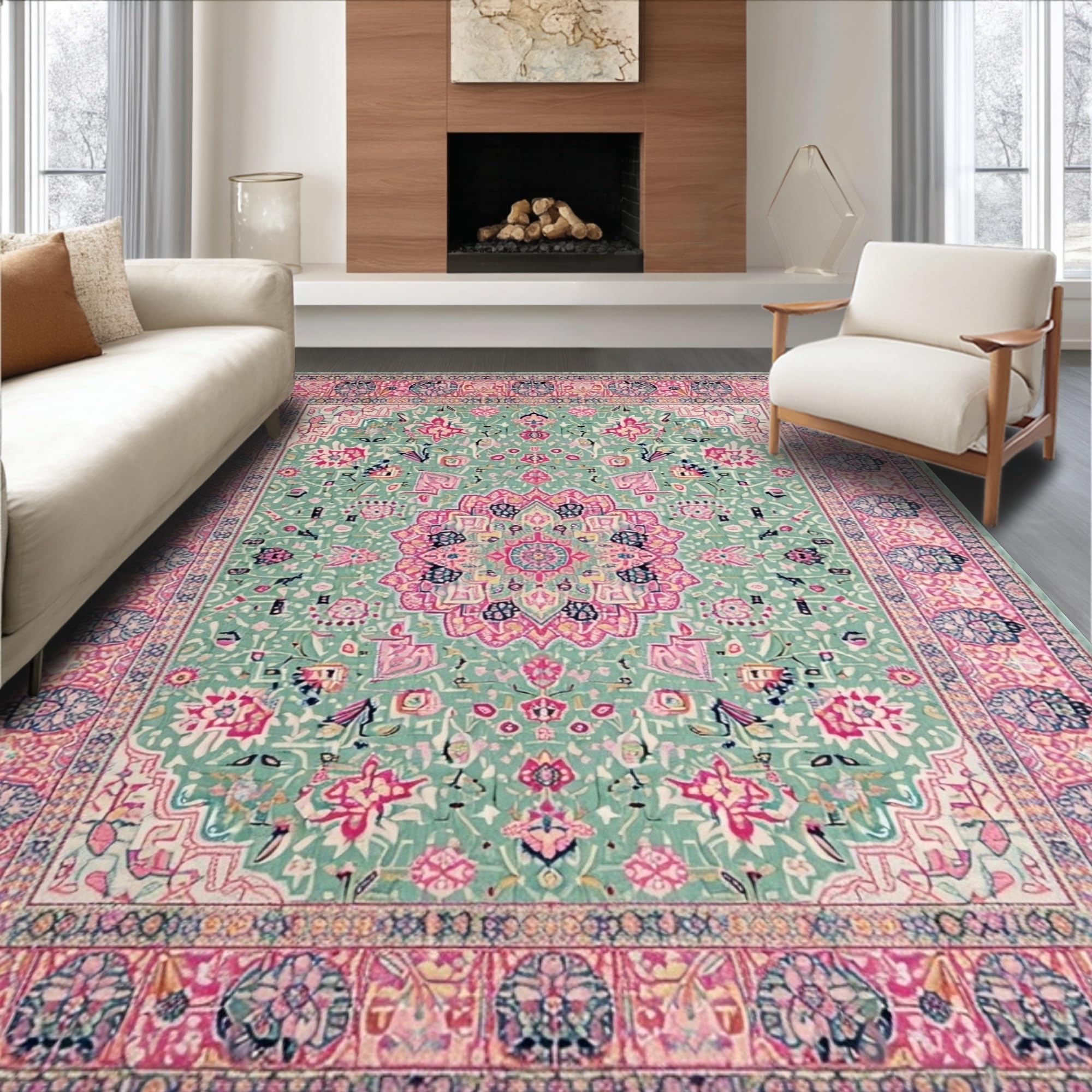 Ultra Soft Area Rug, Non Slip, Stain Resistant, Washable Area Rugs for Living Room, Bedroom, Retro Medallion Sage Aesthetic(Green) Overview: