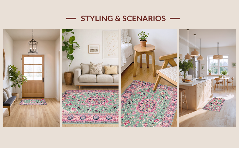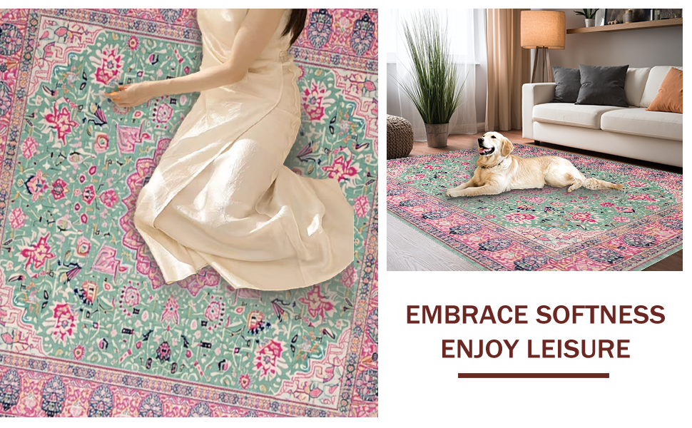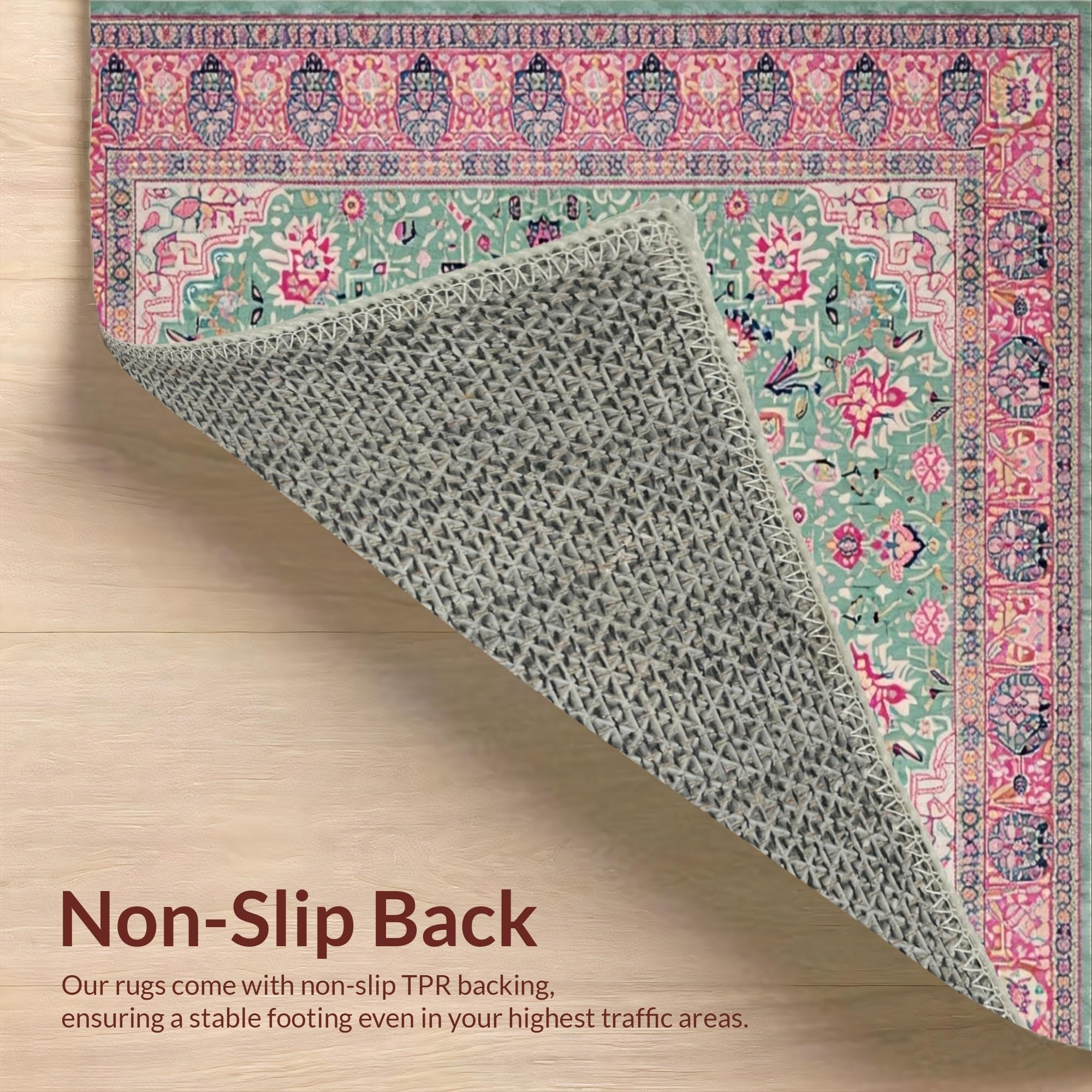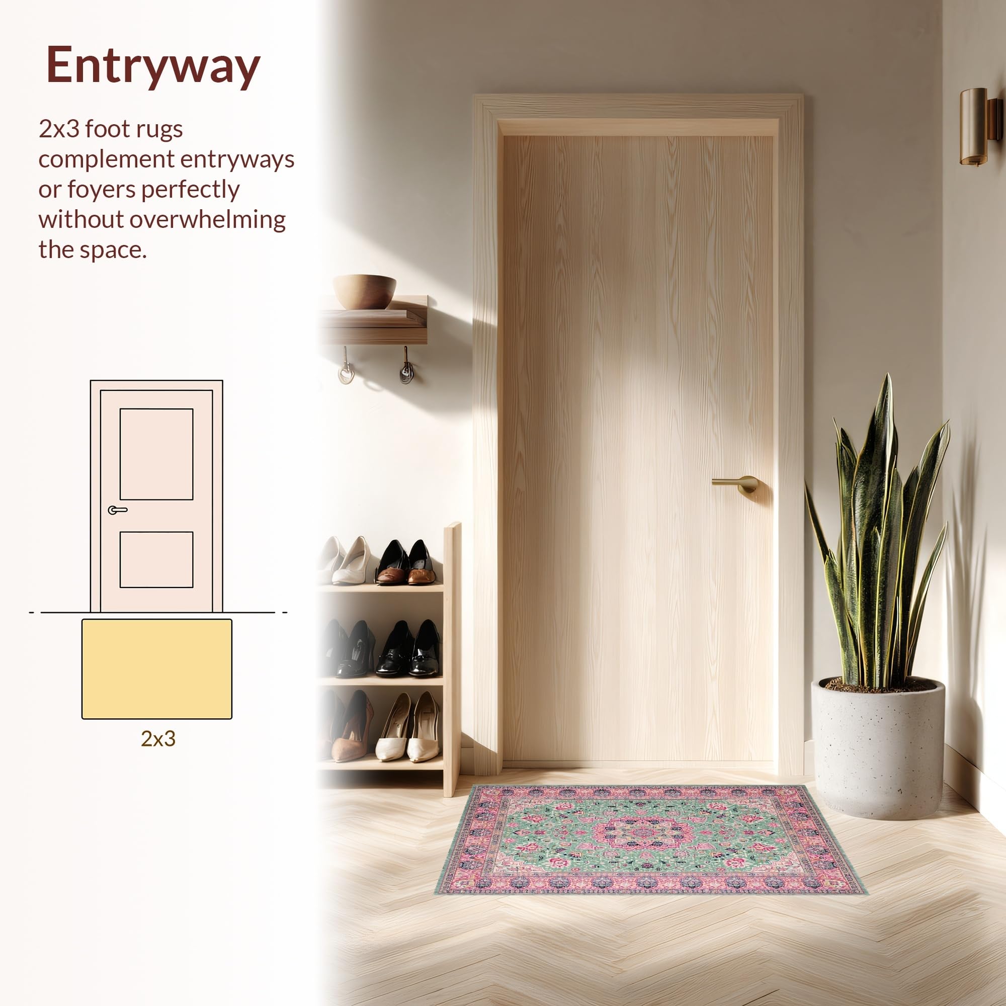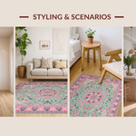 Ultra Soft Area Rug, Non Slip, Stain Resistant, Washable Area Rugs for Living Room, Bedroom, Retro Medallion Sage Aesthetic(Green) Overview: