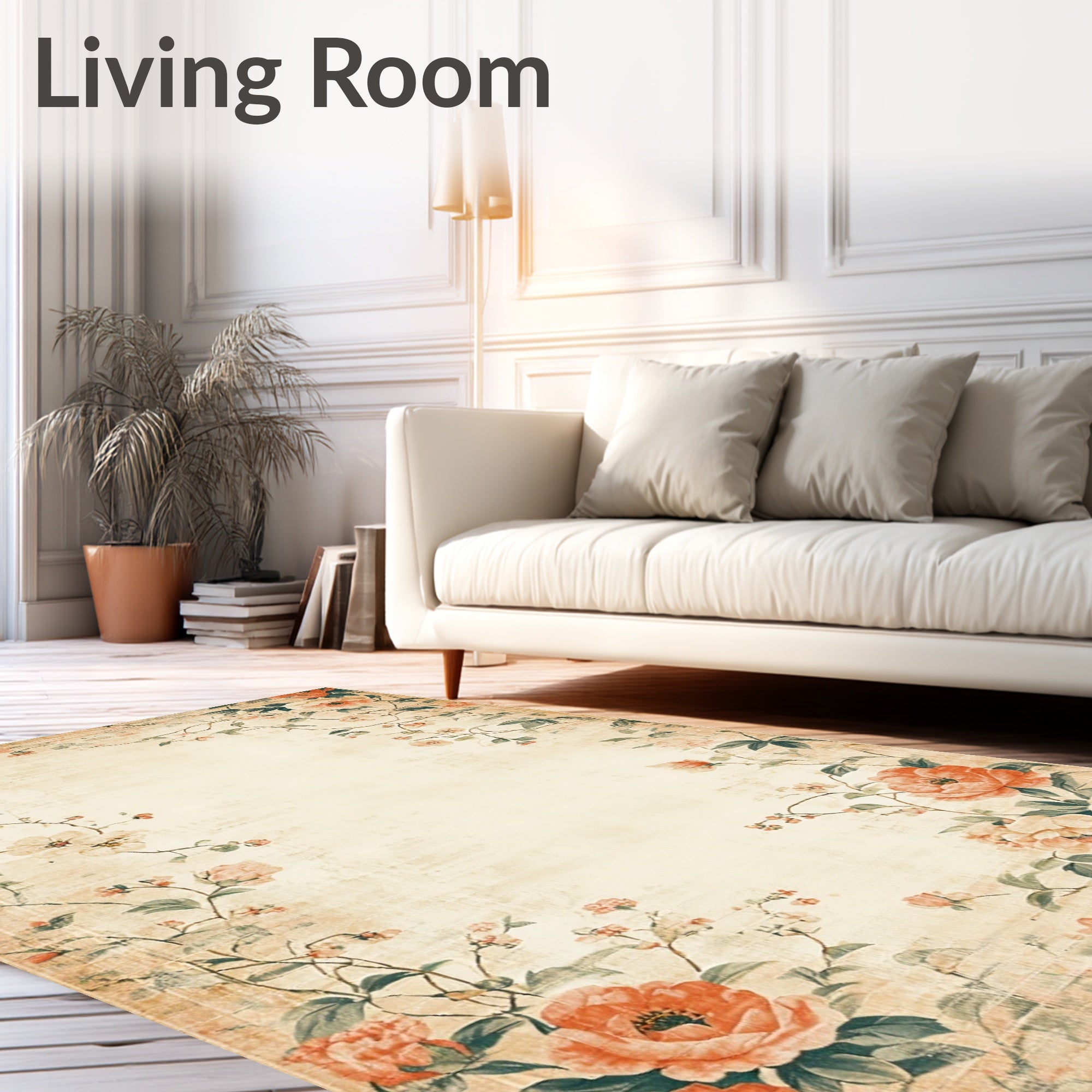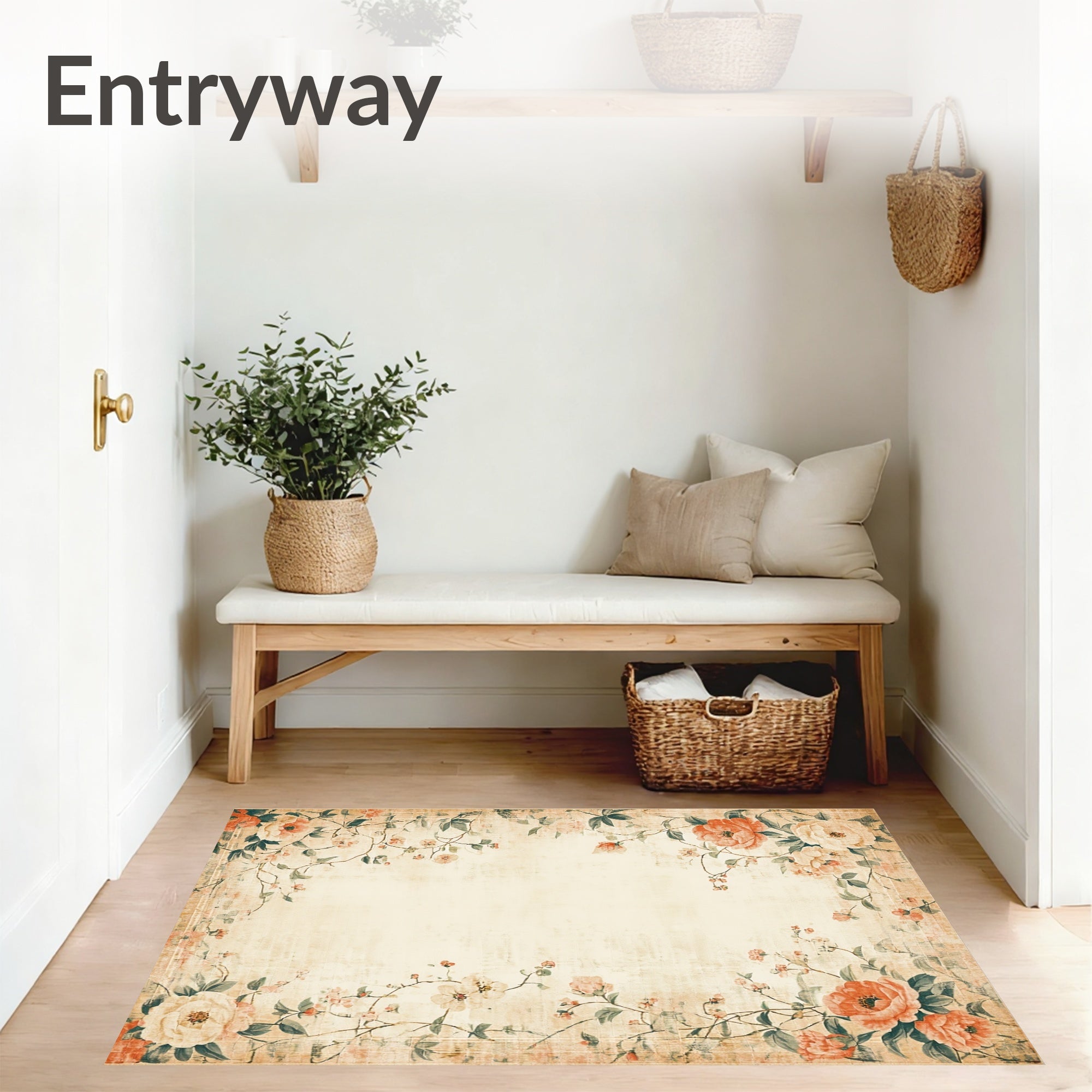 Ultra Soft Area Rug, Non Slip, Stain Resistant, Washable Area Rugs for Living Room, Bedroom, Retro Nostalgic Floral Beige Area Classic Accent(Beige) Overview: