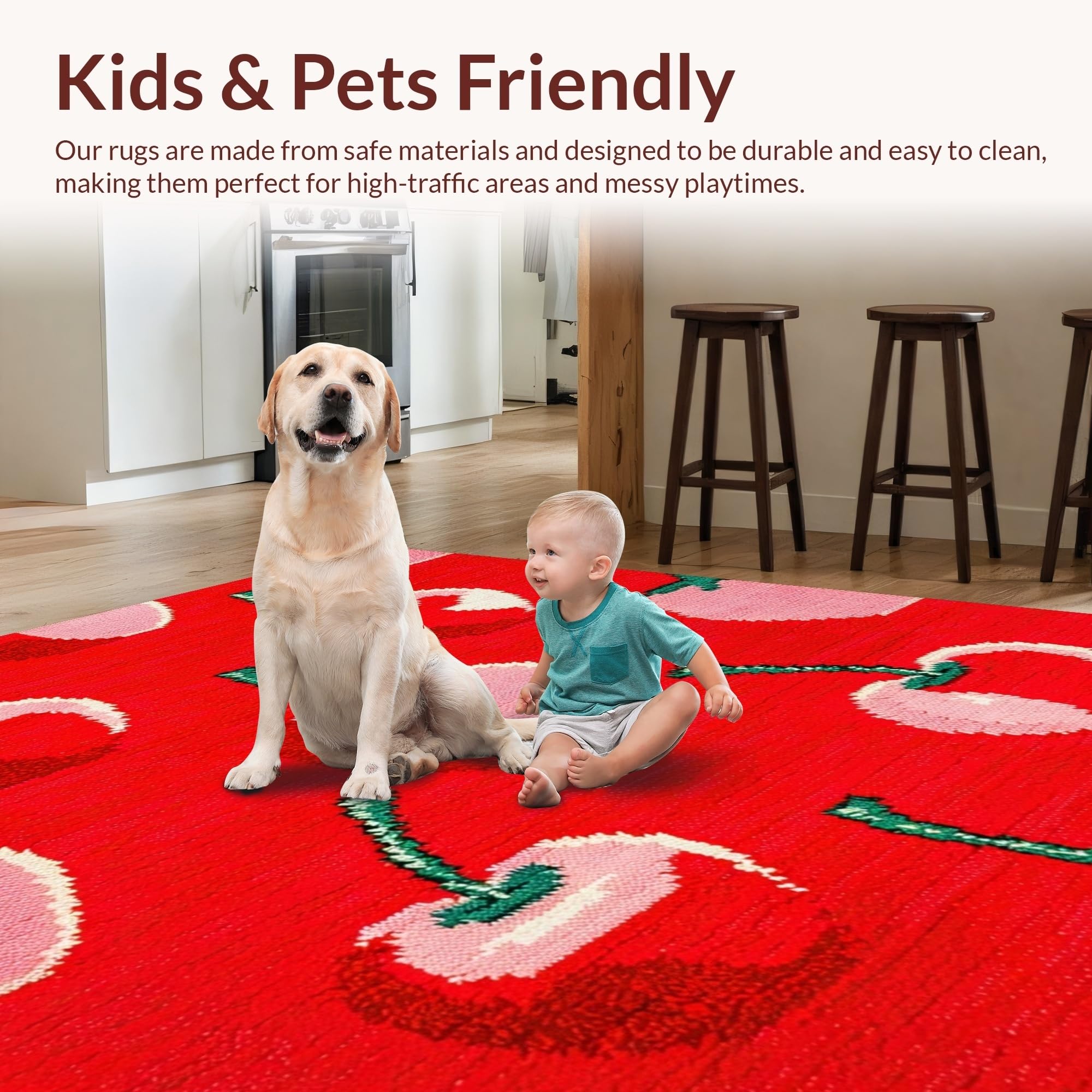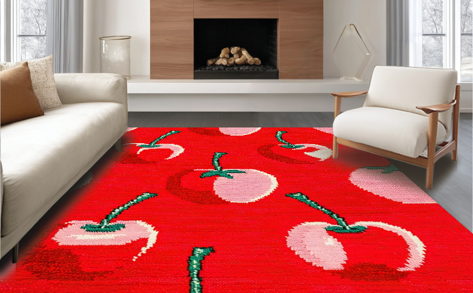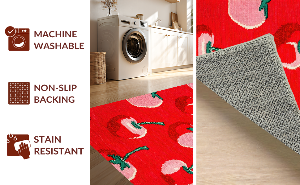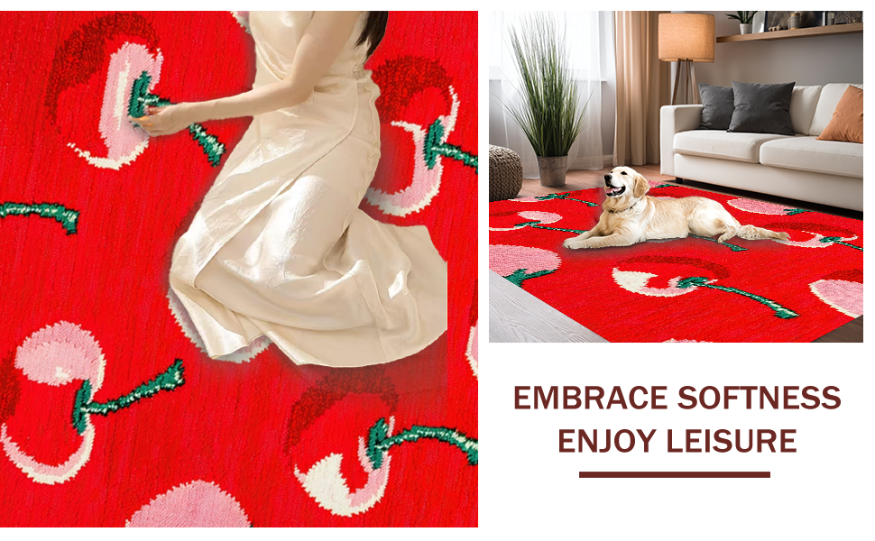 Ultra Soft Area Rug, Non Slip, Stain Resistant, Washable Area Rugs for Living Room, Bedroom, Retro Playful Cherry Aesthetic(Red) Overview: