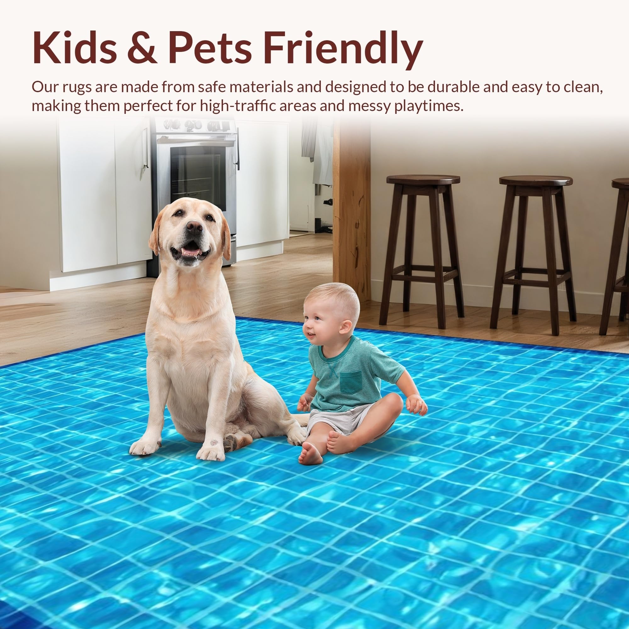 Ultra Soft Area Rug, Non Slip, Stain Resistant, Washable Area Rugs for Living Room, Bedroom, Retro Sporty Abstract Art(Blue) Overview: