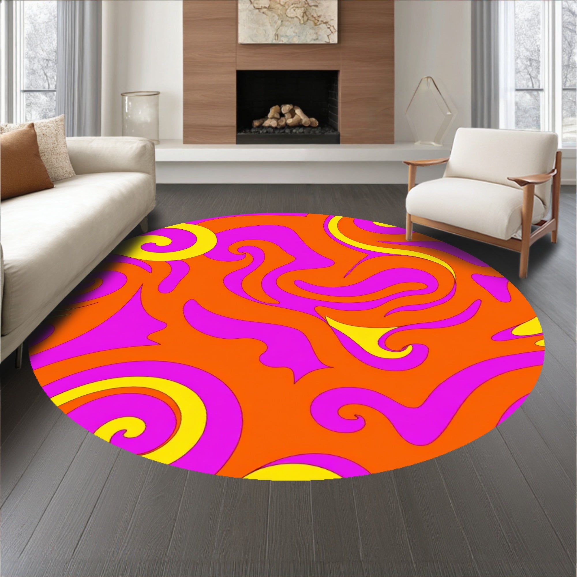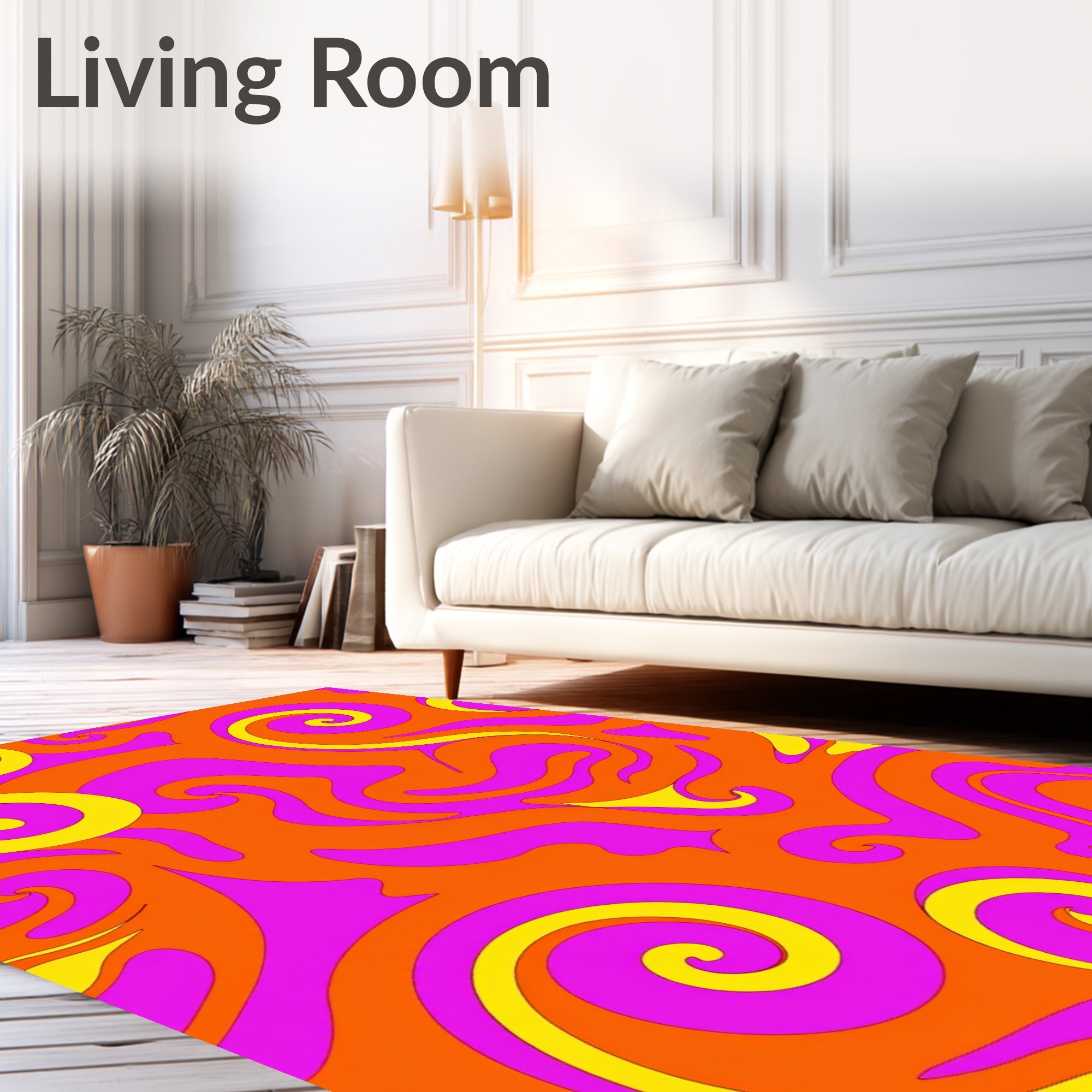 Ultra Soft Area Rug, Non Slip, Stain Resistant, Washable Area Rugs for Living Room, Bedroom, Retro Swirl Design Featuring Interlocking Abstract Motifs(Orange) Overview: