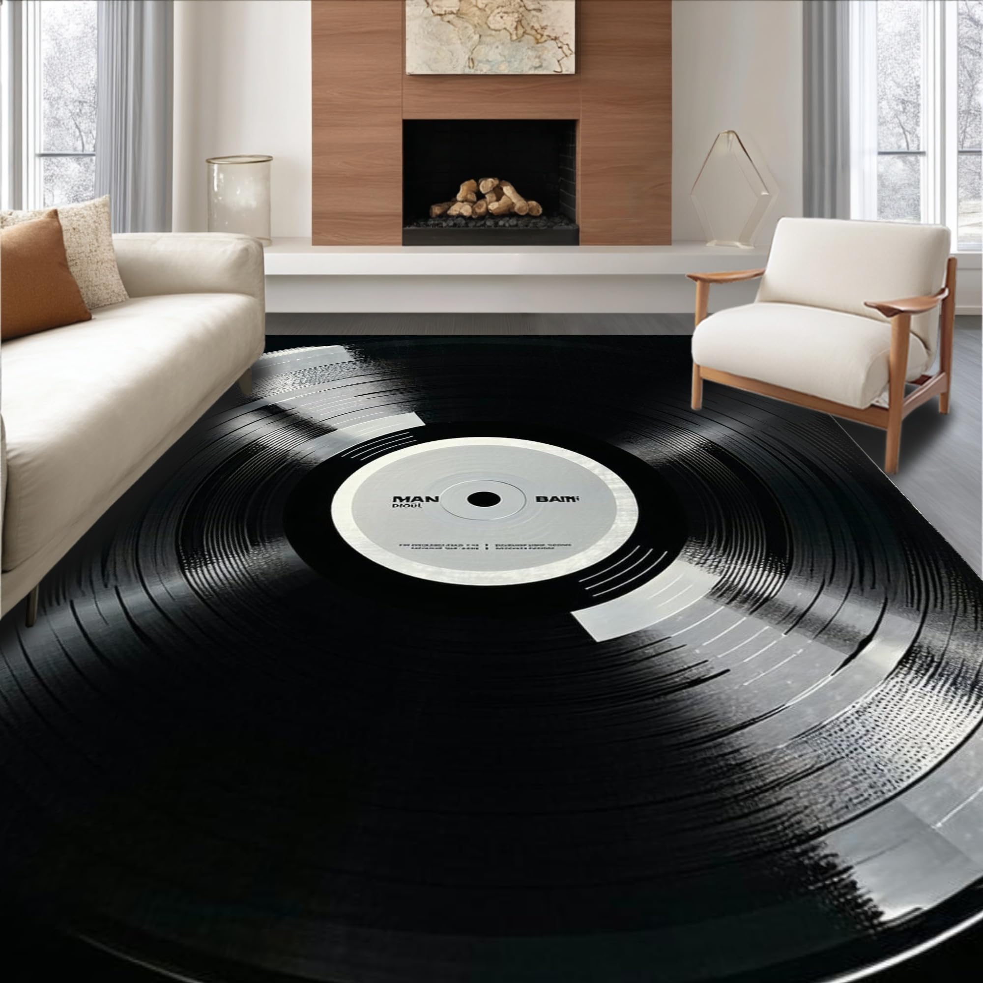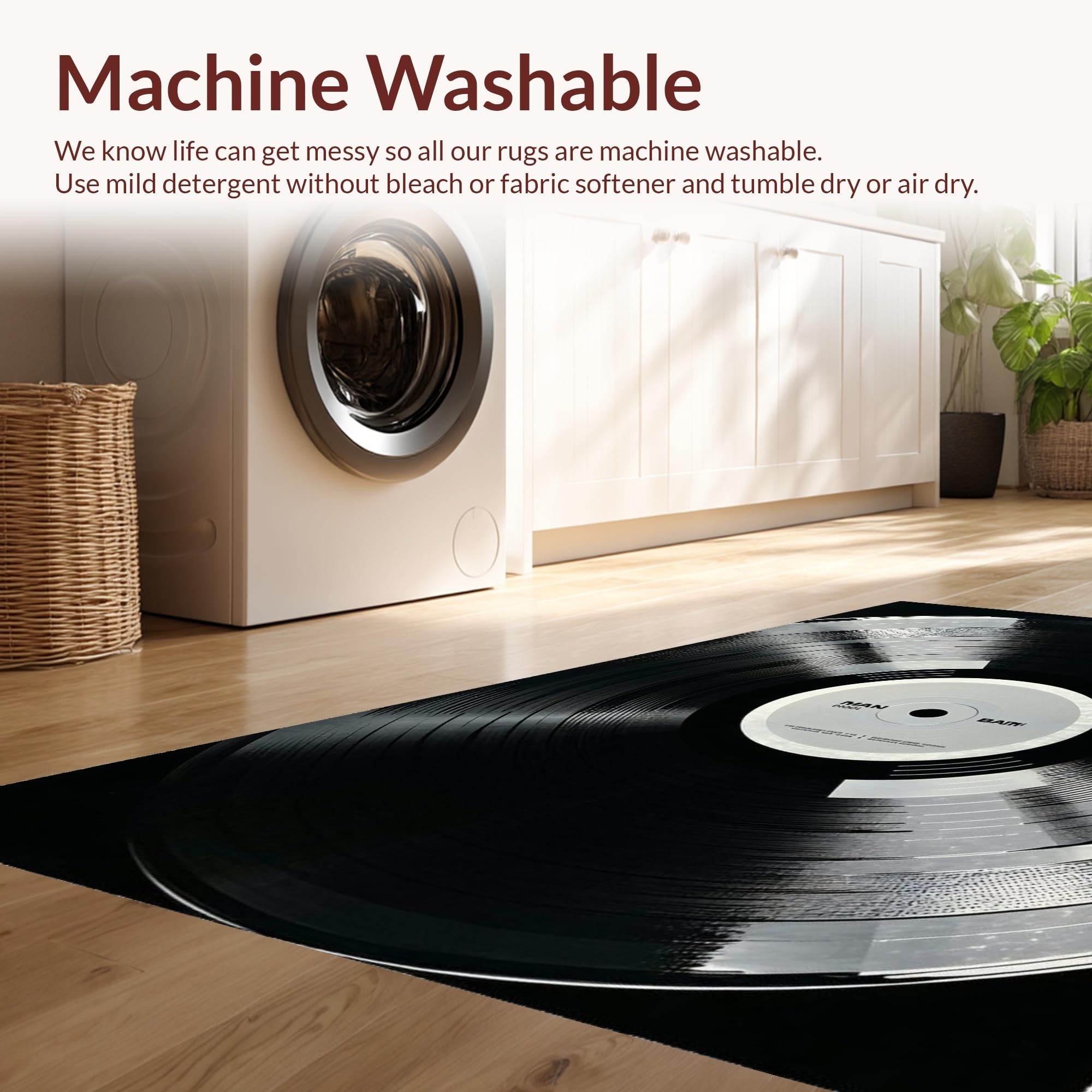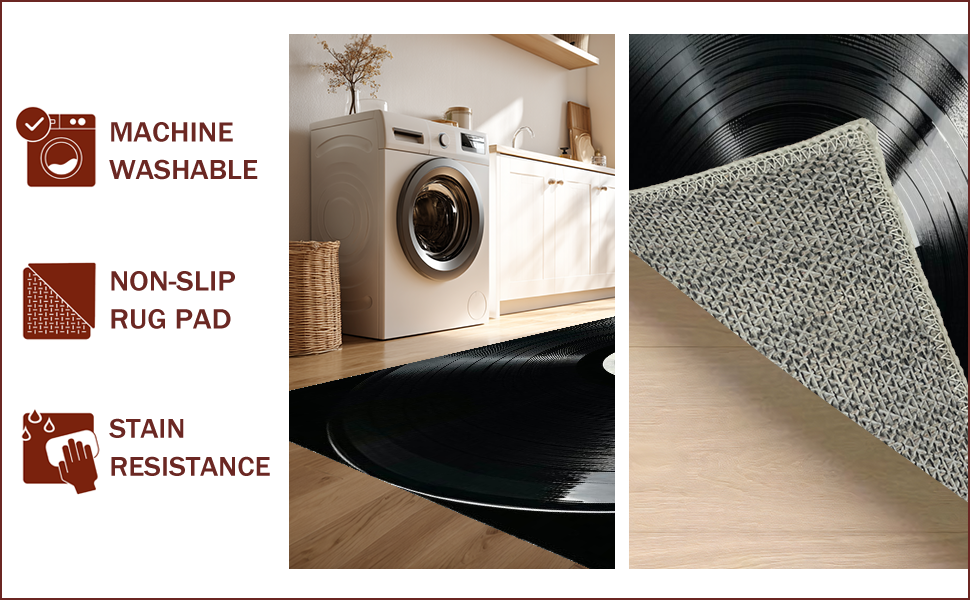Ultra Soft Area Rug, Non Slip, Stain Resistant, Washable Area Rugs for Living Room, Bedroom, Retro Vinyl Record Aesthetic(Black) Overview: