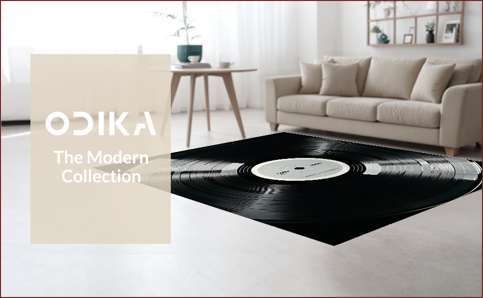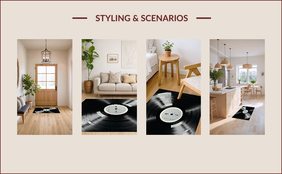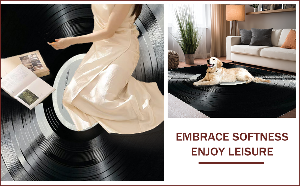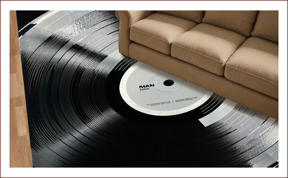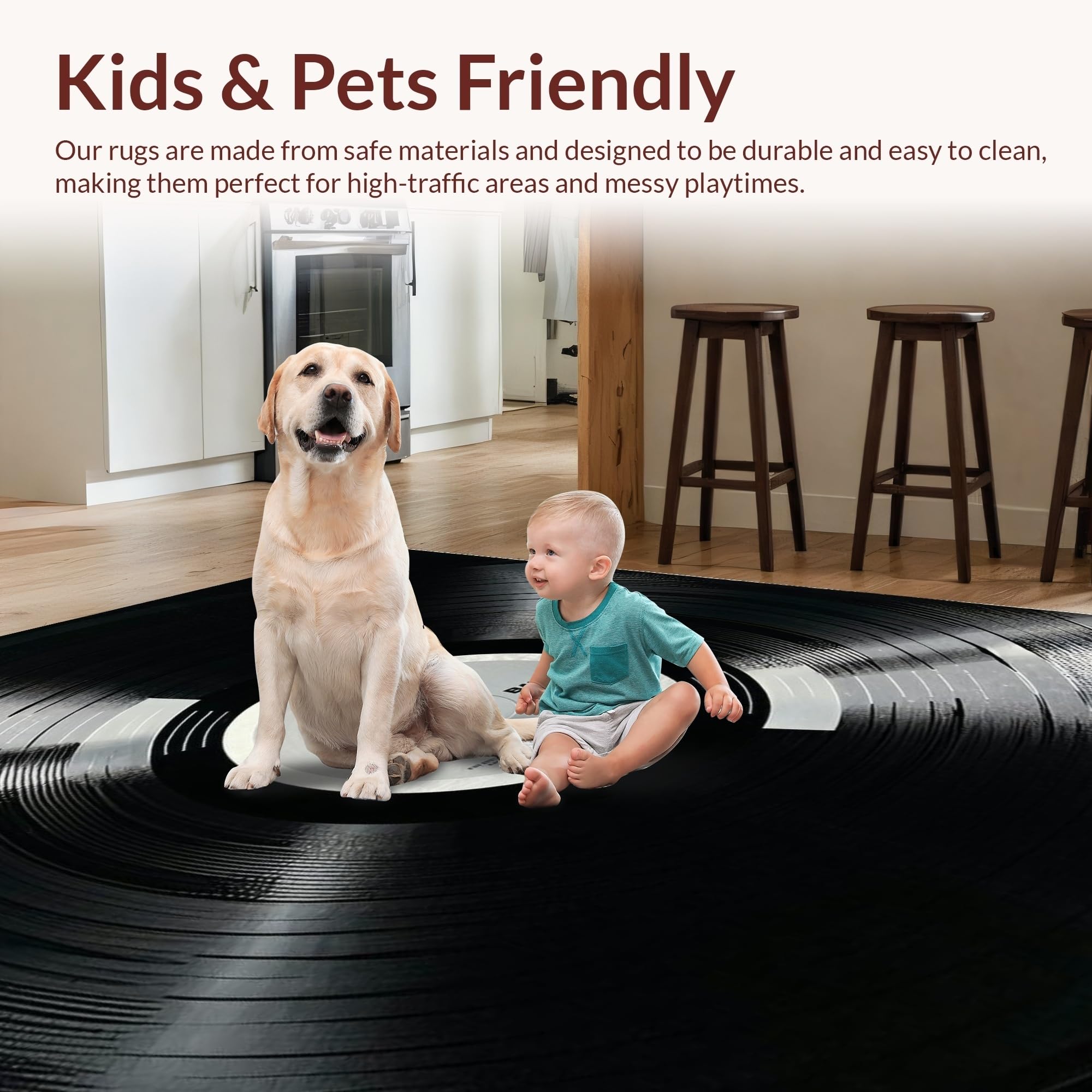 Ultra Soft Area Rug, Non Slip, Stain Resistant, Washable Area Rugs for Living Room, Bedroom, Retro Vinyl Record Aesthetic(Black) Overview: