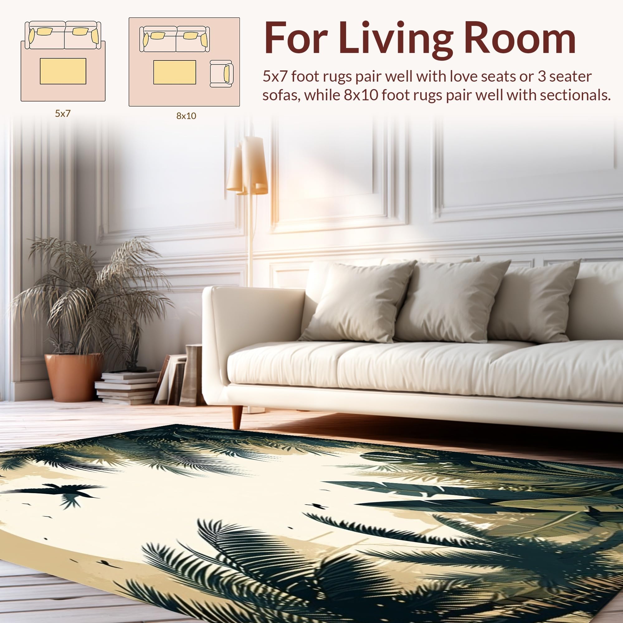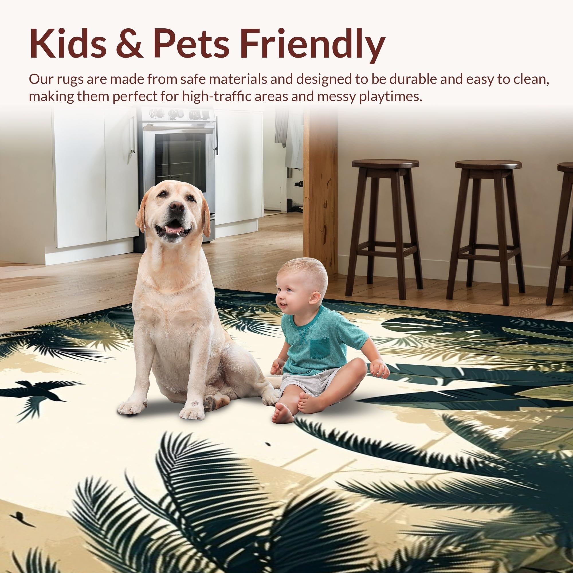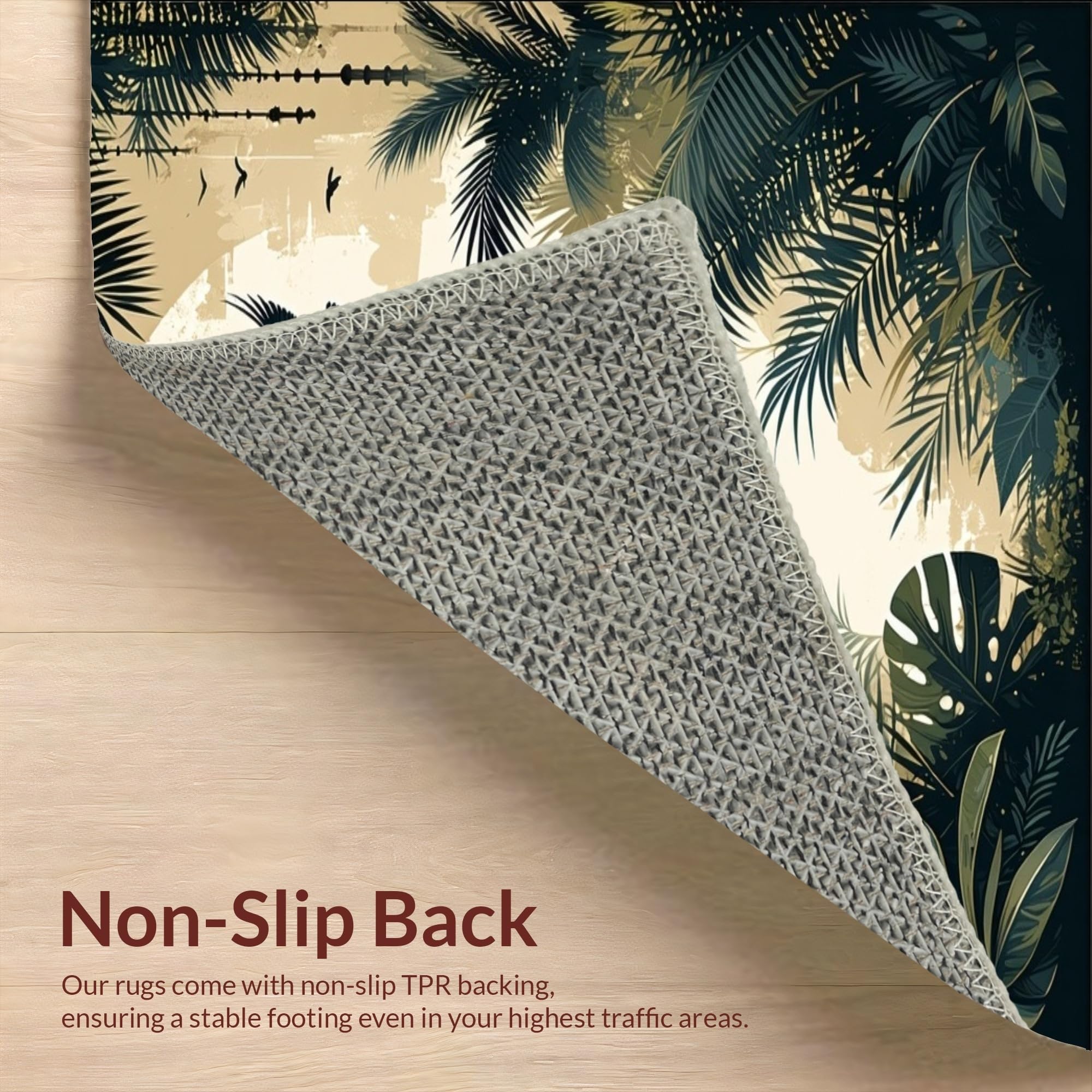 Ultra Soft Area Rug, Non Slip, Stain Resistant, Washable Area Rugs for Living Room, Bedroom, Reversible Balcony Rug with Distinctive Tropical Foliage Print Area Carpet(Beige) Overview: