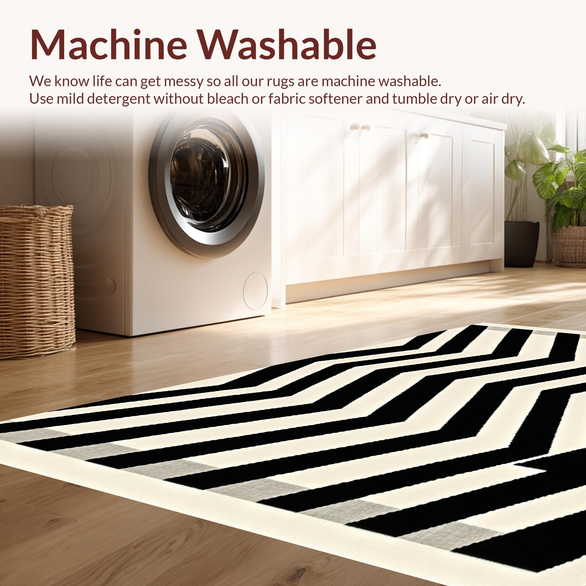 - Machine Washable: Our rugs can be easily thrown in the wash machine.