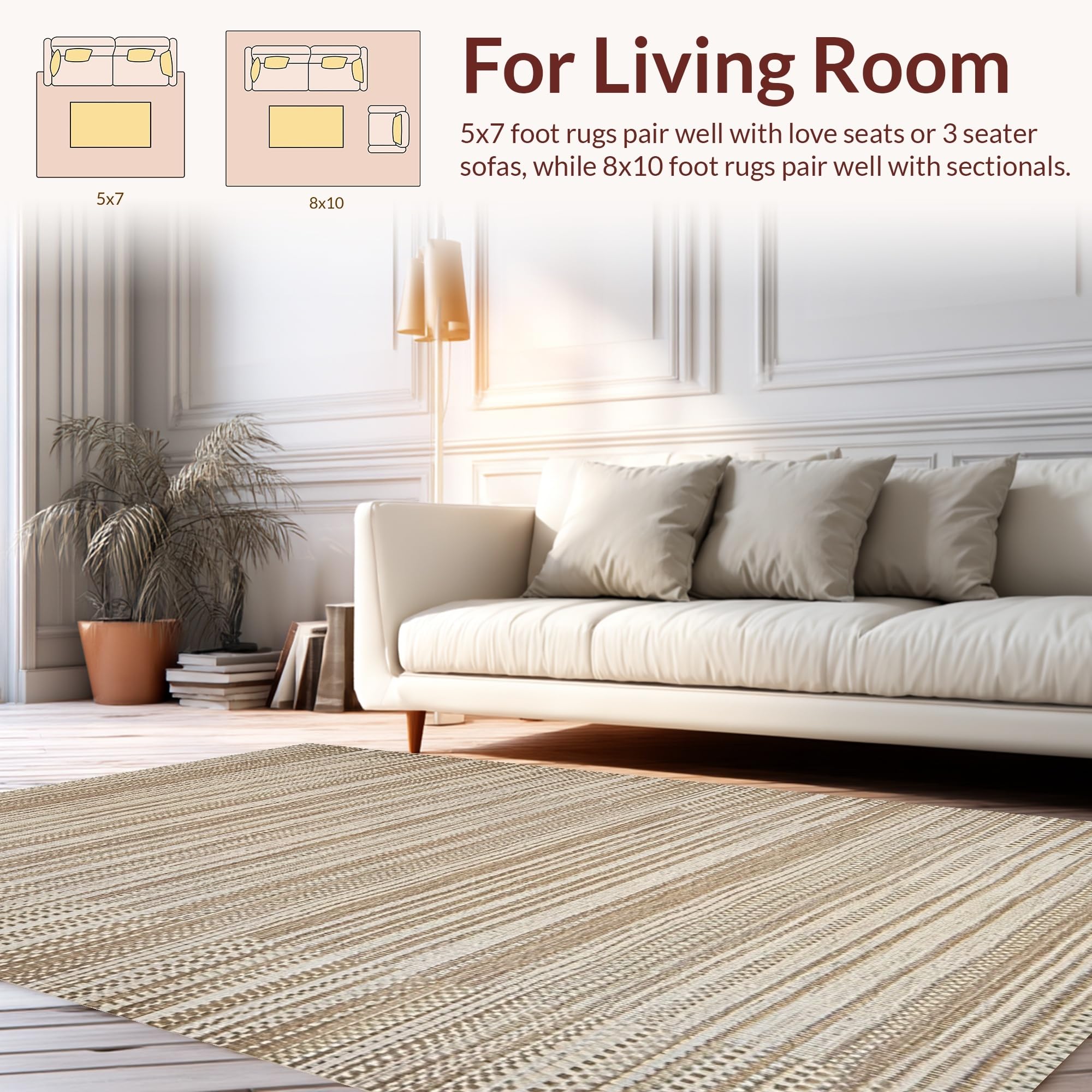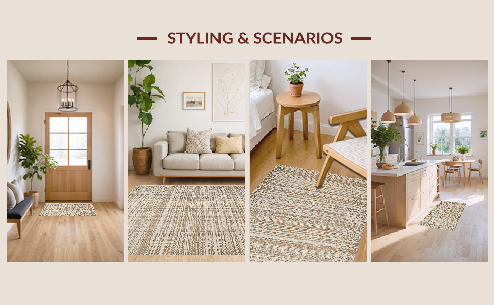 Ultra Soft Area Rug, Non Slip, Stain Resistant, Washable Area Rugs for Living Room, Bedroom, Reversible Rustic Vintage Style(Beige) Overview: