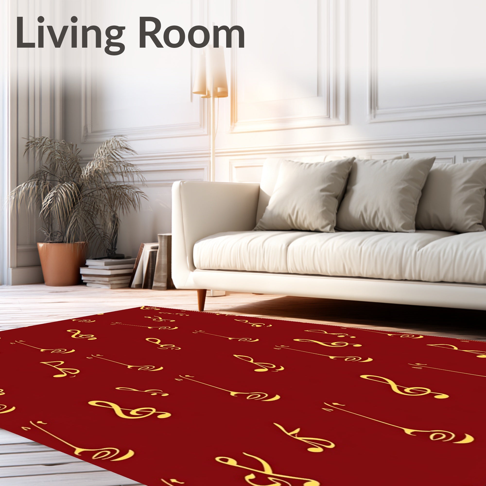 Ultra Soft Area Rug, Non Slip, Stain Resistant, Washable Area Rugs for Living Room, Bedroom, Rhythmic Jazz Notation Elegant Flooring Enhancement(Red) Overview:
