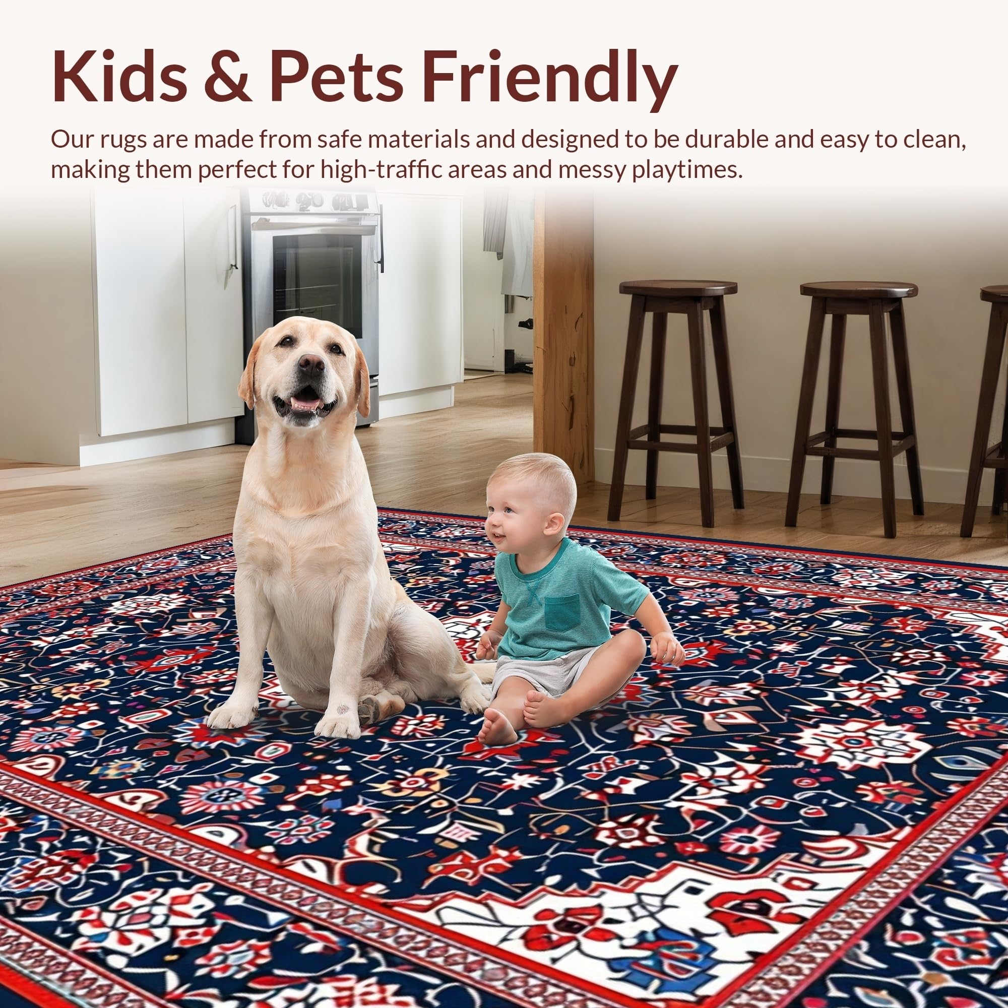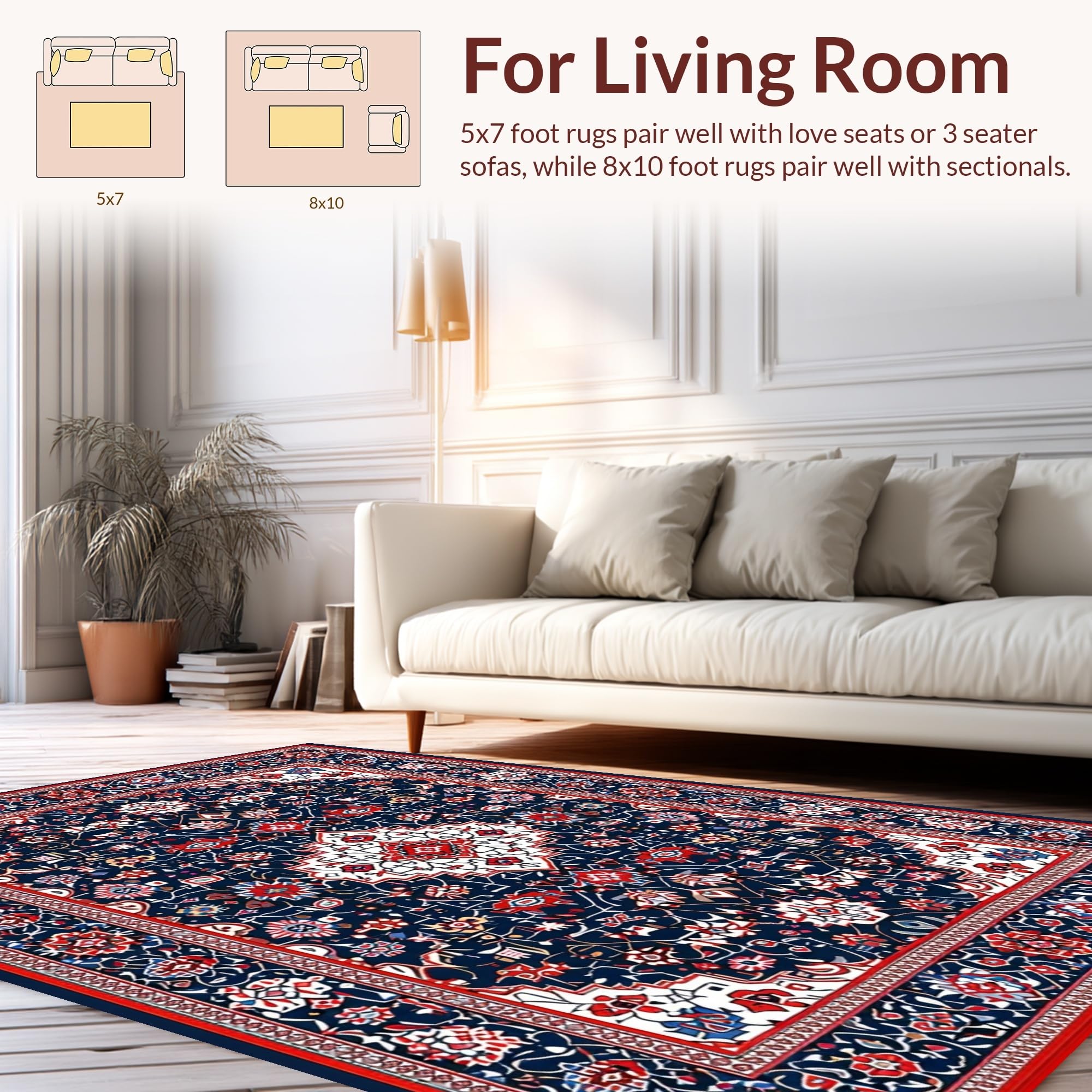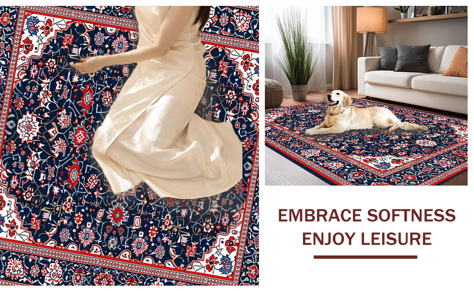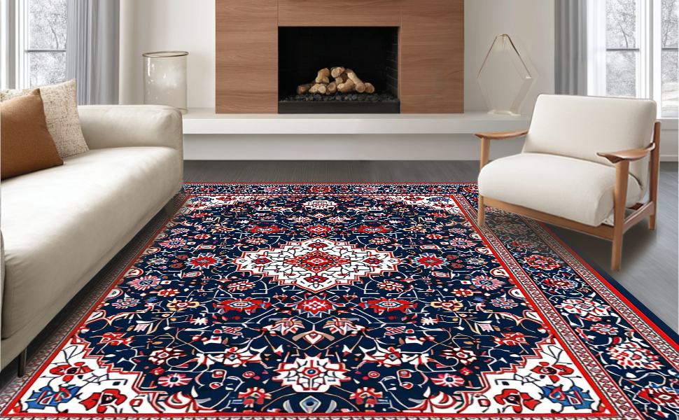 Ultra Soft Area Rug, Non Slip, Stain Resistant, Washable Area Rugs for Living Room, Bedroom, Rich Geometric Patterned Design(Blue) Overview: