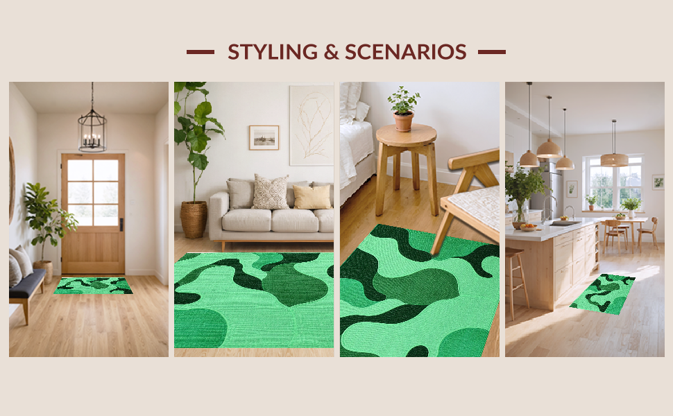 Ultra Soft Area Rug, Non Slip, Stain Resistant, Washable Area Rugs for Living Room, Bedroom, Rich Tapestry of Natural Hues(Green) Overview: